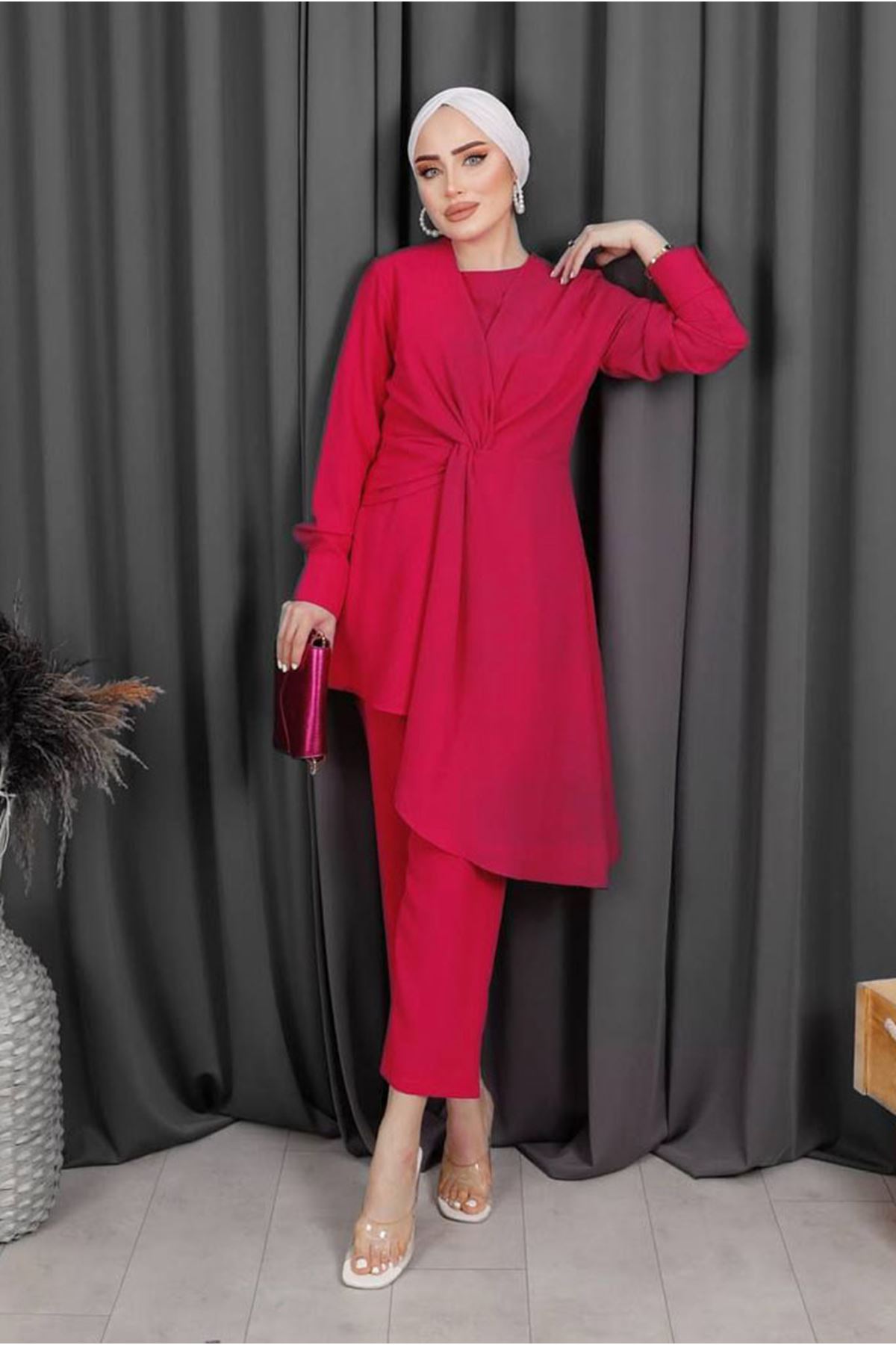 25Y3063 - FUŞYA - VOLANLI KREM TAKIM