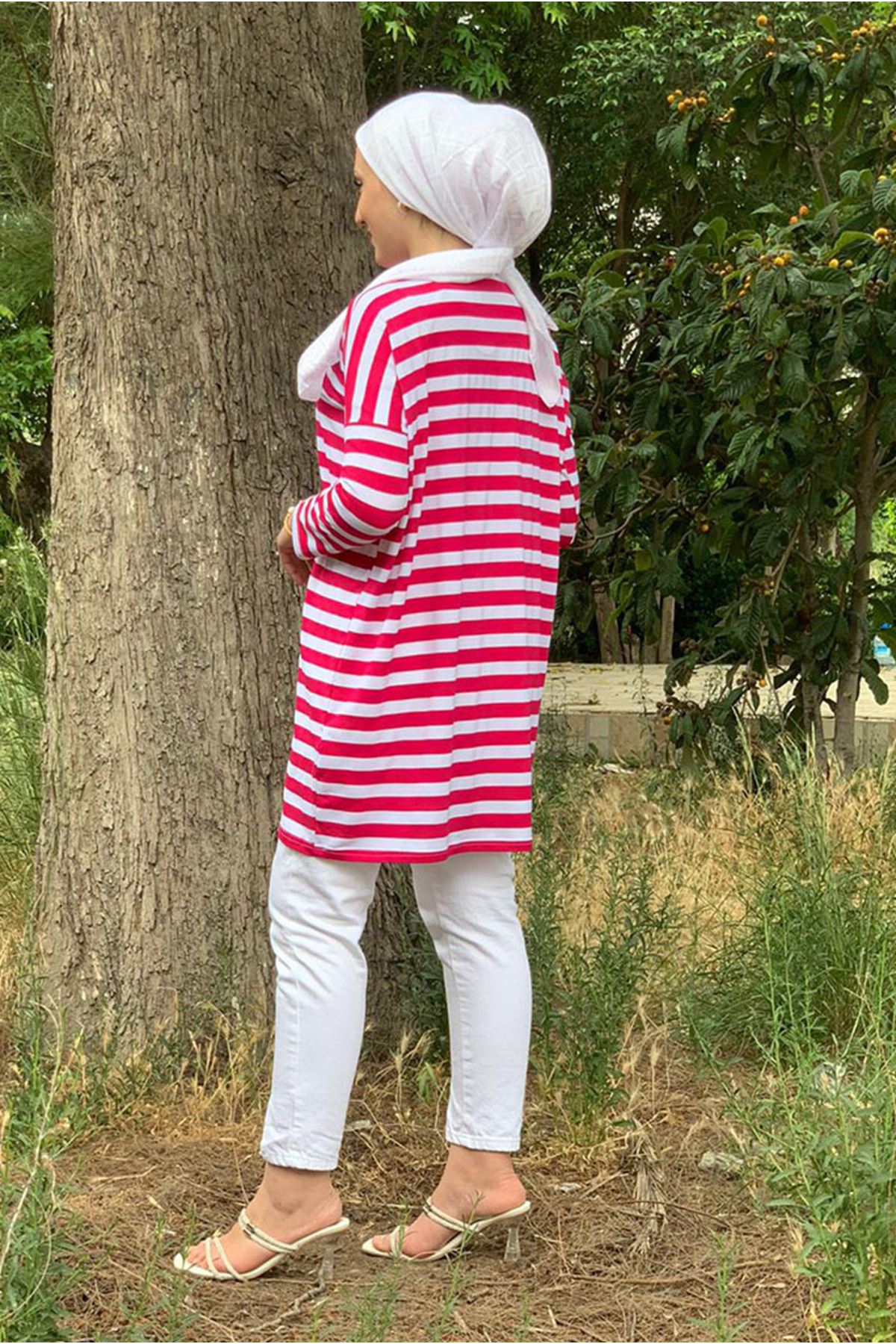 25Y4315 - FUŞYA - KALIN ÇİZGİLİ OVERSİZE TUNİK