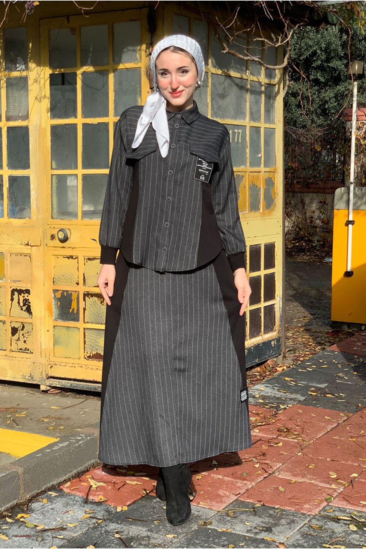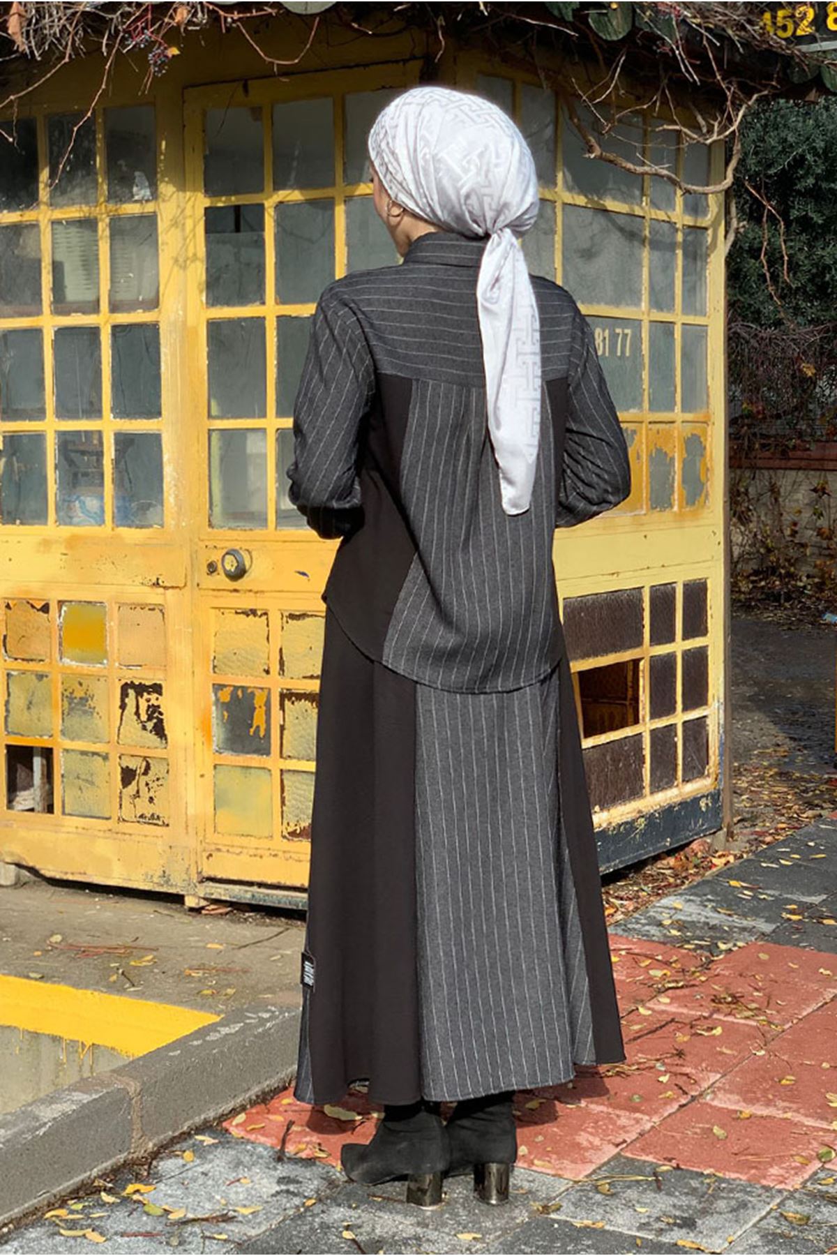 58117 Büyük Beden Taş Detaylı Mevlana Mir Tunik - İndigo