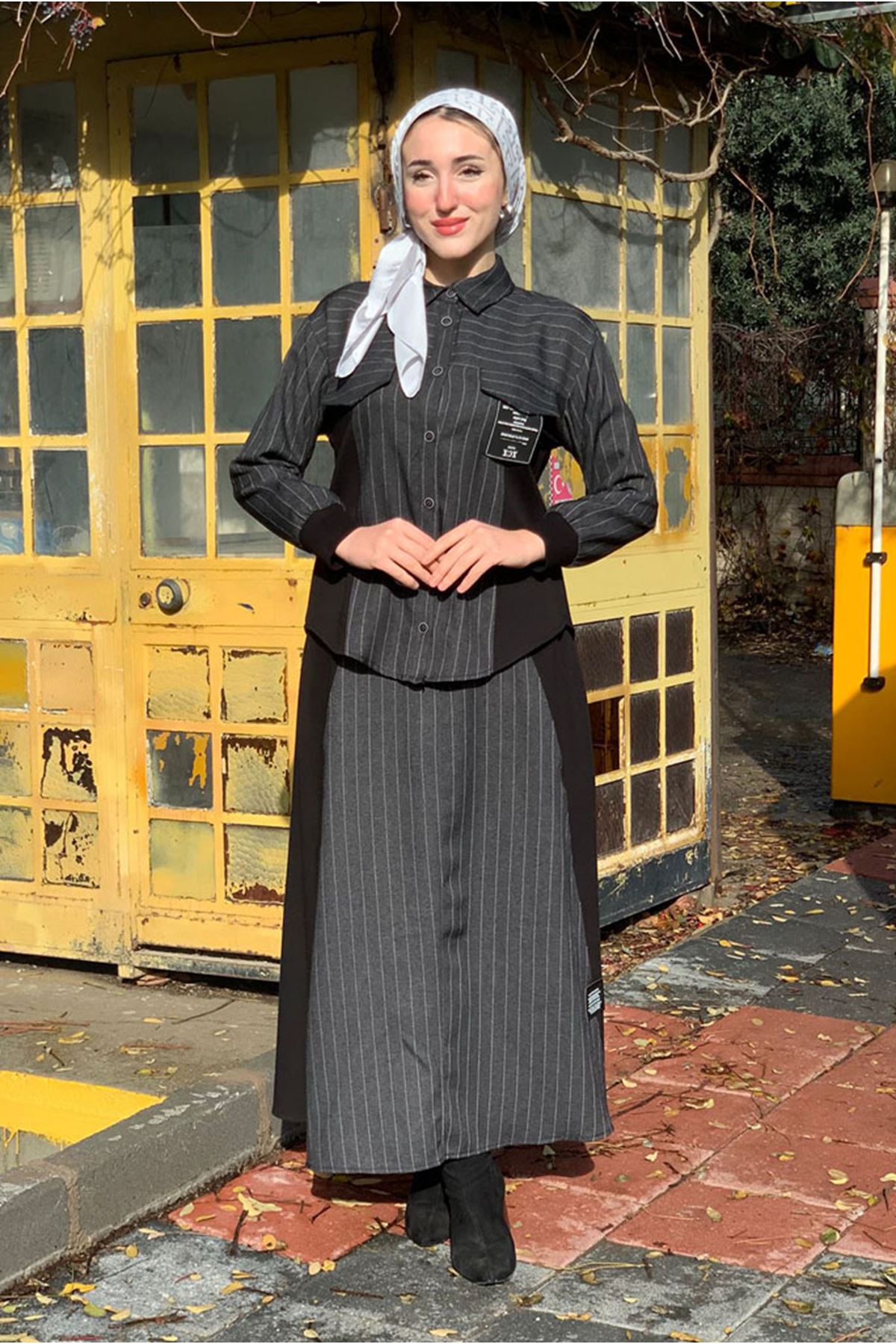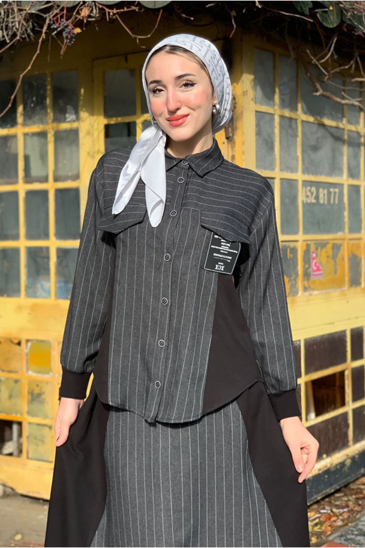 58144 Büyük Beden Hakim Yakalı Mir Tunik - Siyah