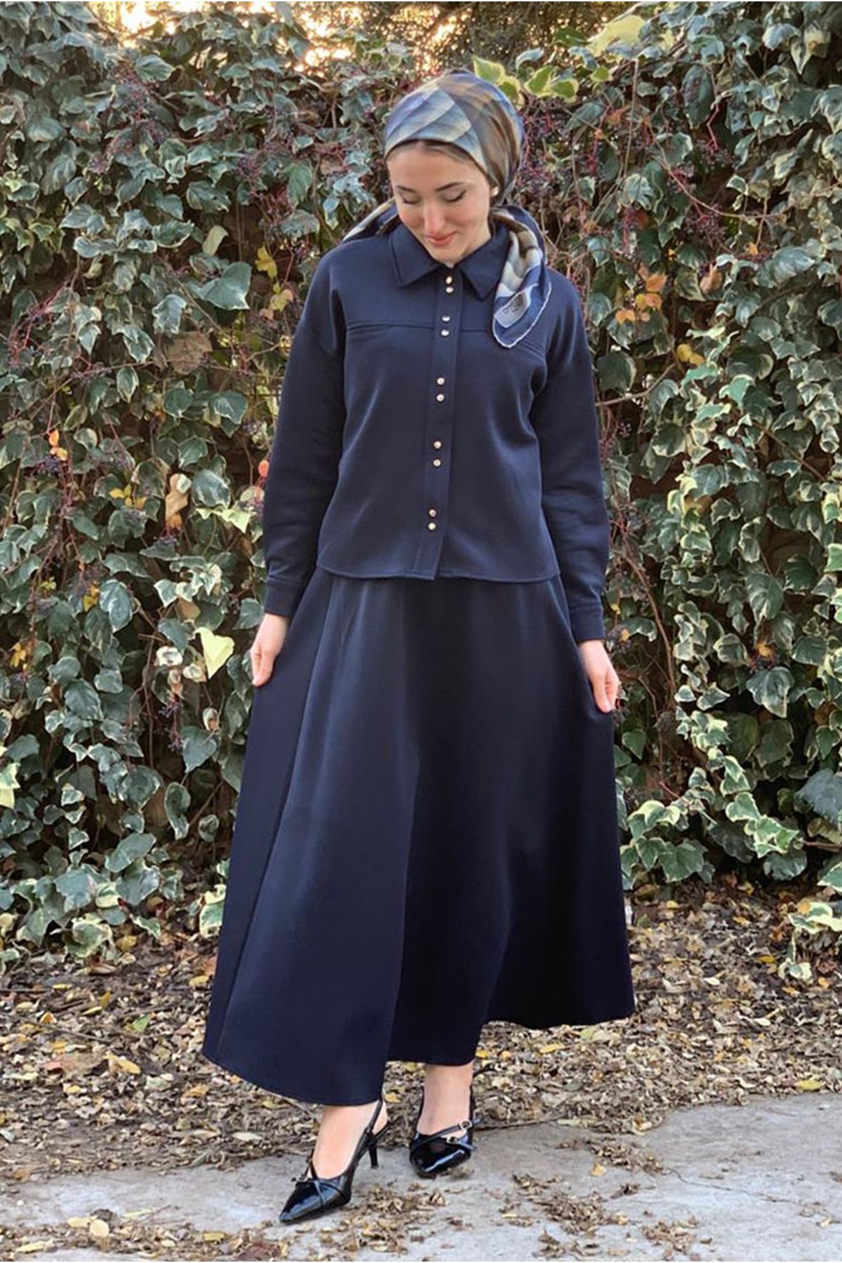 26K2254 - LACİVERT - ETEK-CEKET SCUBA TAKIM