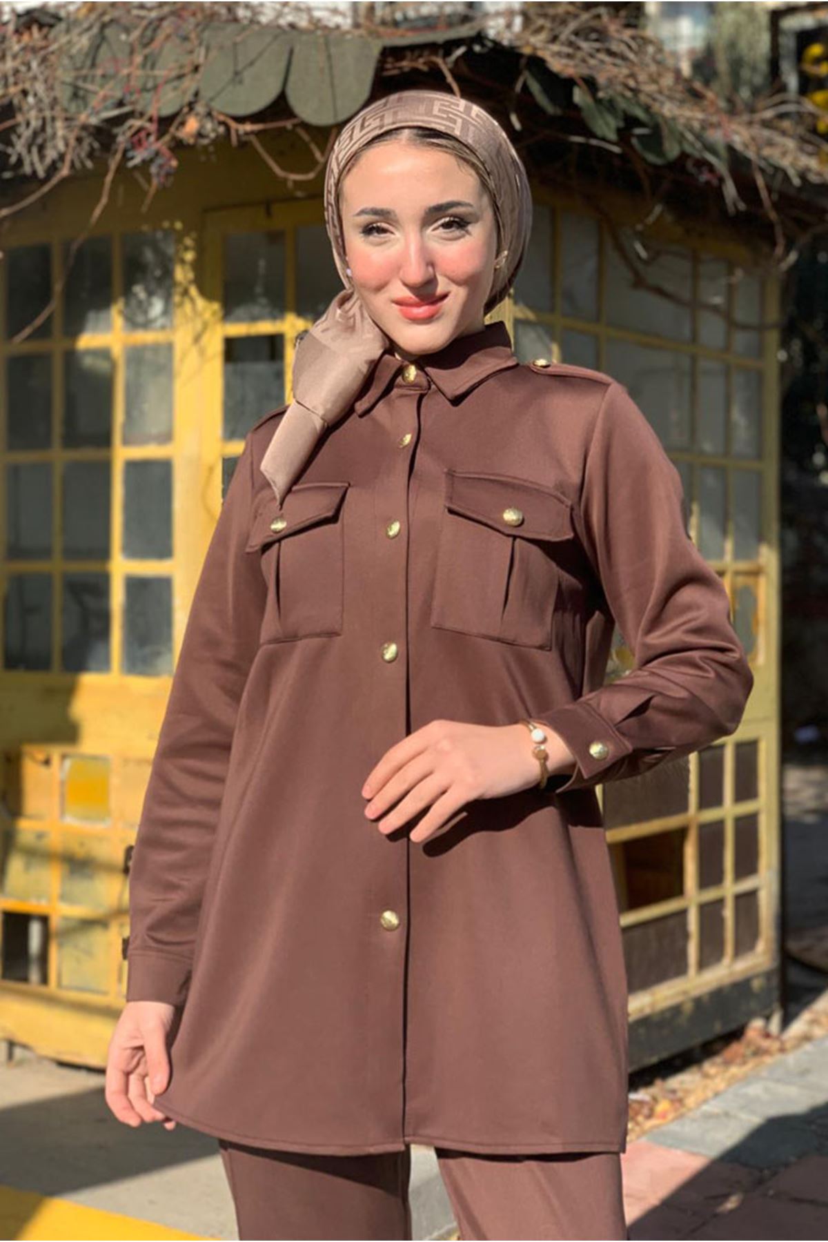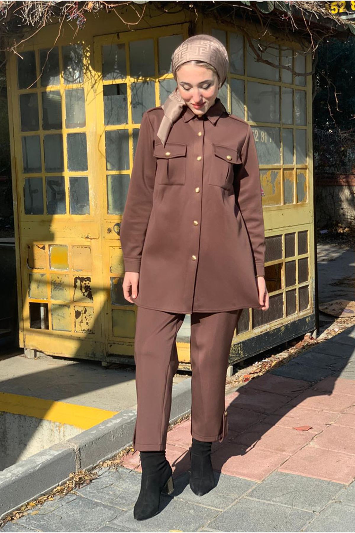 26K2271 - KAHVE - GOLD DÜĞME SCUBA TAKIM