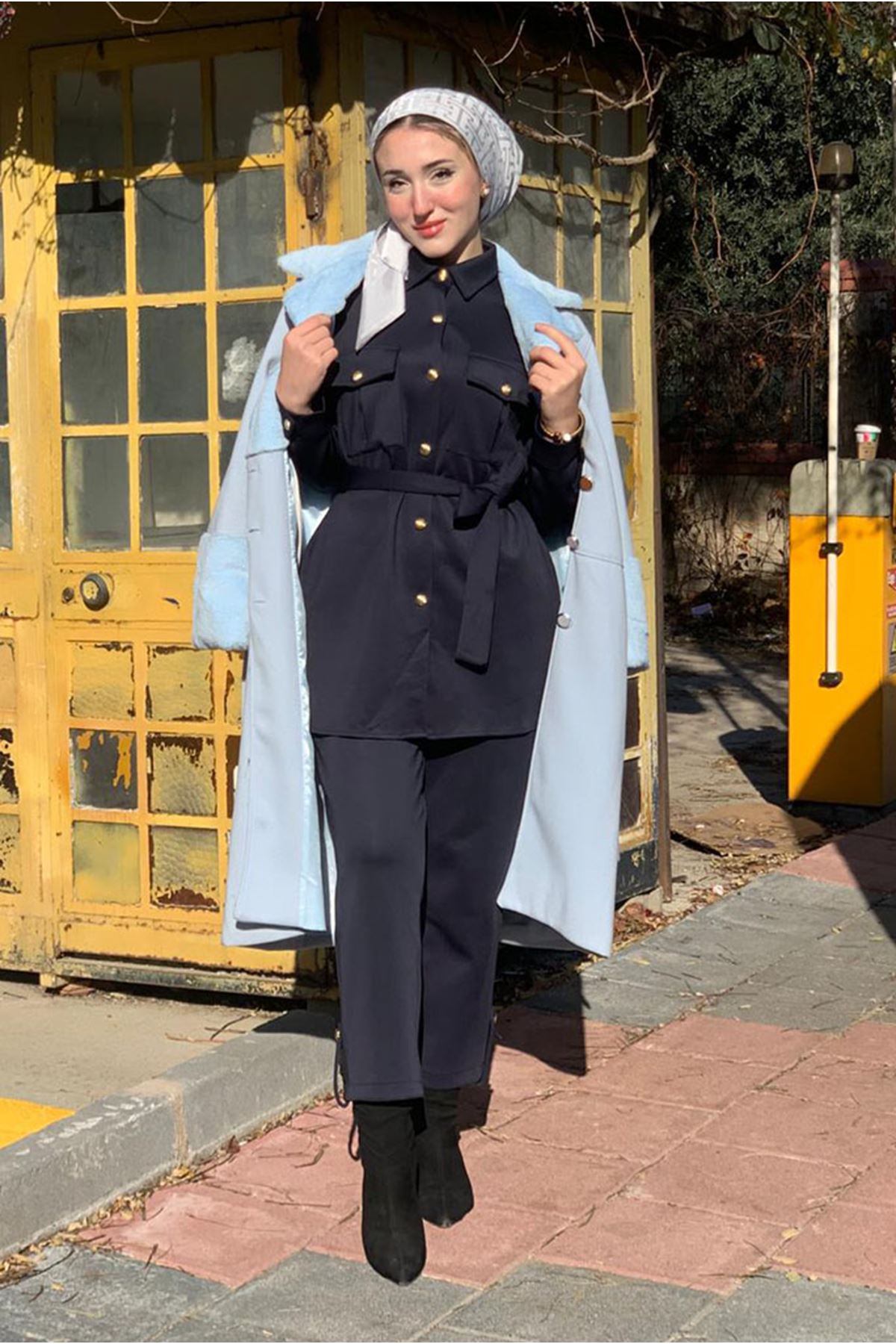 26K2271 - LACİVERT - GOLD DÜĞME SCUBA TAKIM