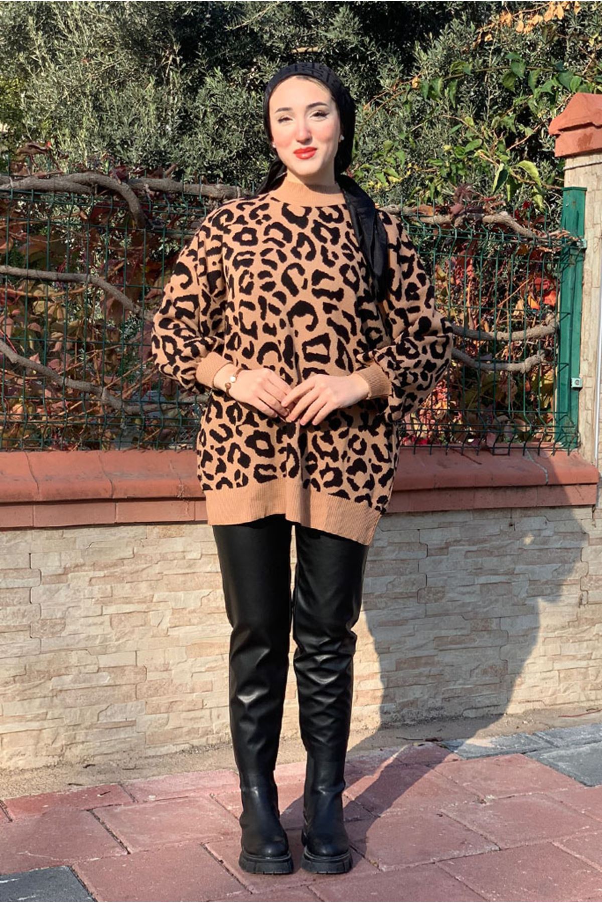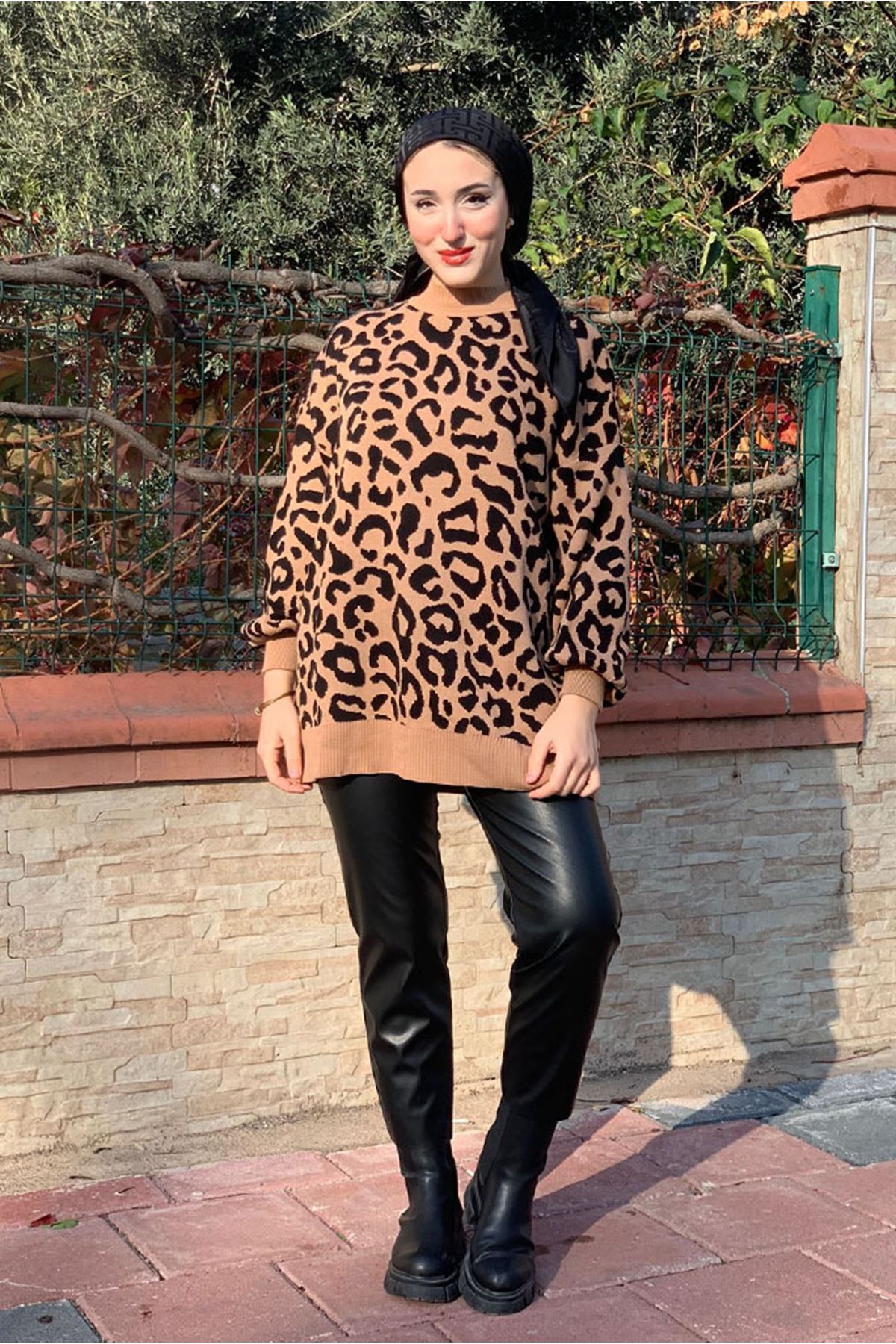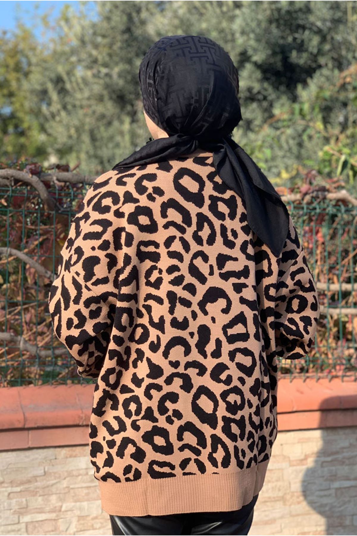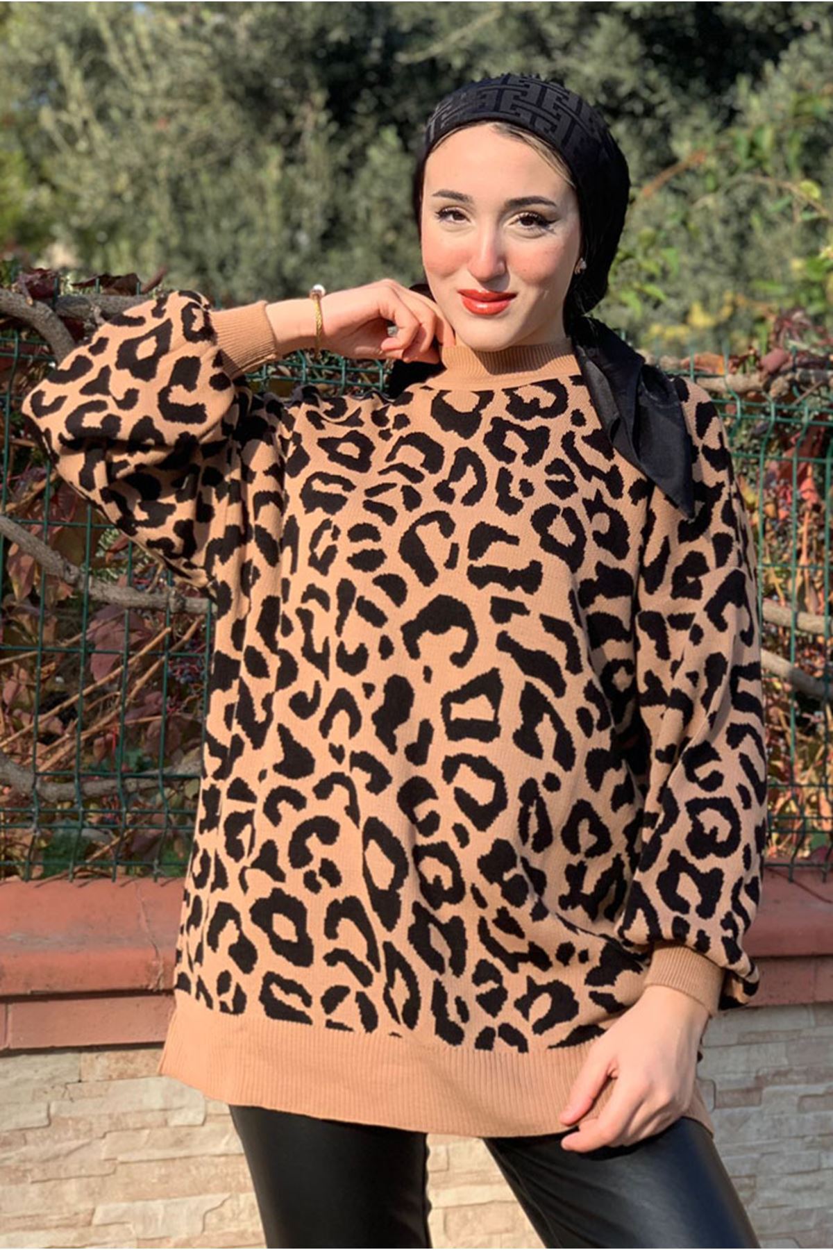 26K4416 - LATTE - DESENLİ TRİKO KAZAK