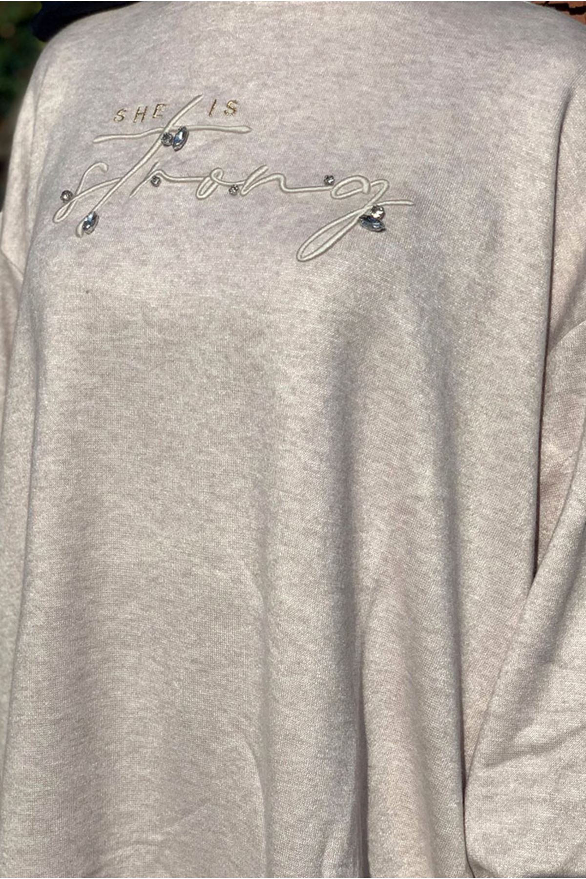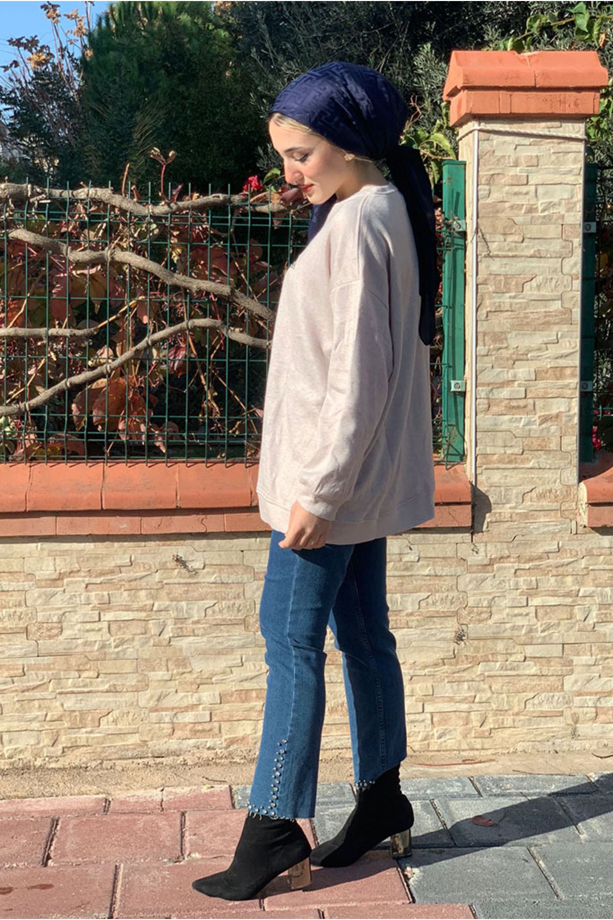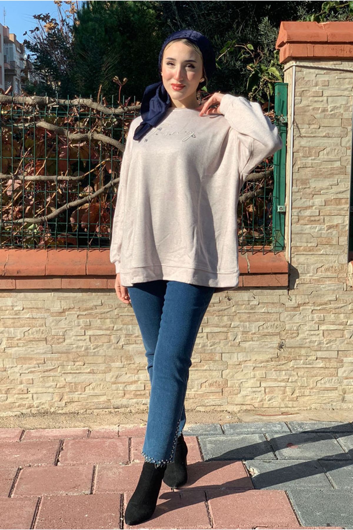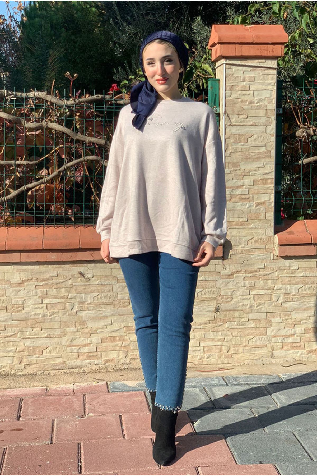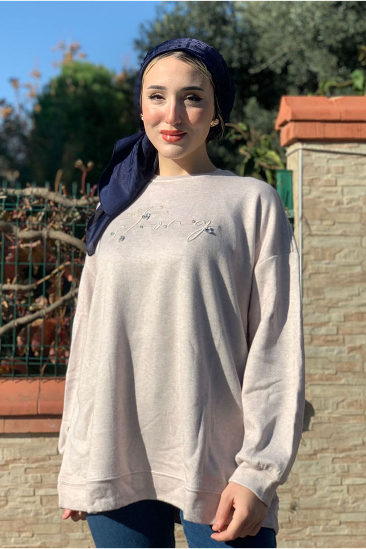 26K4437 - BEJ - ÜÇ İPLİK ŞARDONLU BASIC SWEAT