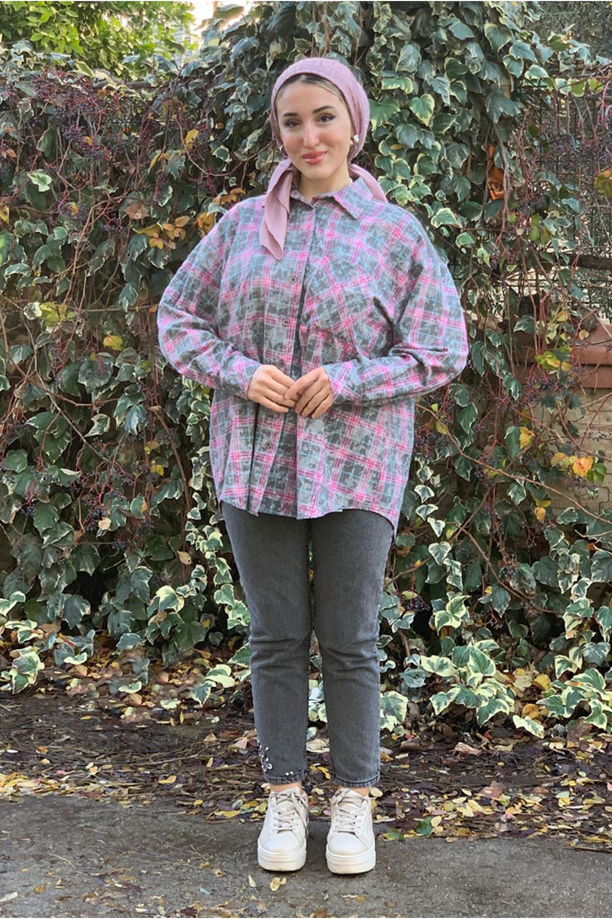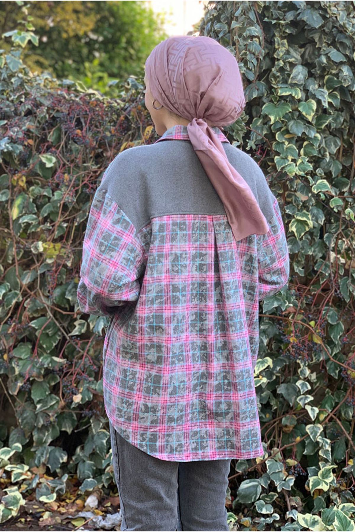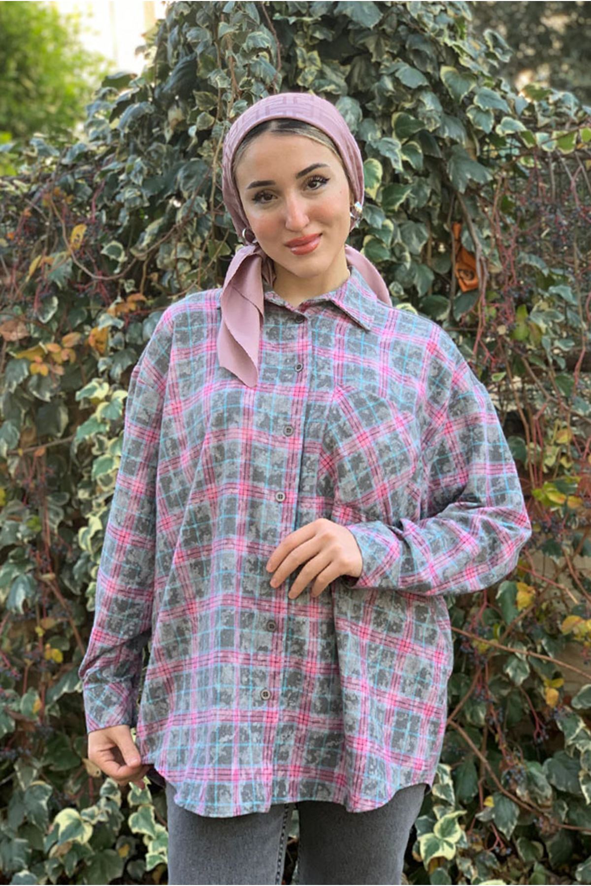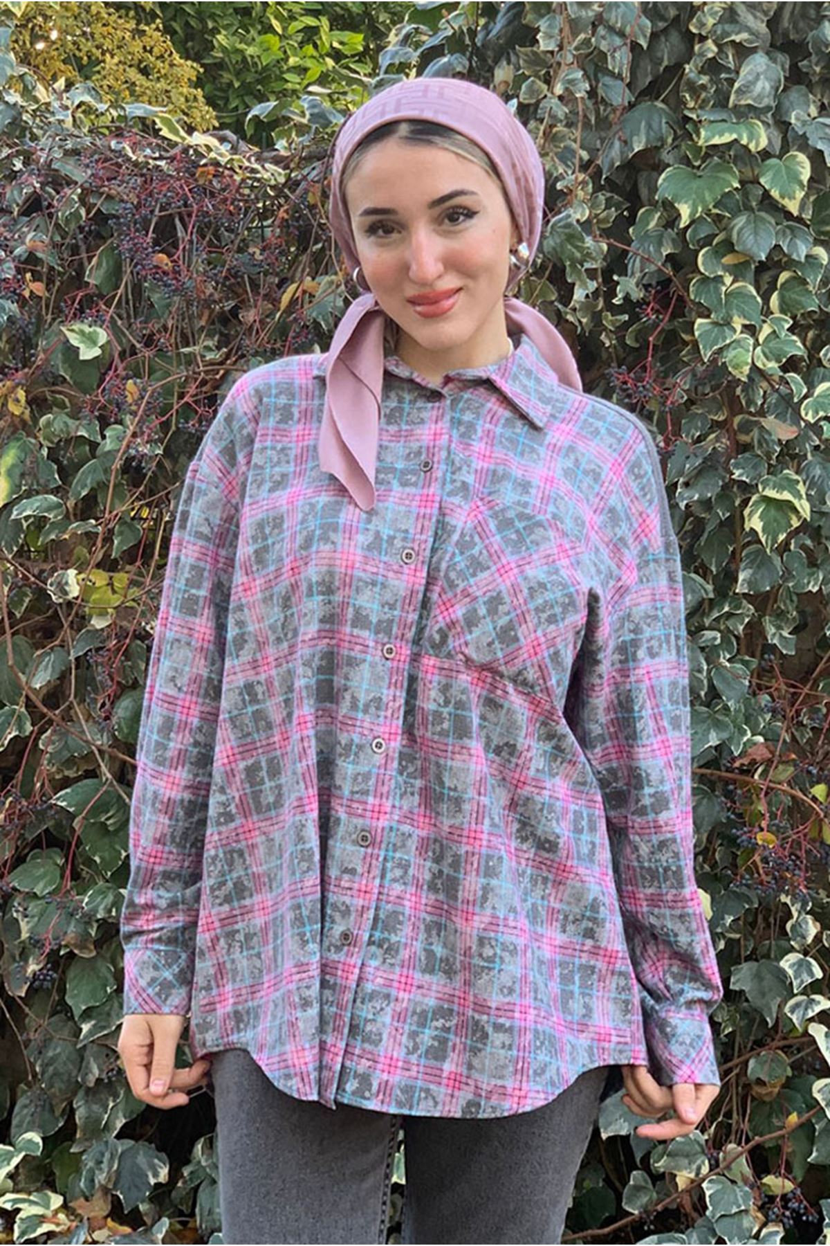 26K4461 - PEMBE - TRİKO DETAYLI EKOSE GÖMLEK