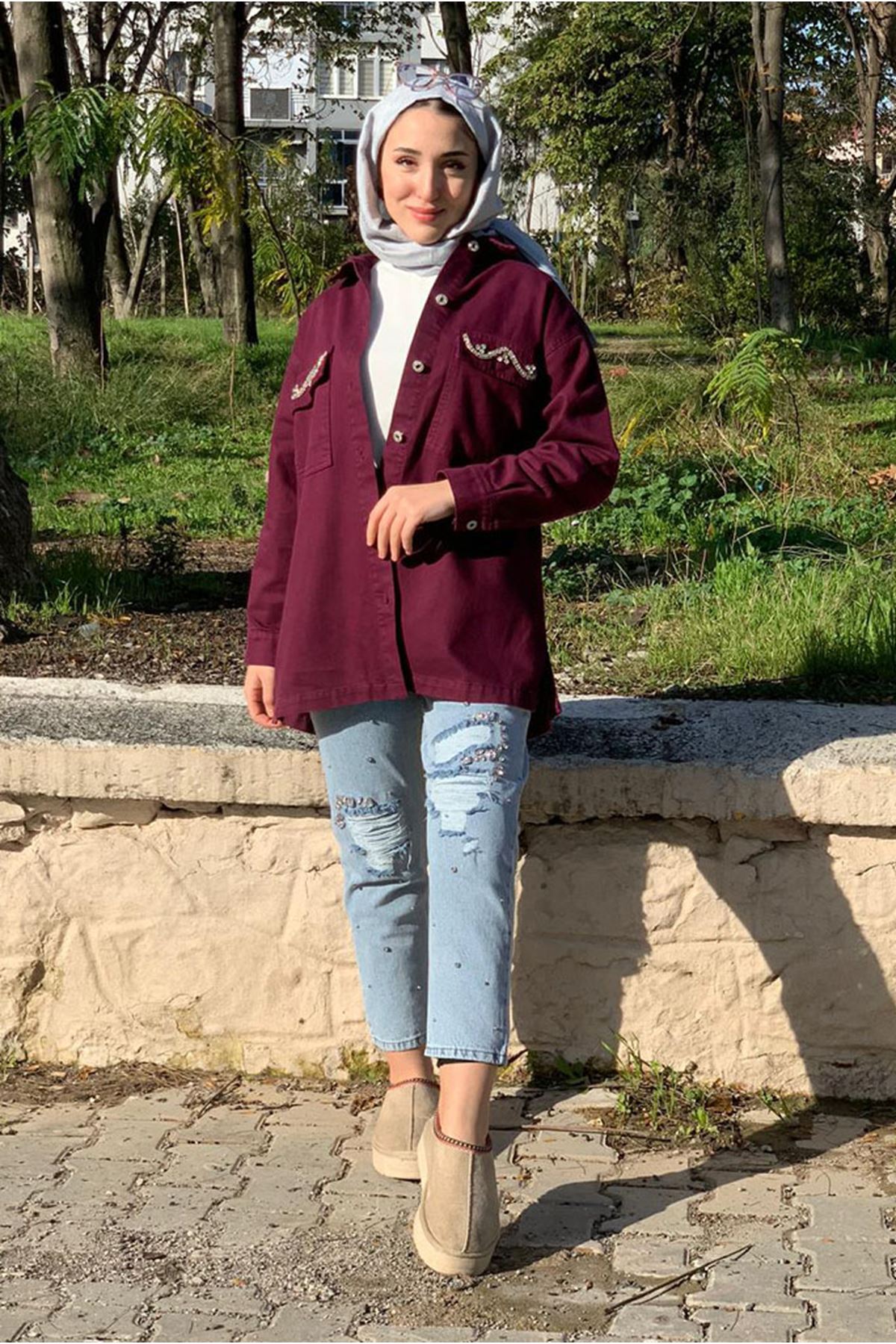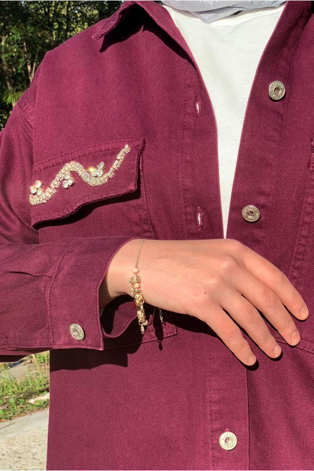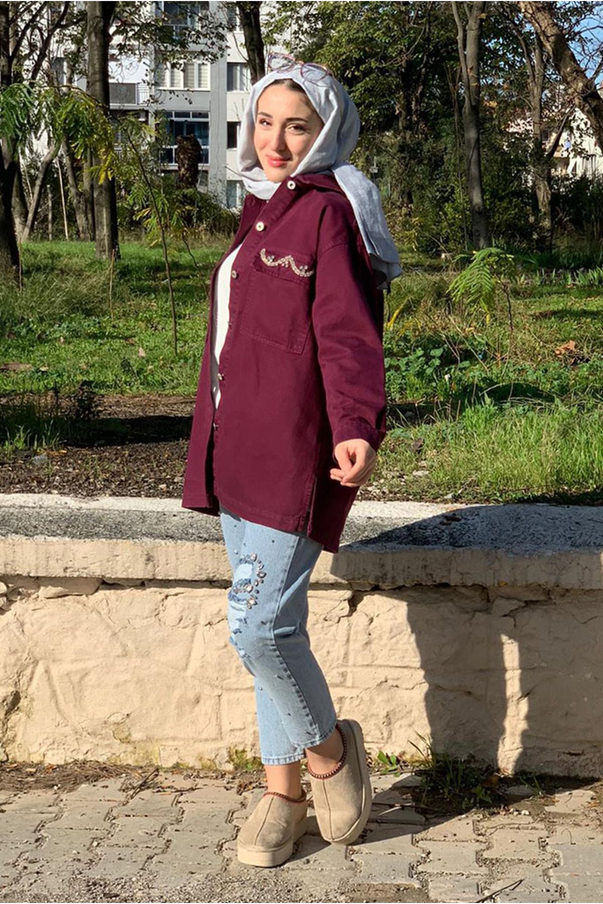 26K5098 - MÜRDÜM - CEPLERİ DALGA TAŞLI GABARDİN CEKET