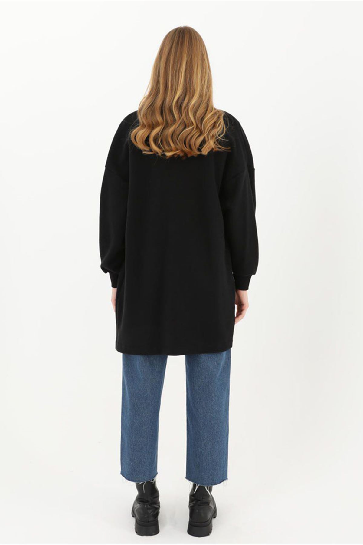 58162 Büyük Beden Garnili Modal Tunik - Siyah