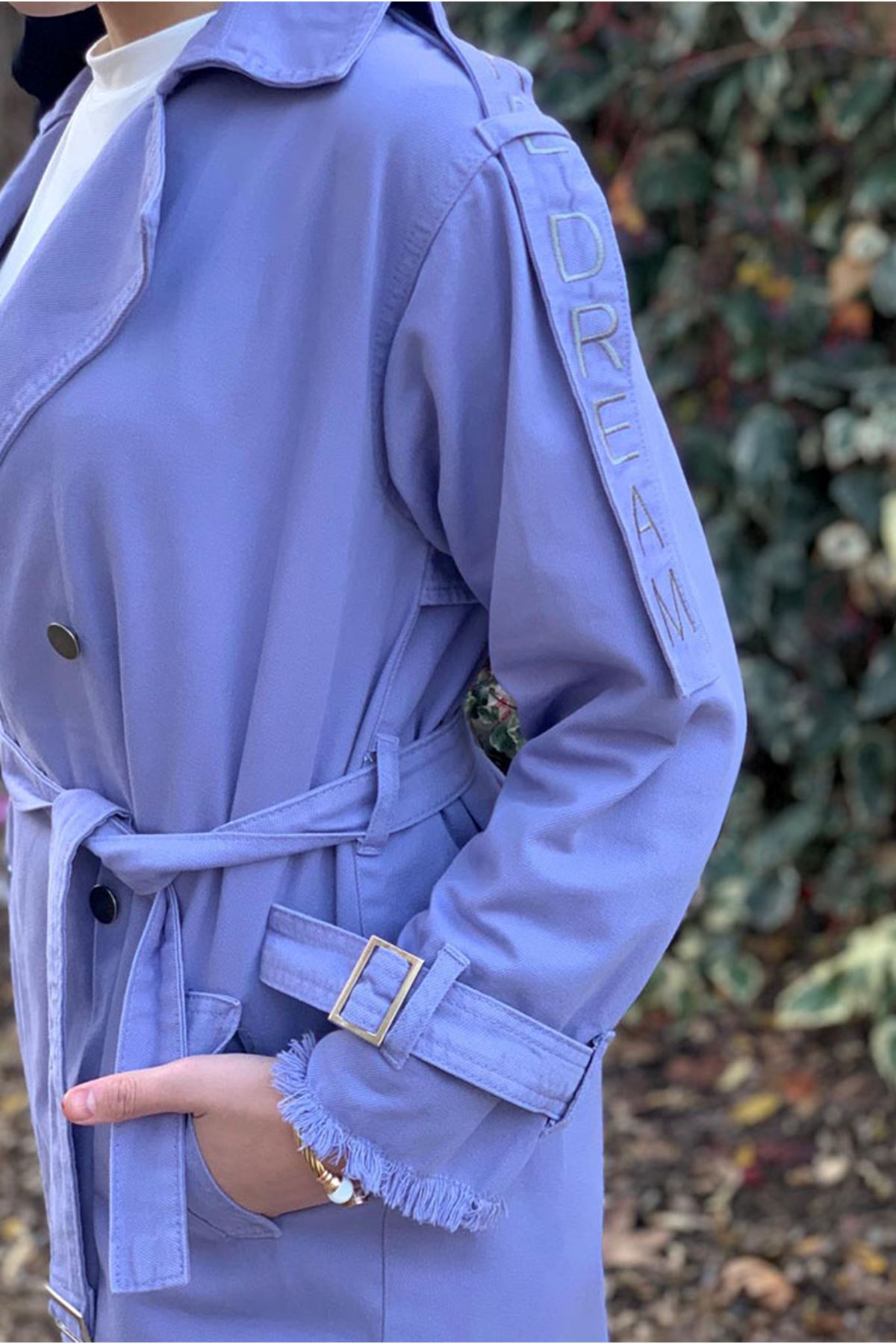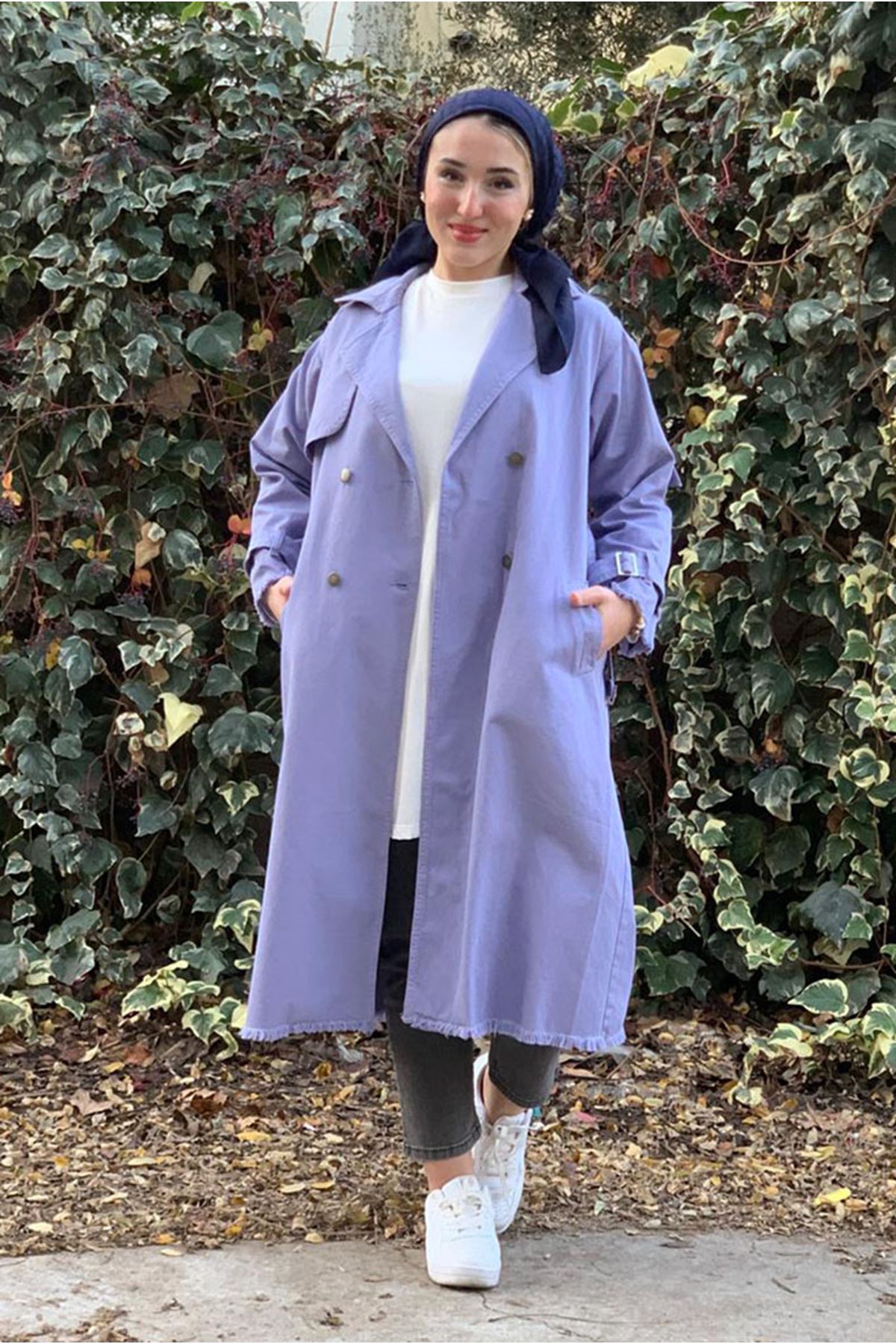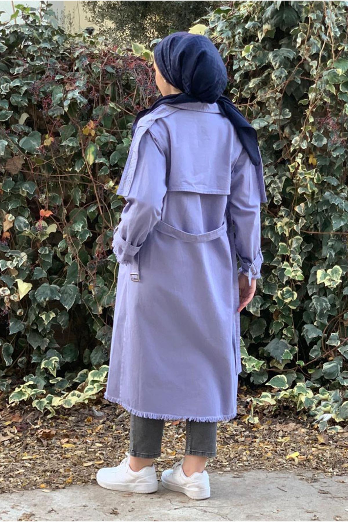 26K5326 - LİLA - GABARDİN UZUN TRENCH KOT