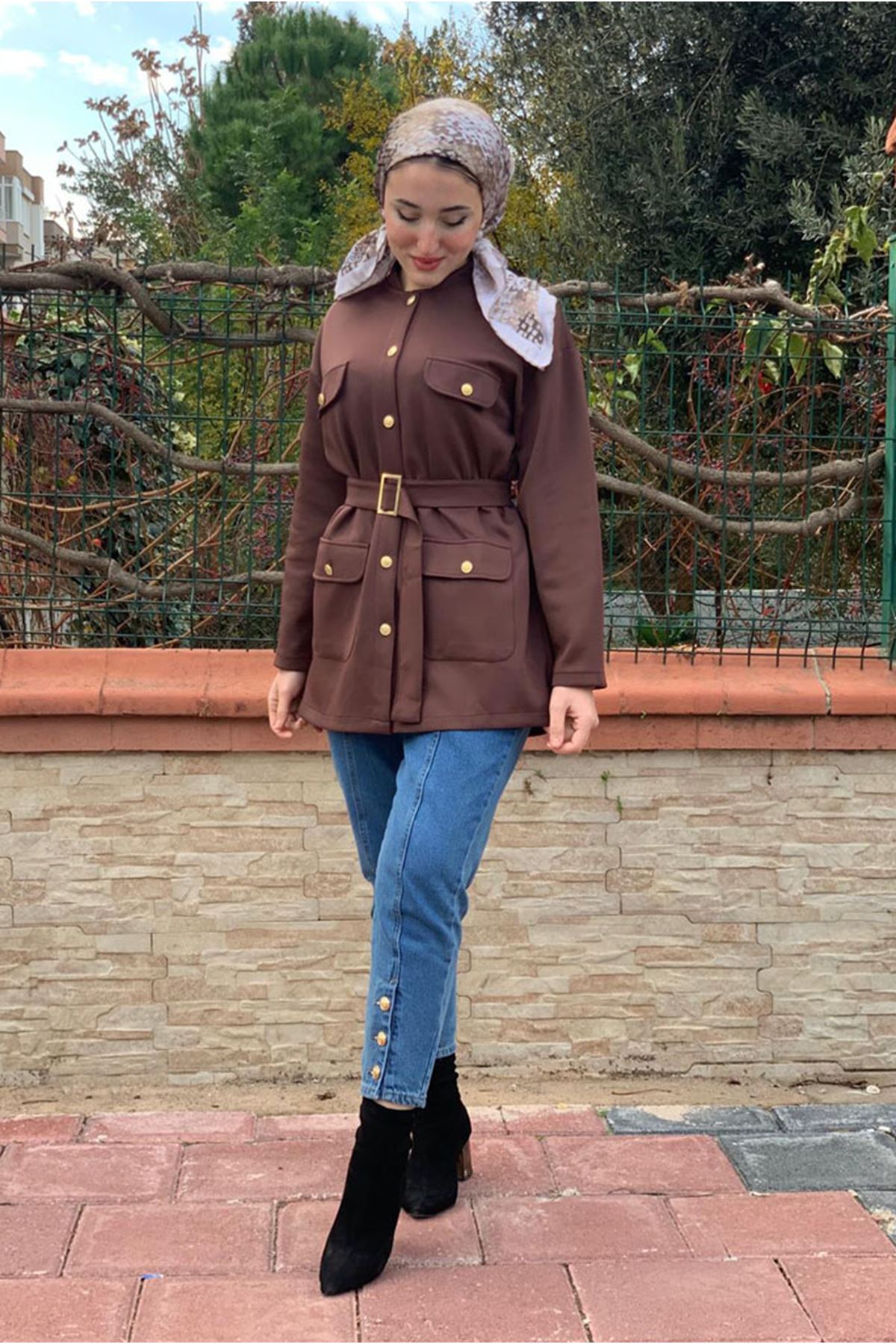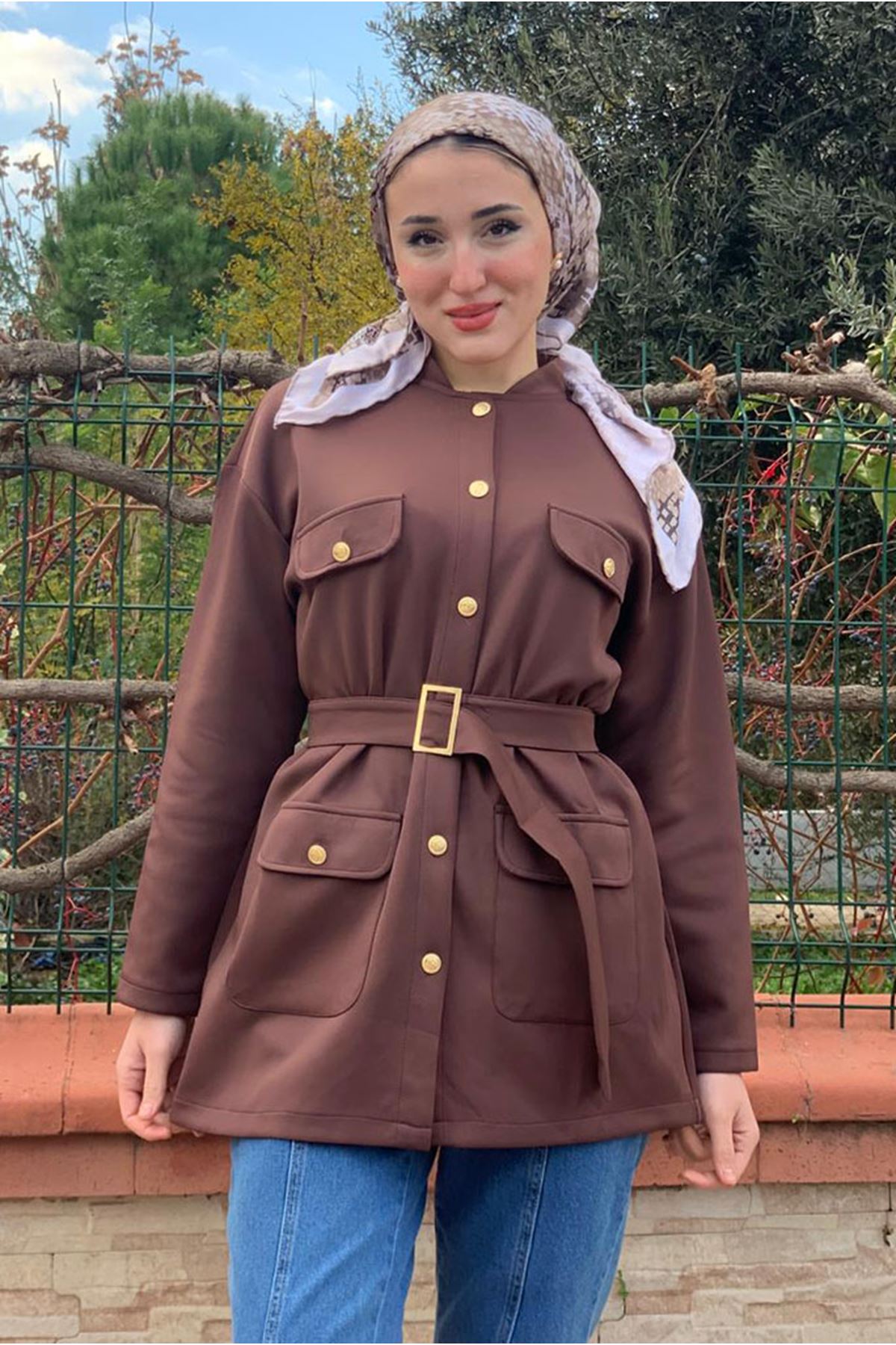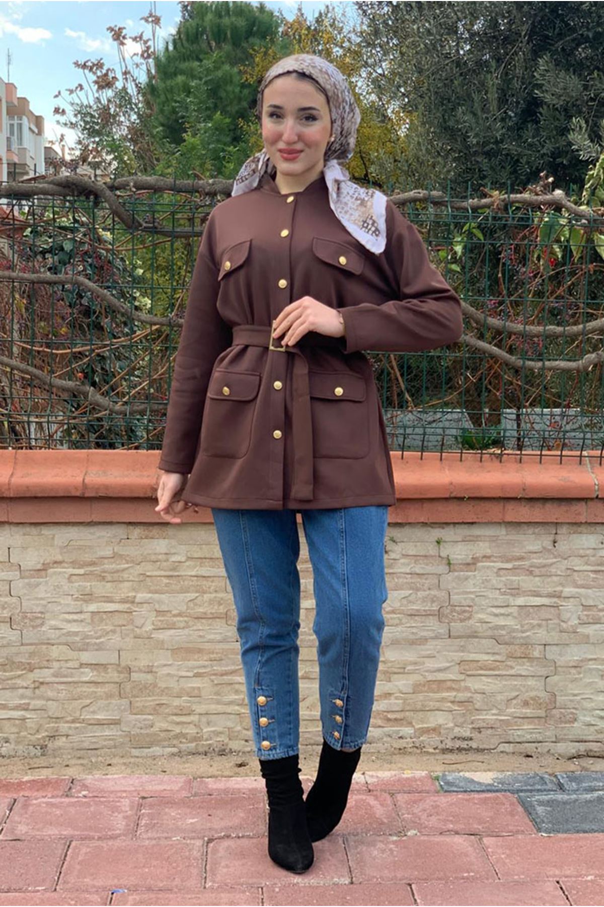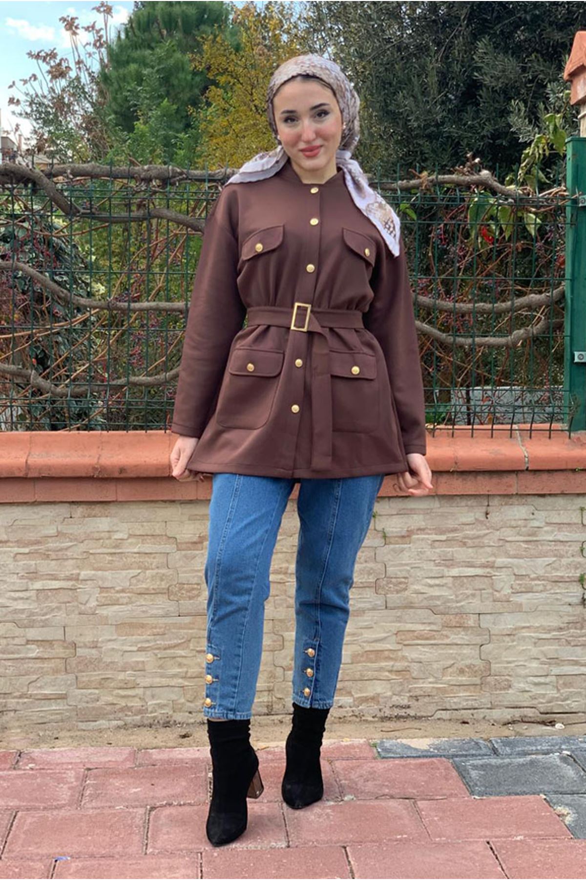 26K5347 - KAHVE - GOLD DÜĞME SCUBA CEKET