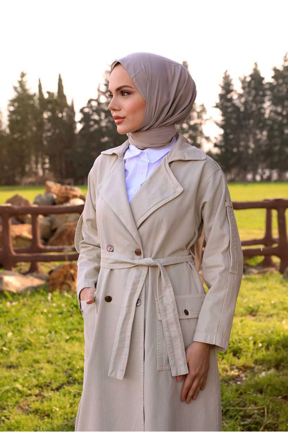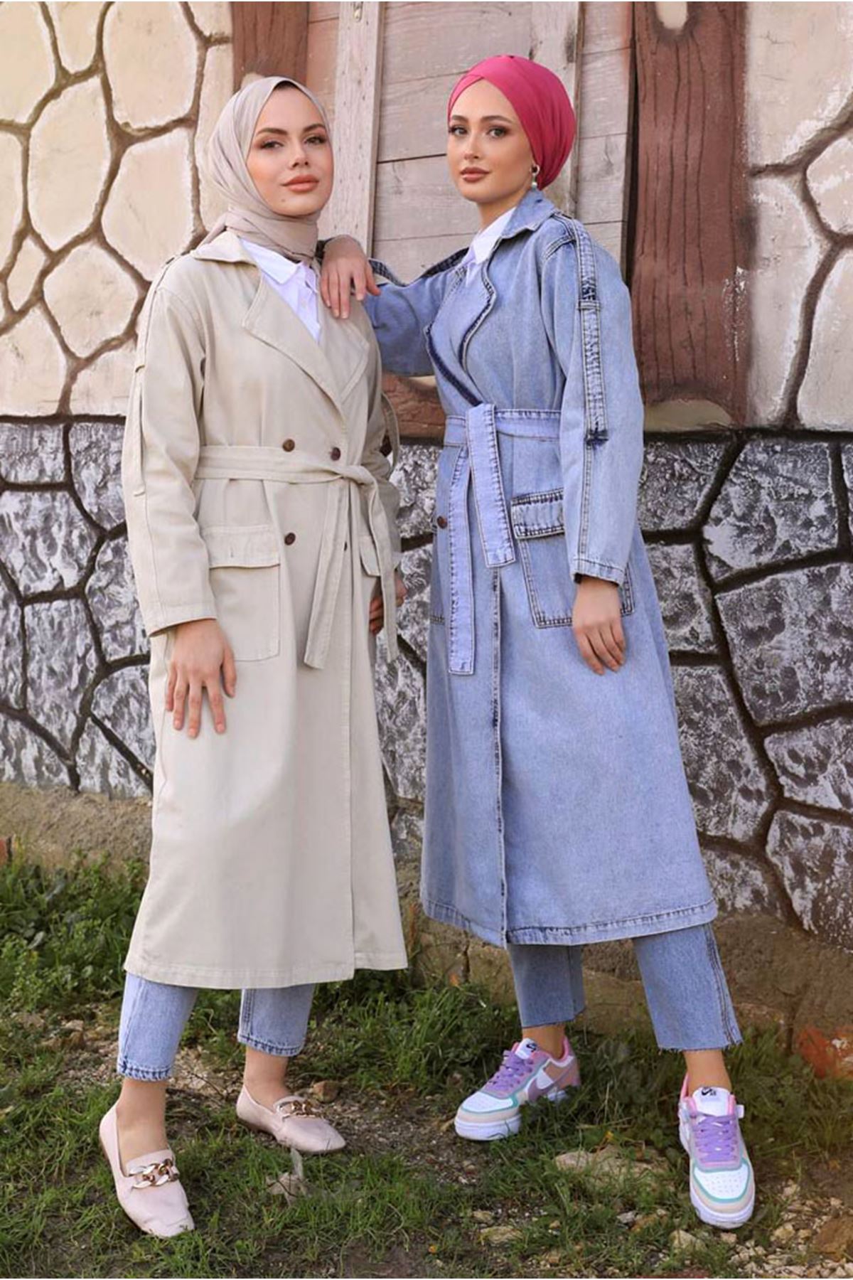 26K5388 - KREM - ŞAL YAKA DENİM TRENCH KOT
