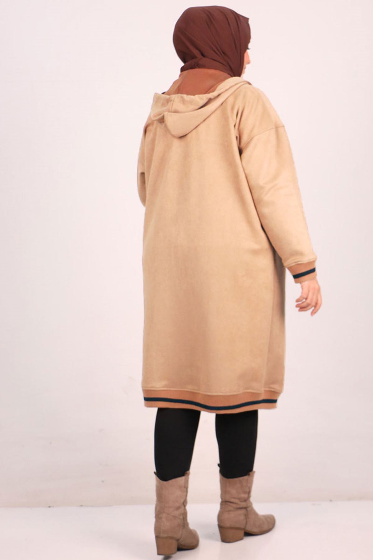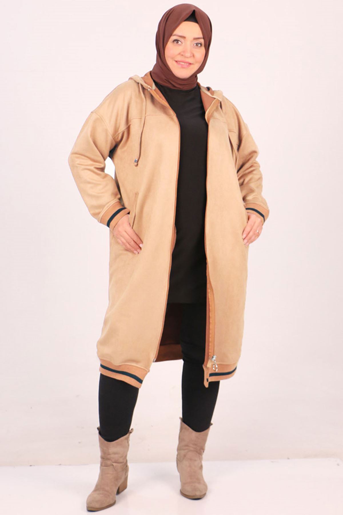 33074 Büyük Beden Nubuk Ribanalı Kap - Vizon