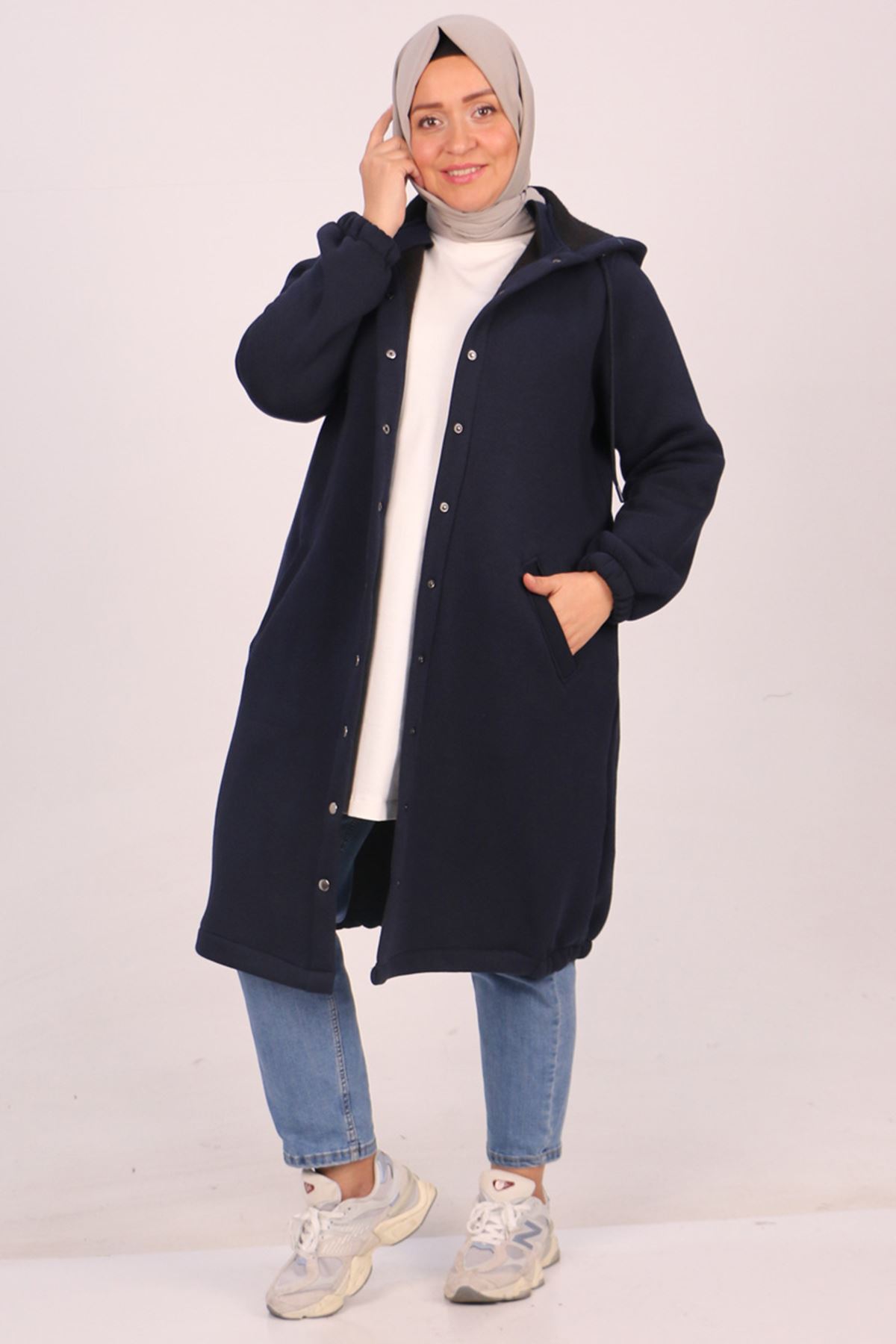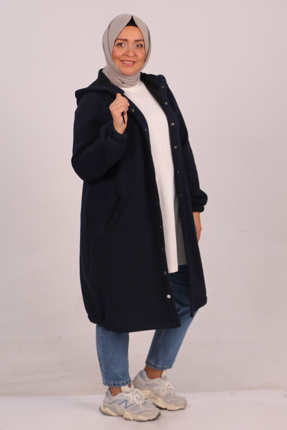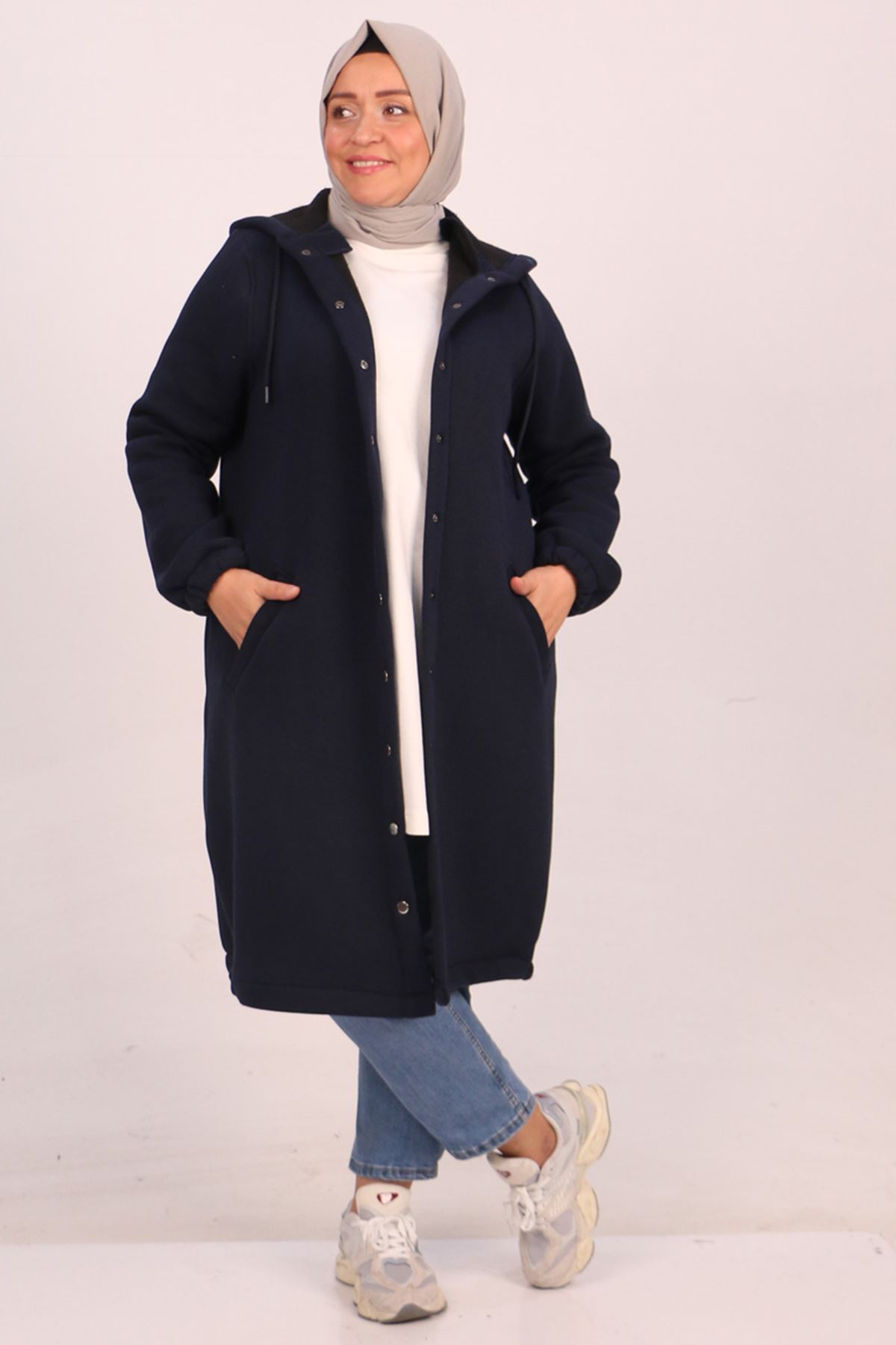 33095 Büyük Beden Çıtçıtlı Altı Lastikli Üç İplik Kap - Lacivert