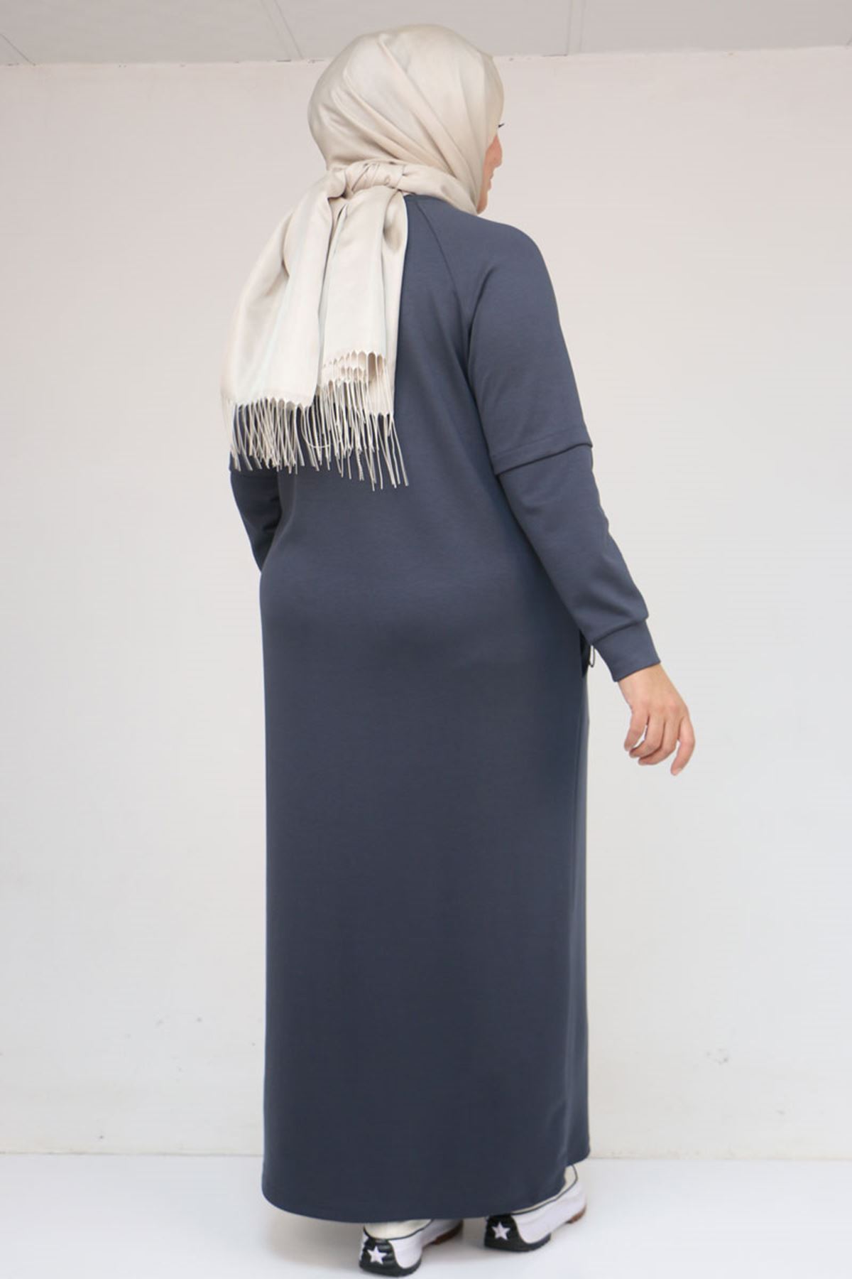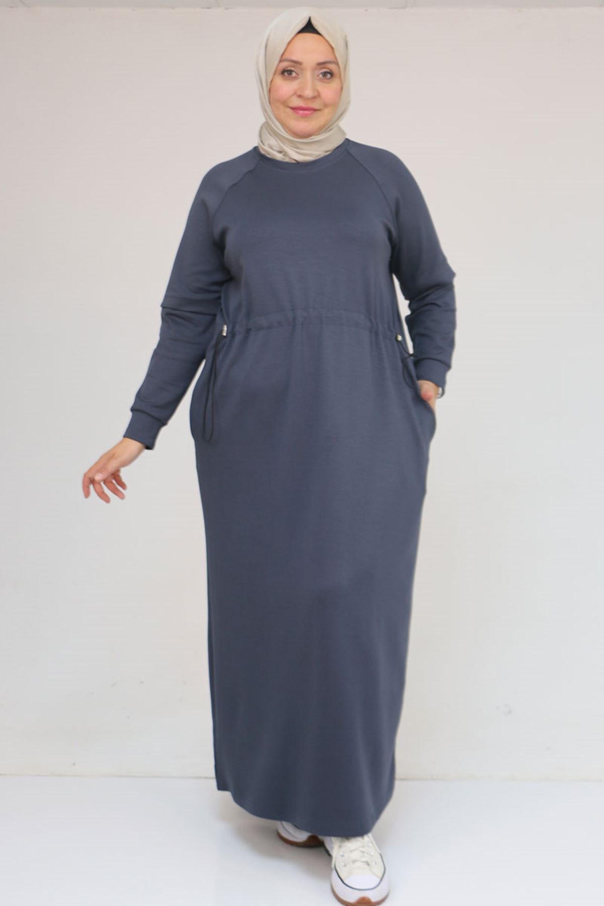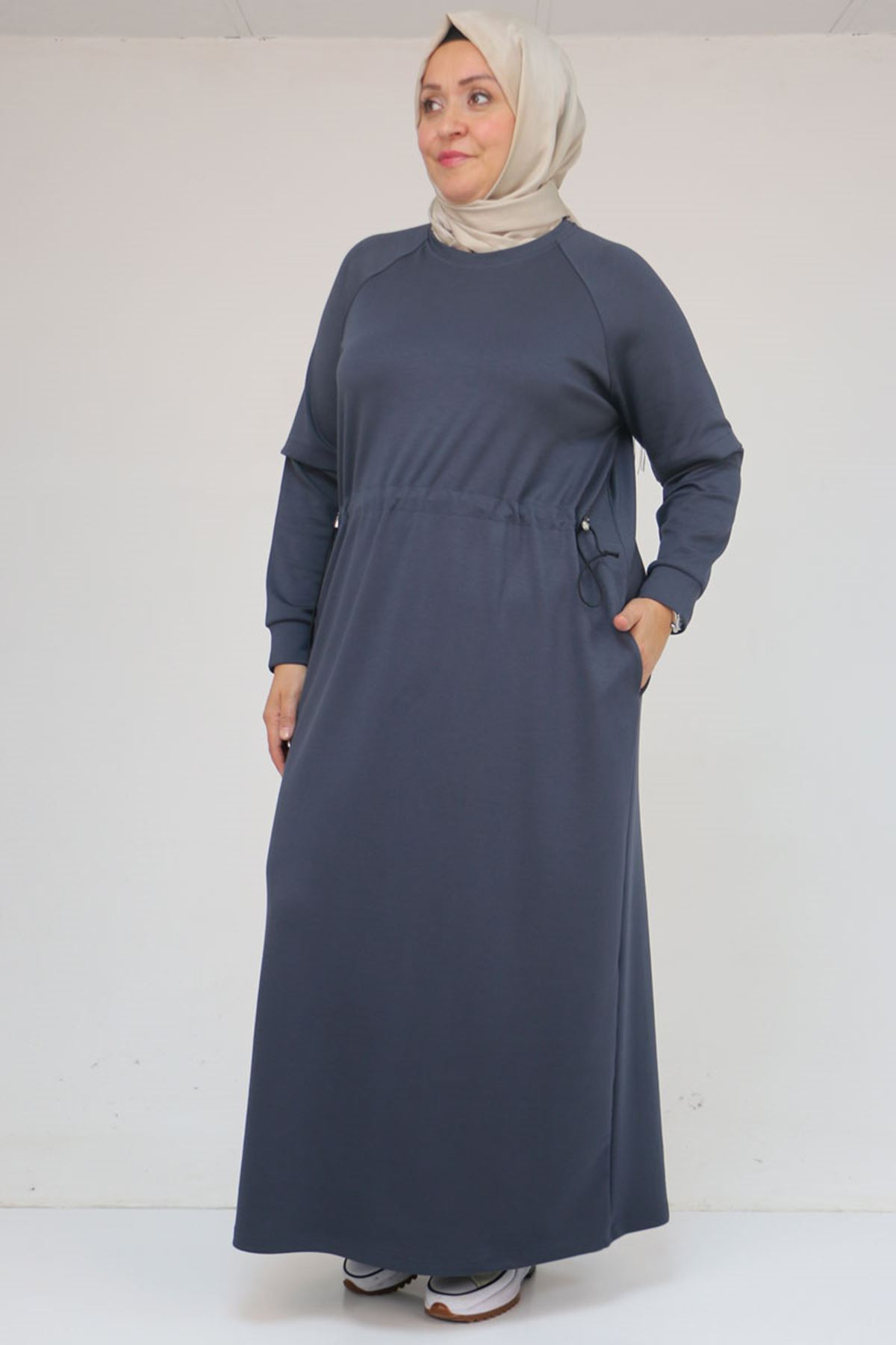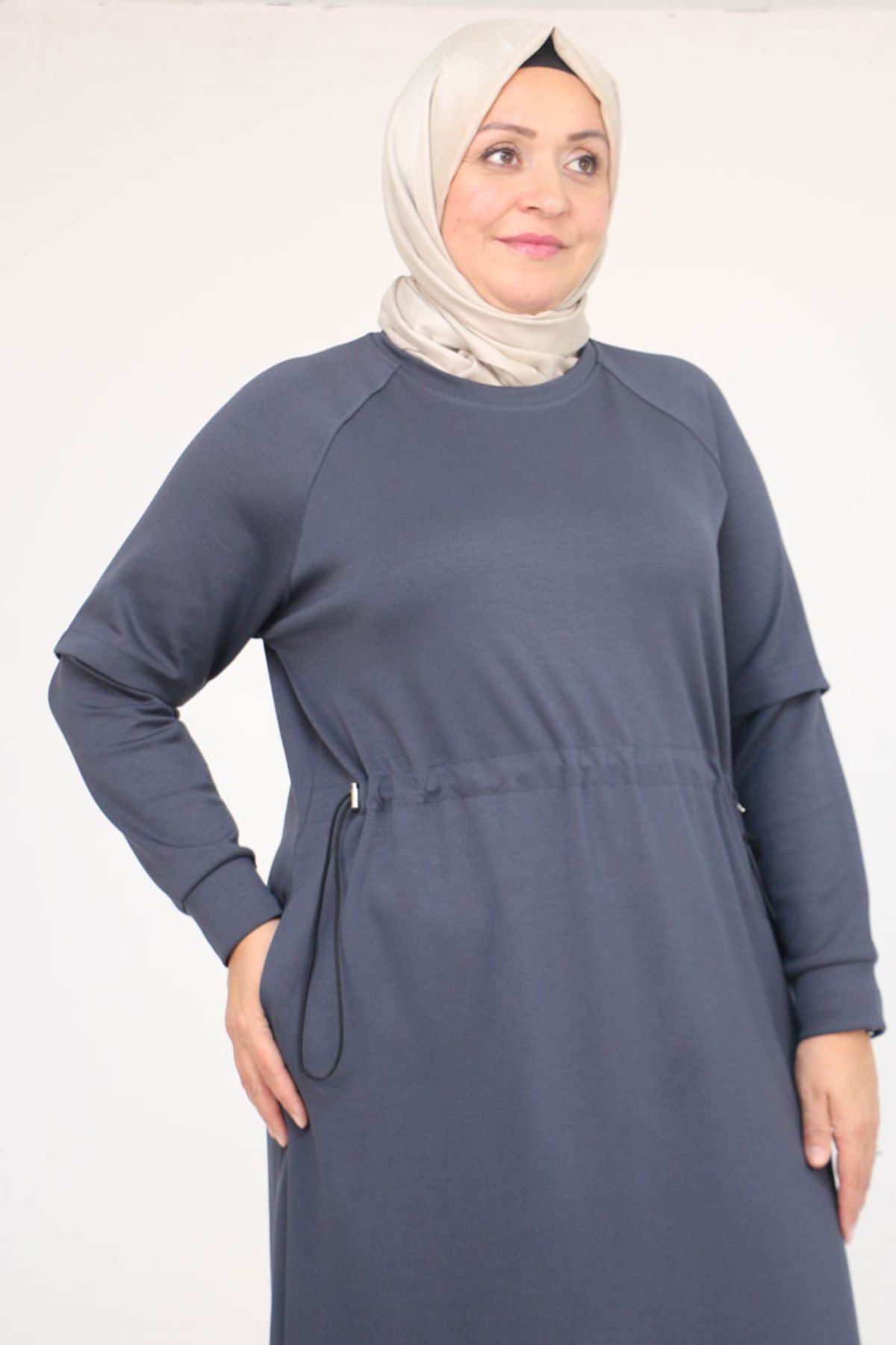 42032 Büyük Beden Beli Lastikli Modal Elbise - Antrasit