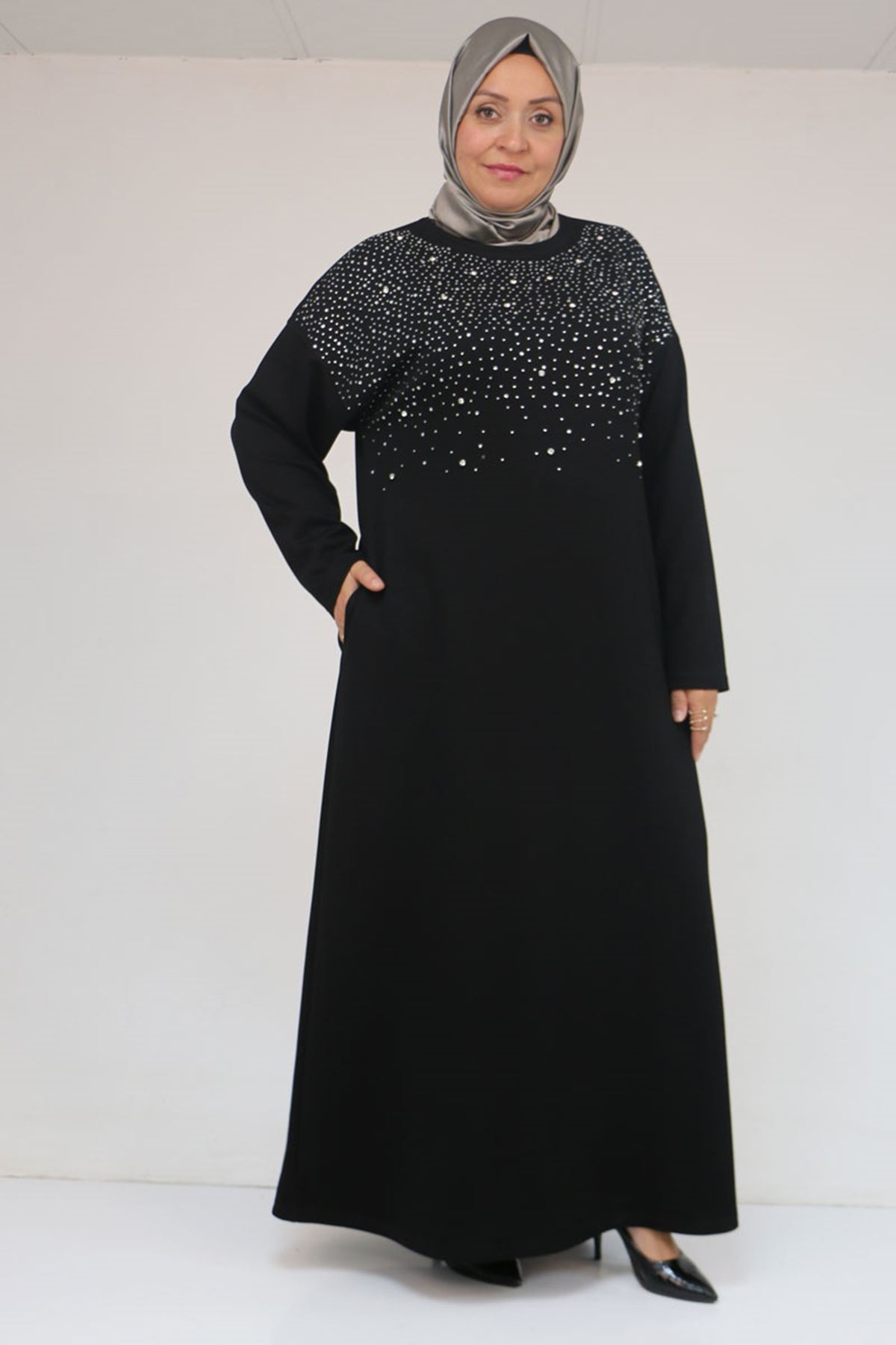 42033 Büyük Beden Yandan Cepli Modal Elbise - Siyah