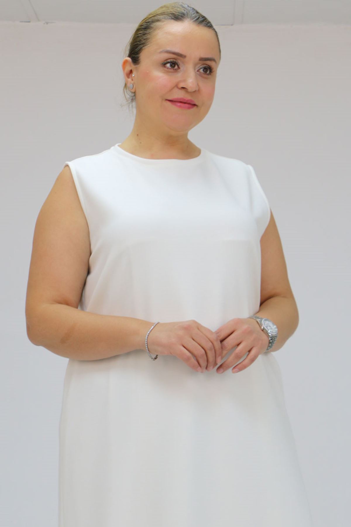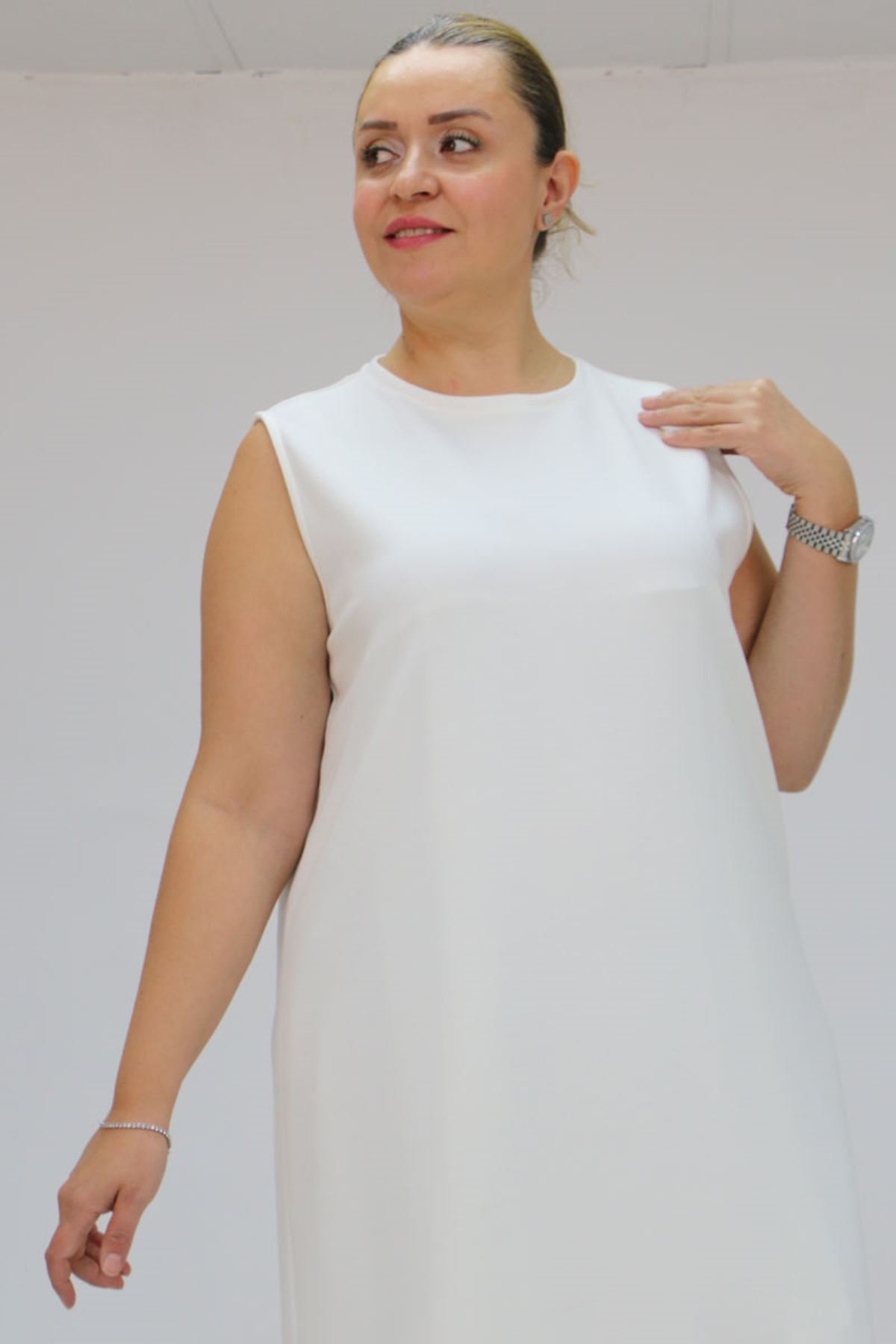 42050 Büyük Beden Modal Kolsuz Elbise - Ekru