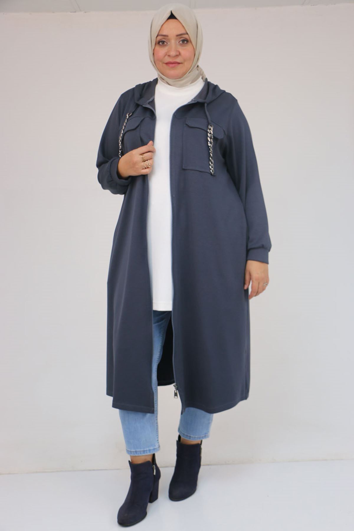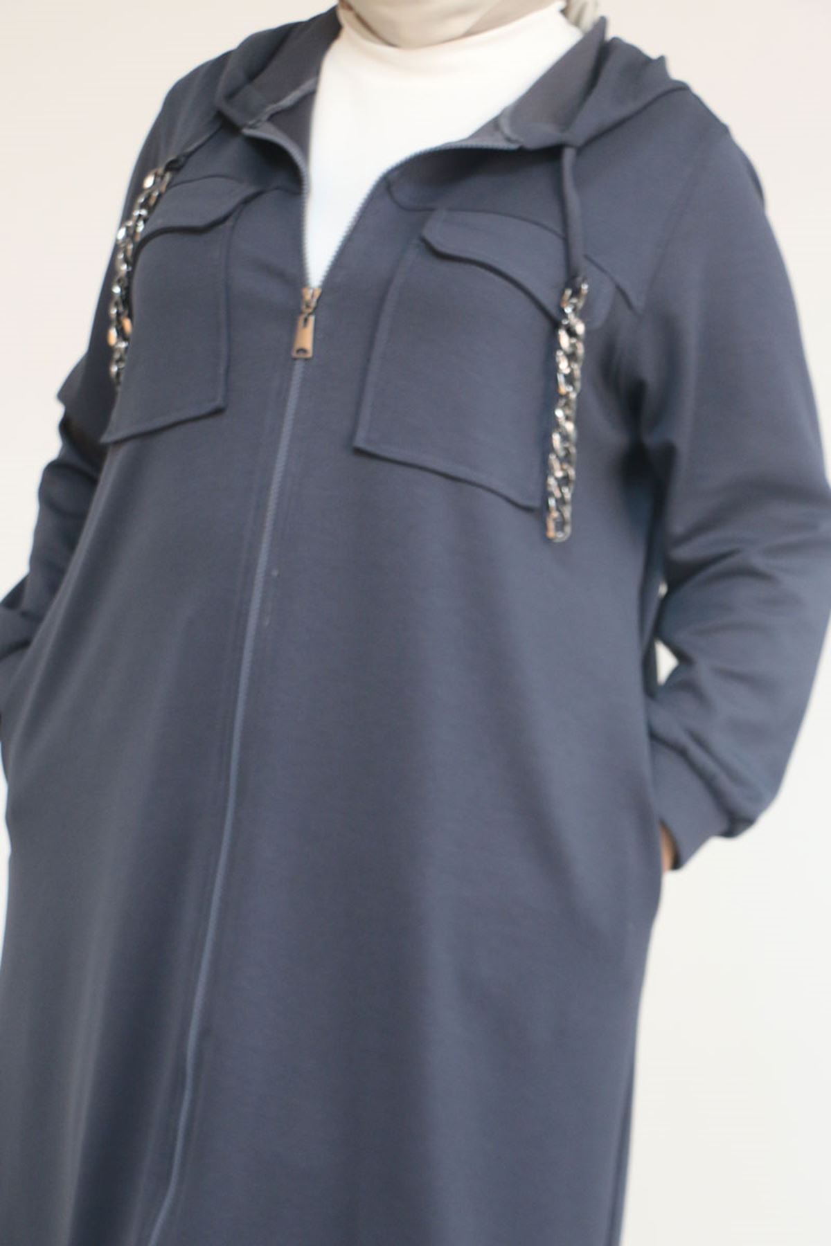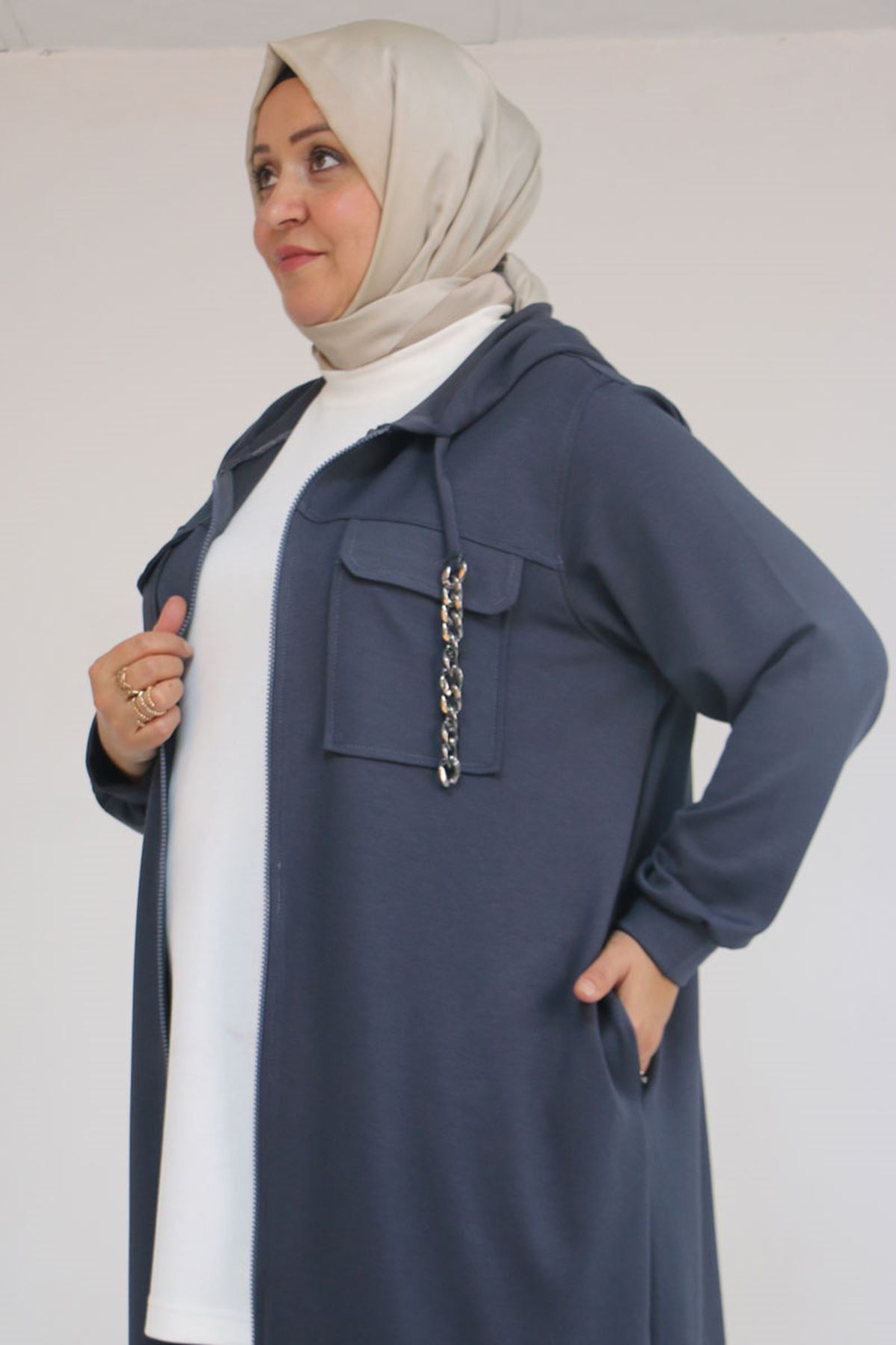 43036 Büyük Beden Zincir Kordonlu Modal Kap - Antrasit