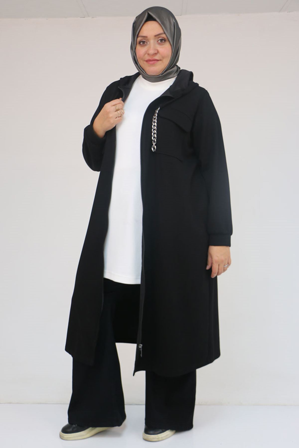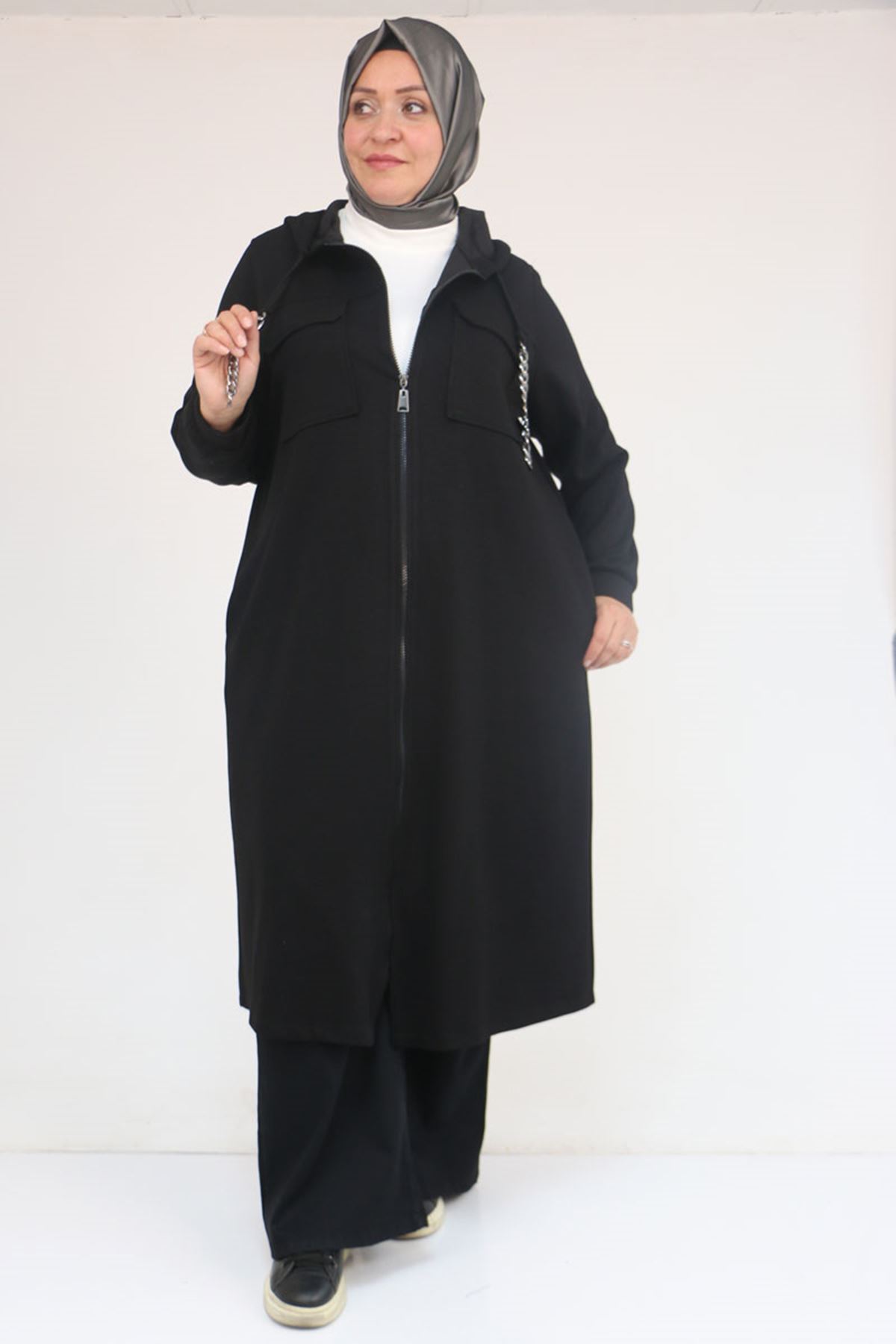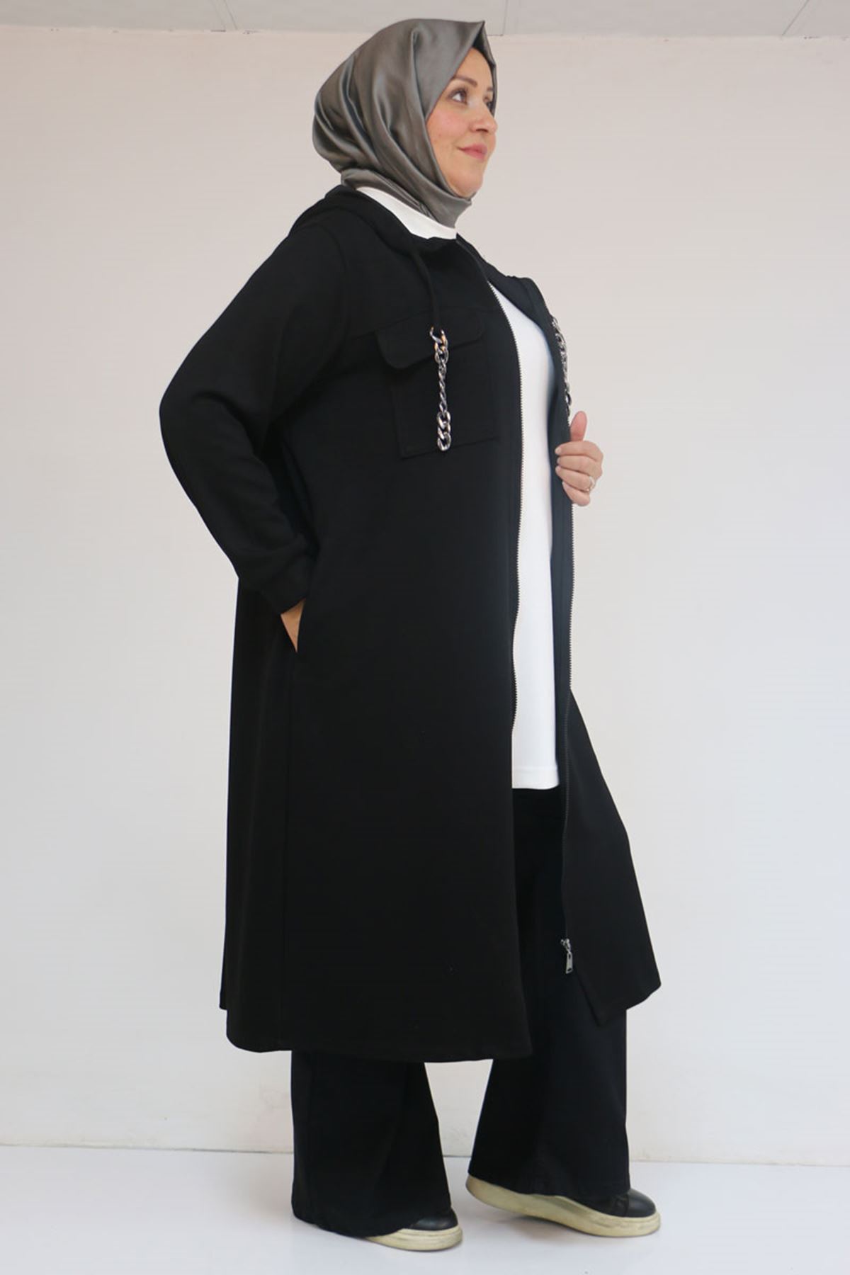 43036 Büyük Beden Zincir Kordonlu Modal Kap - Siyah