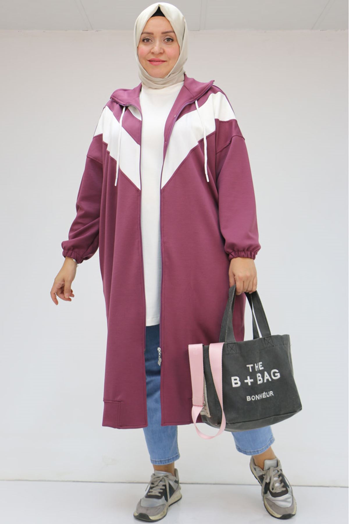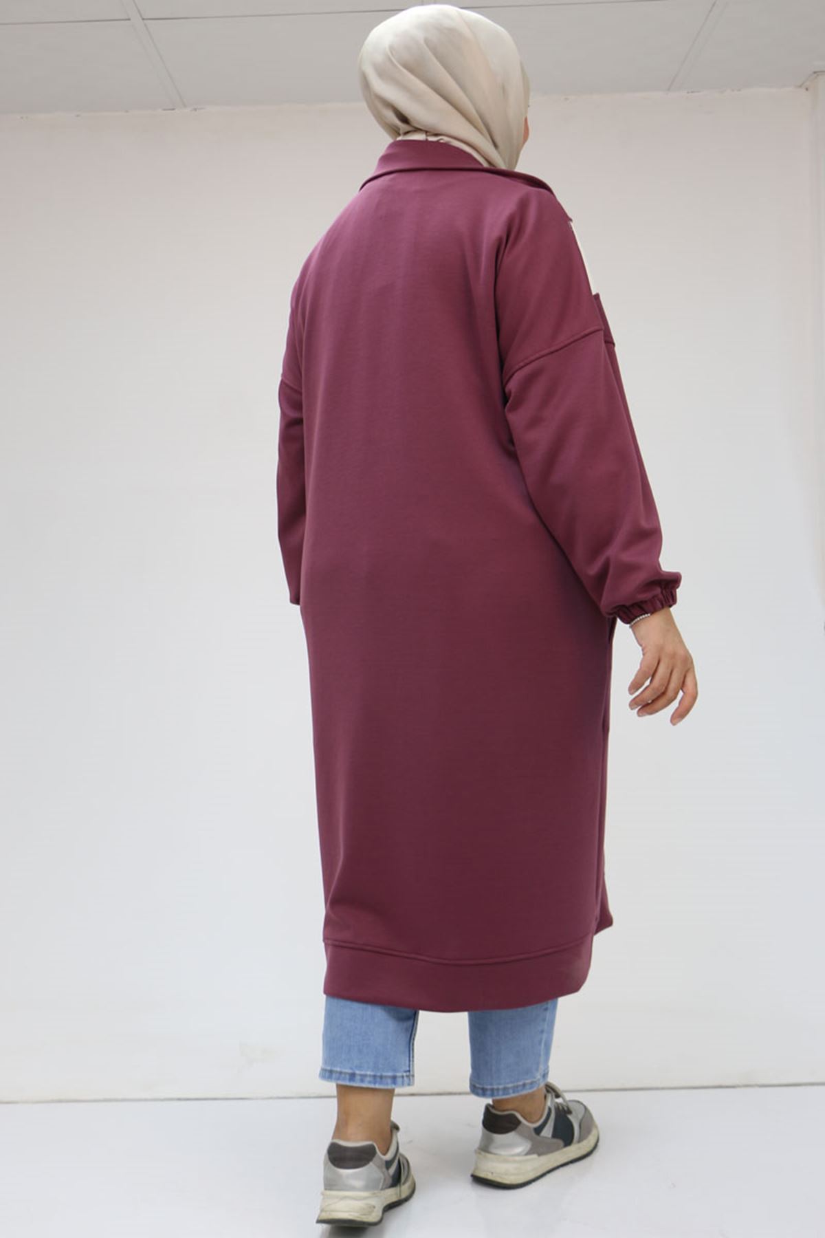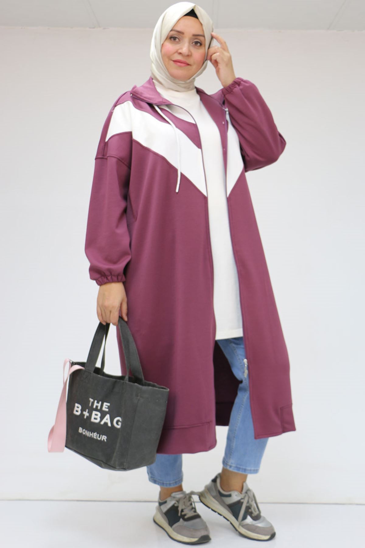 43047 Büyük Beden Düşük Kol Garnili Osyho Kap - Gül Kurusu
