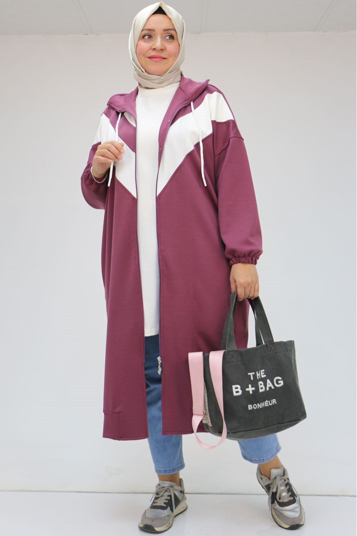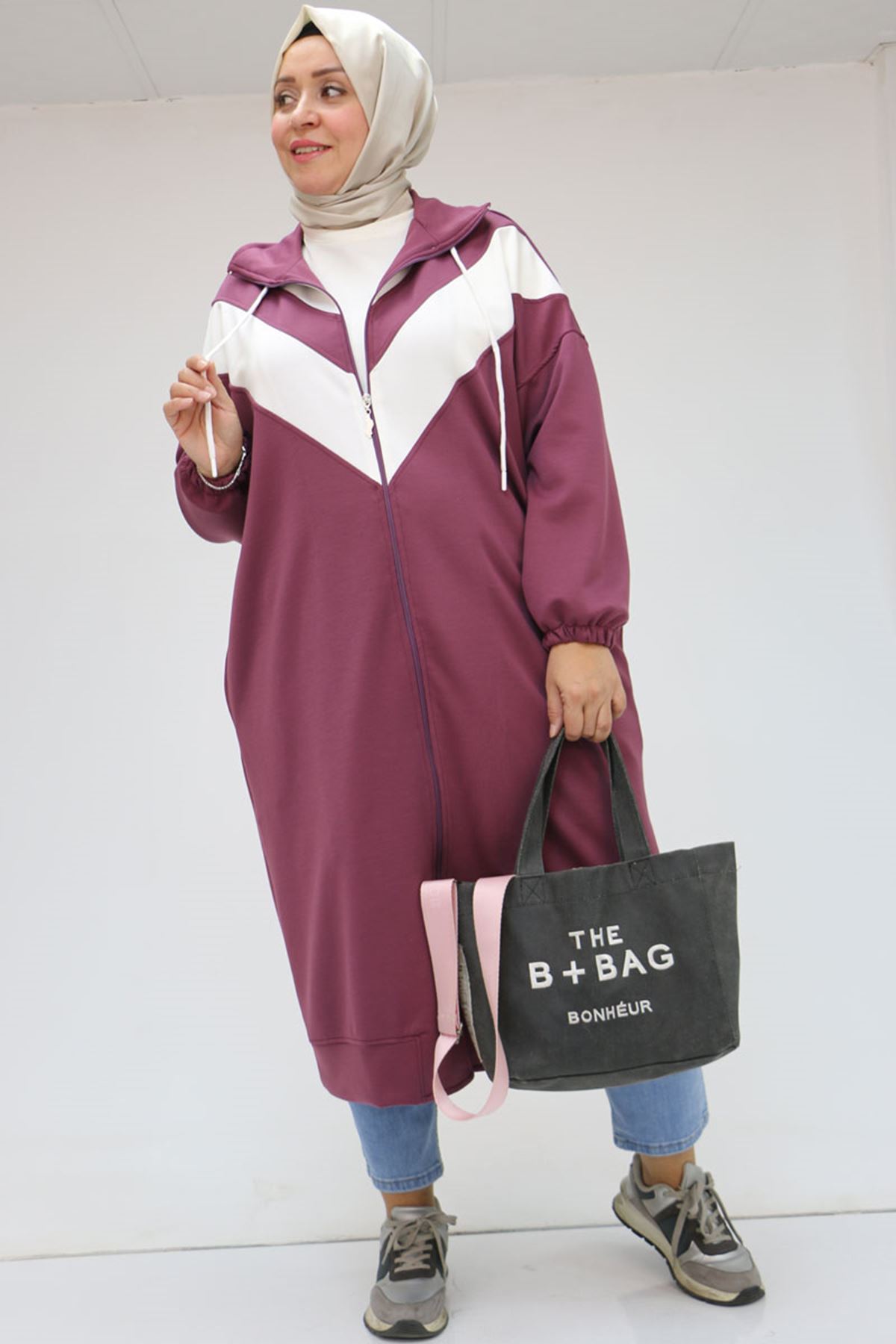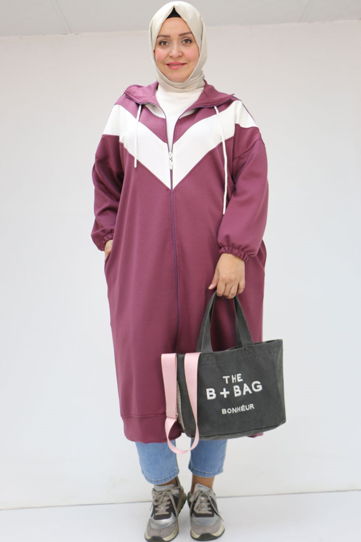 43047 Büyük Beden Düşük Kol Garnili Osyho Kap - Gül Kurusu