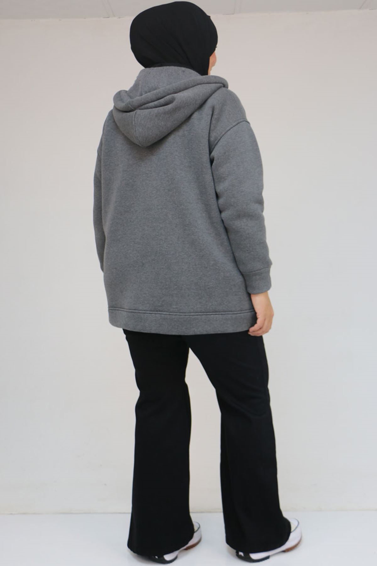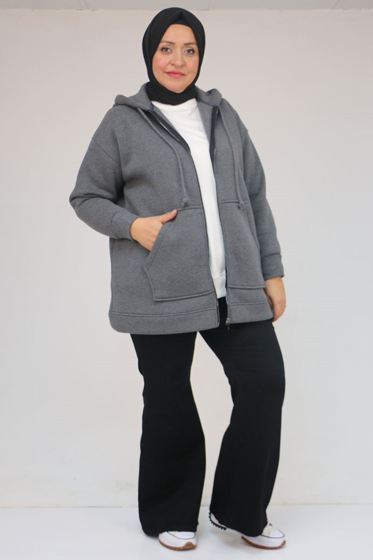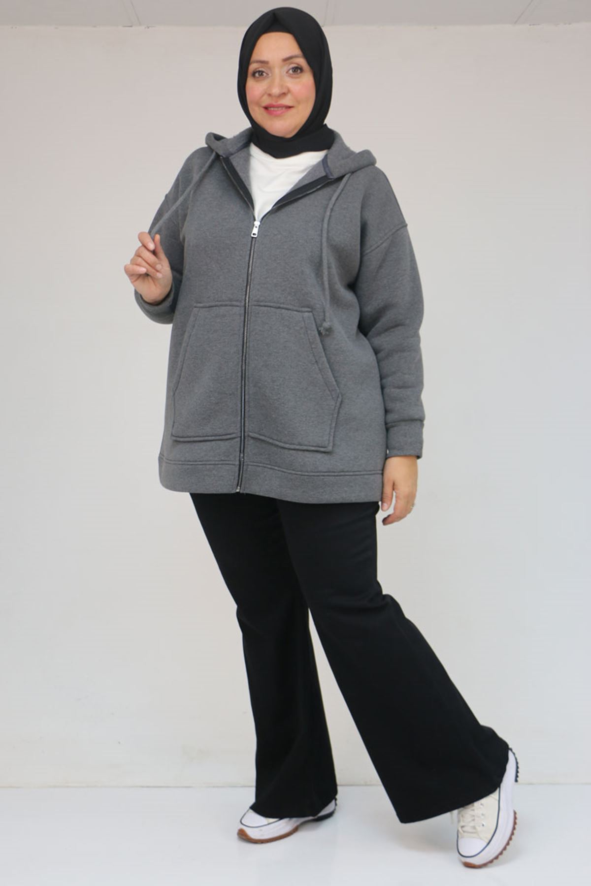 43069 Büyük Beden Eteği Ribanalı Üç İplik Ceket - Antrasit