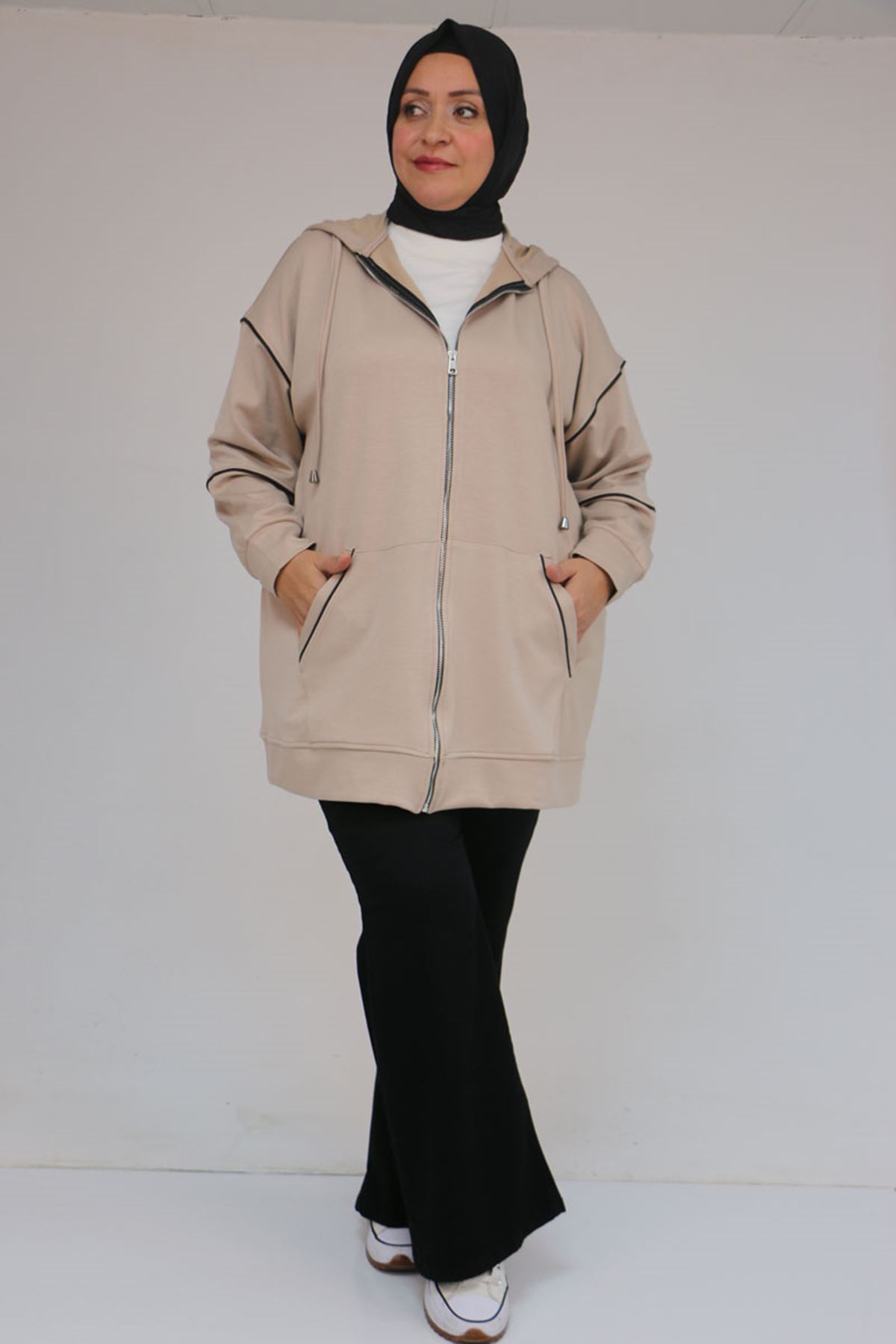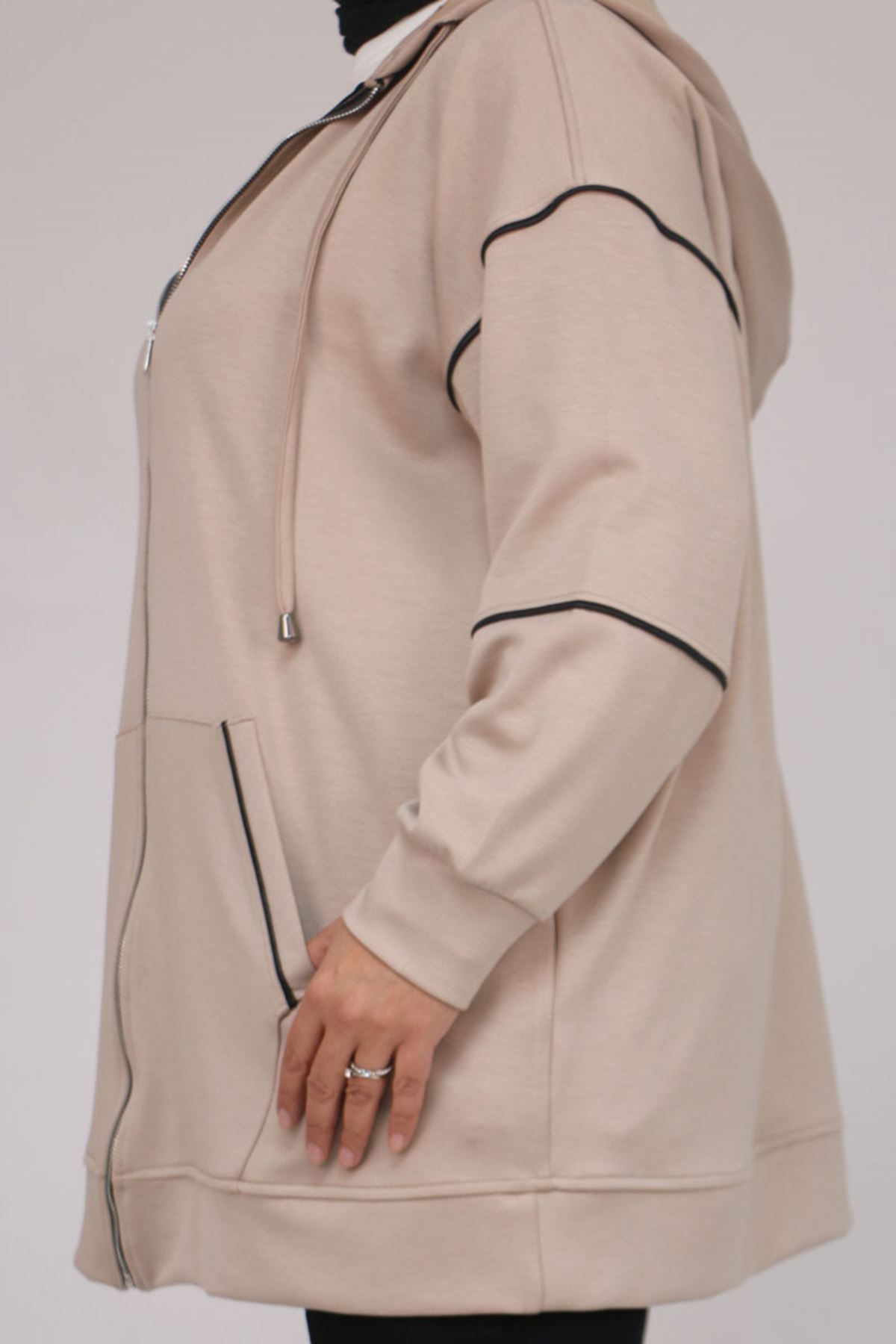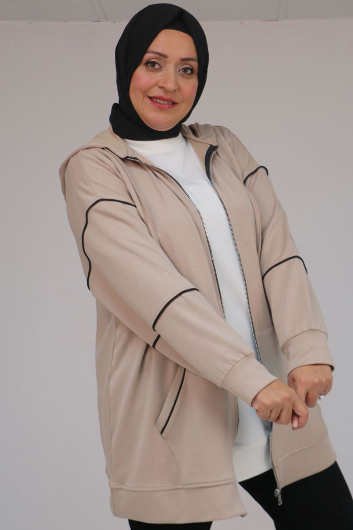 43072 Büyük Beden Waterport Biyeli Modal Ceket - Bej