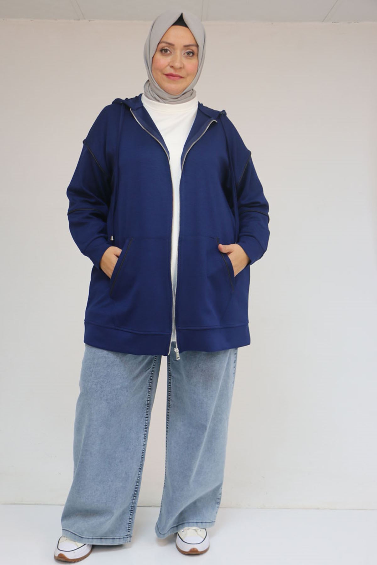 43072 Büyük Beden Waterport Biyeli Modal Ceket - İndigo