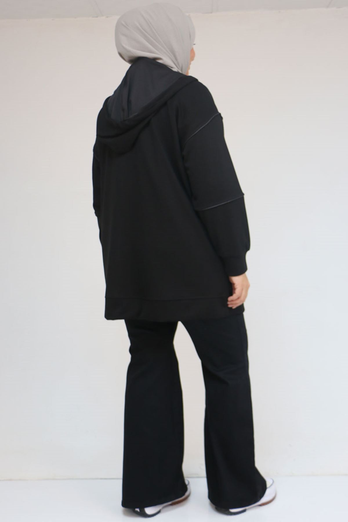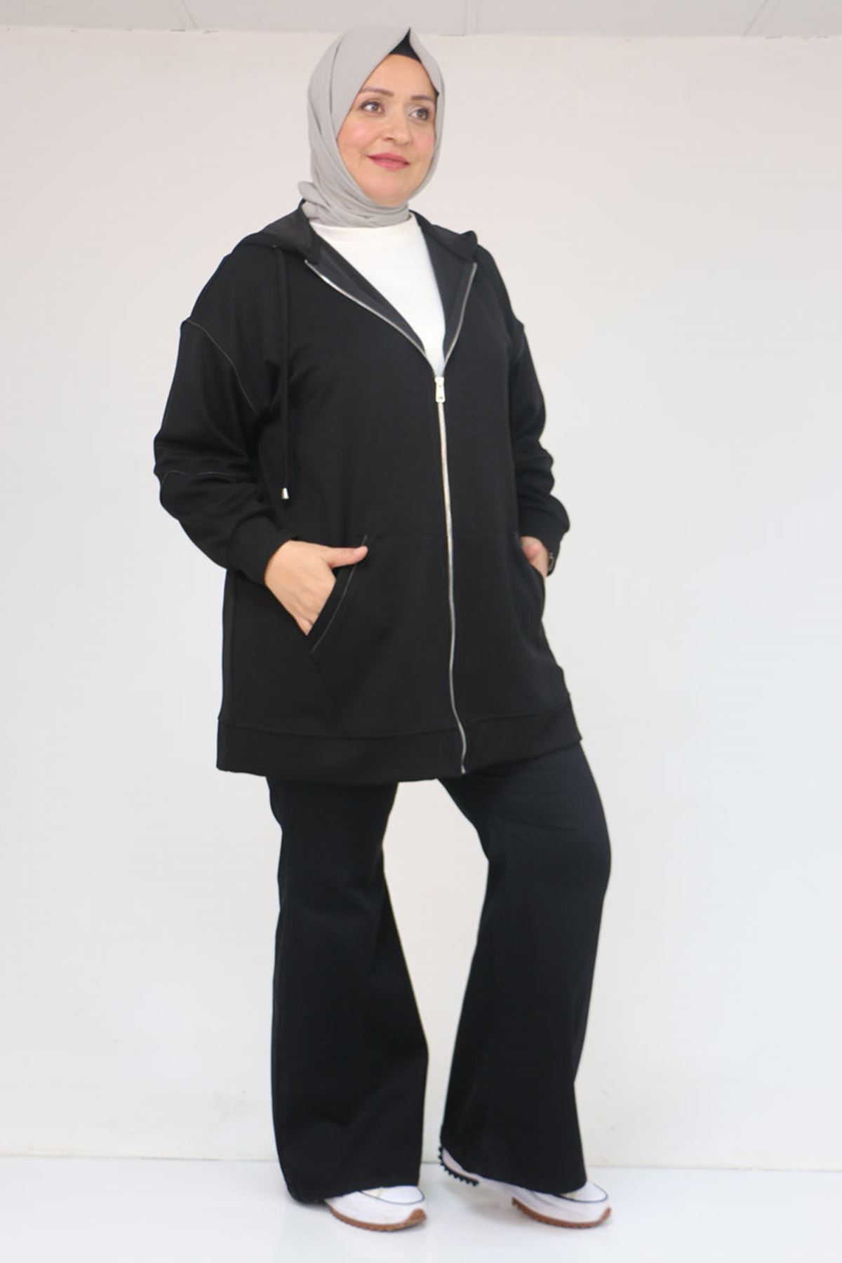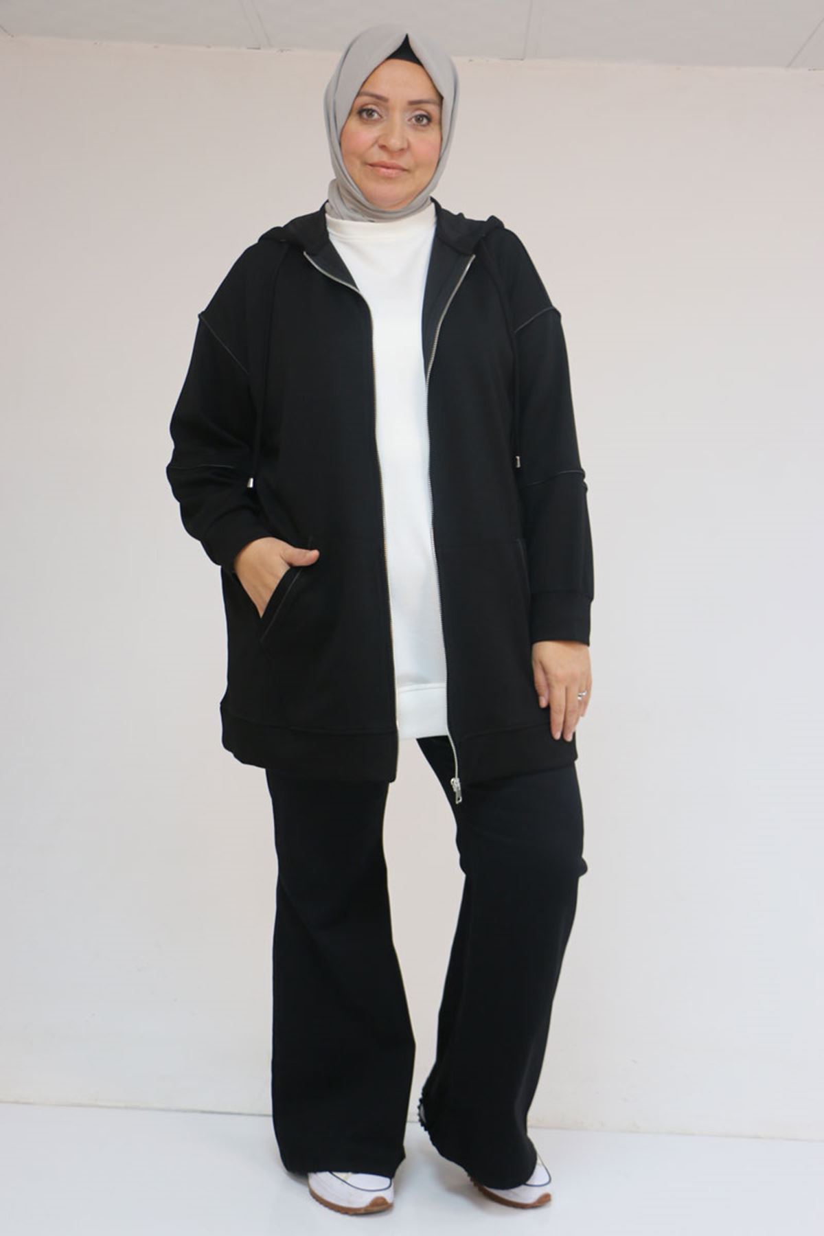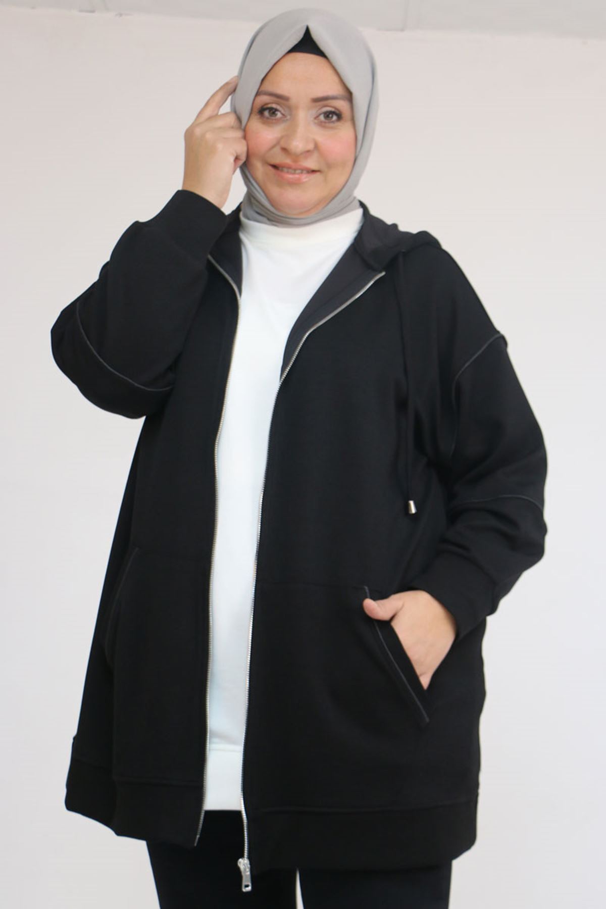 43072 Büyük Beden Waterport Biyeli Modal Ceket - Siyah