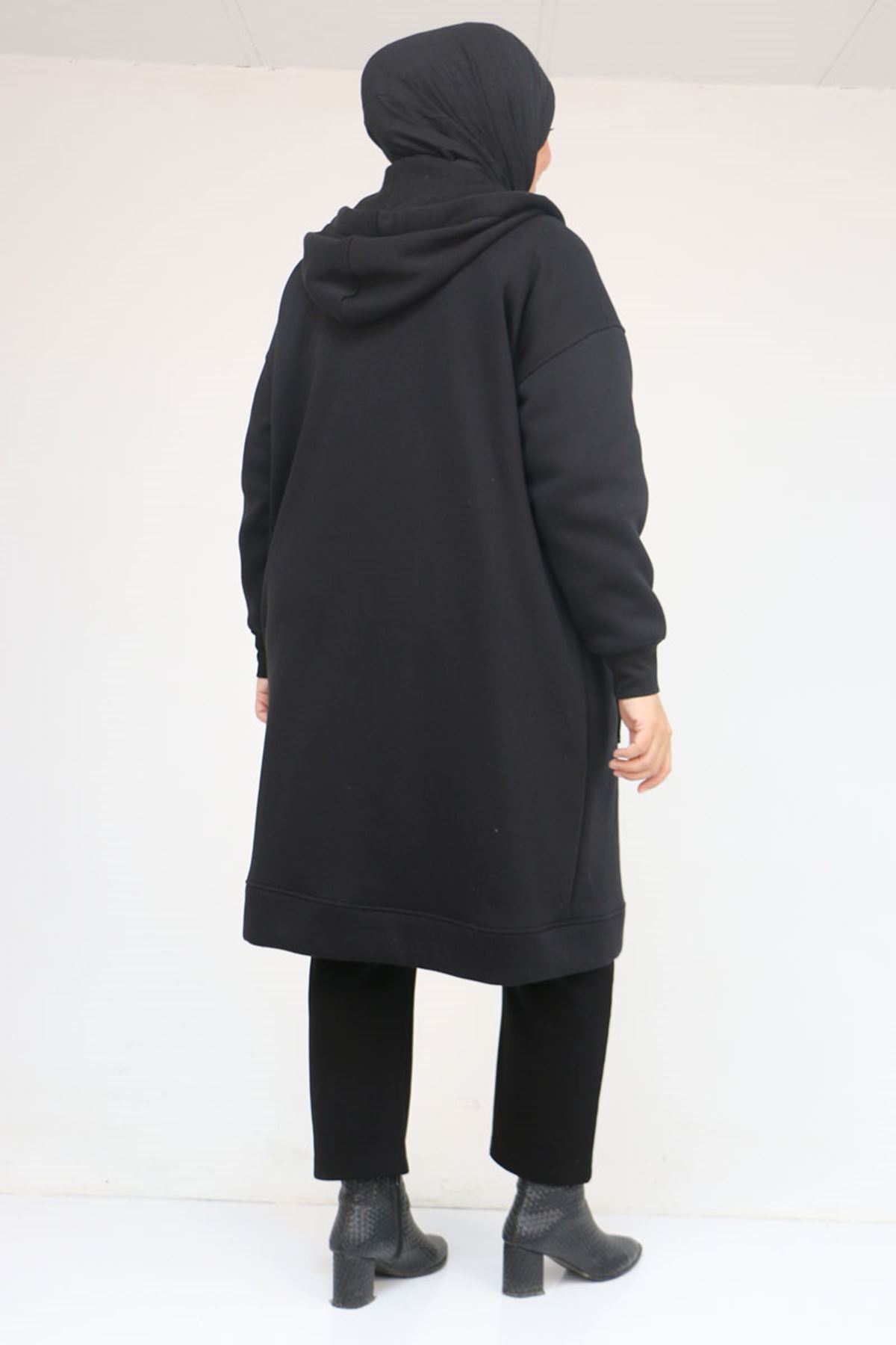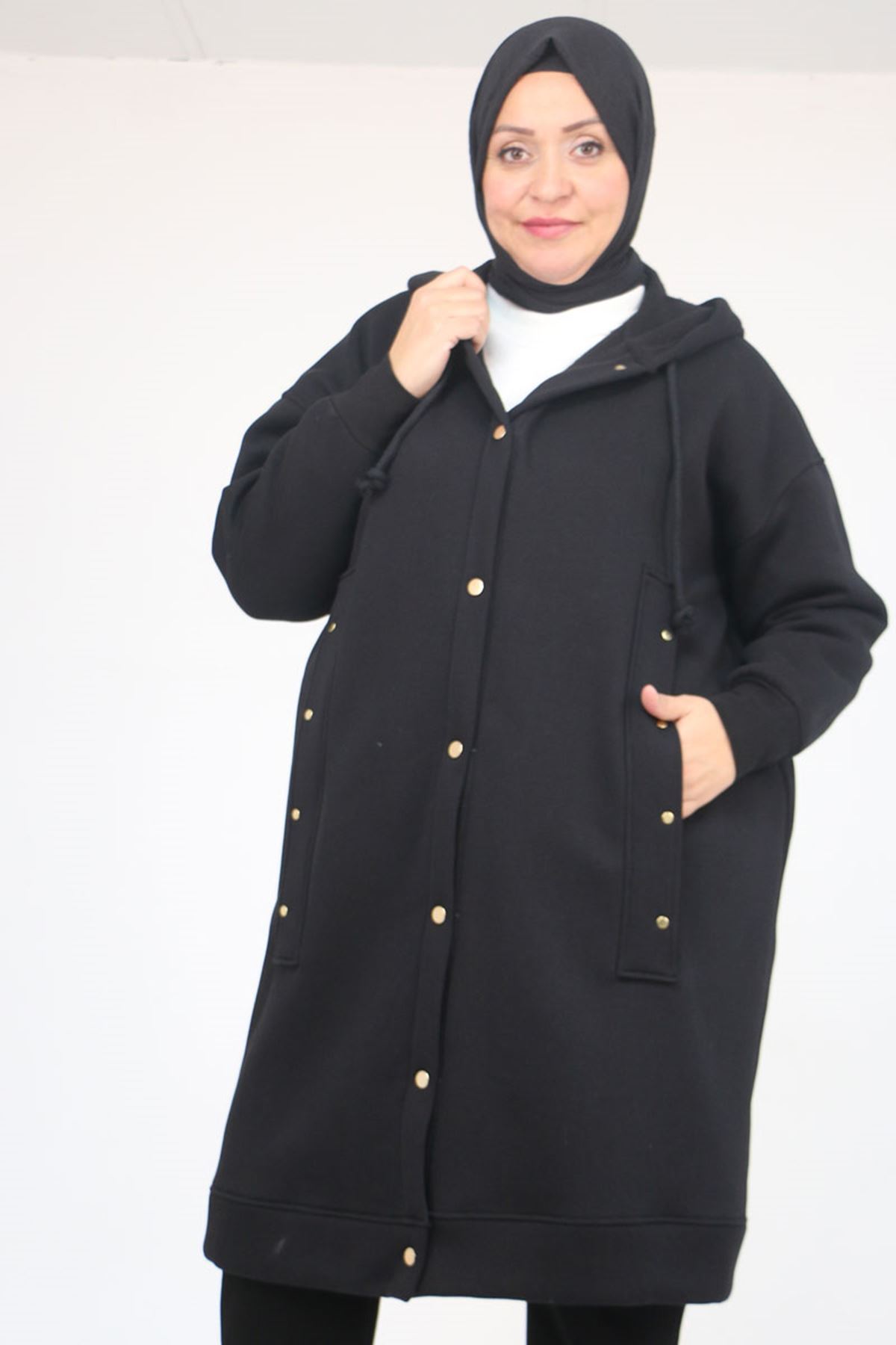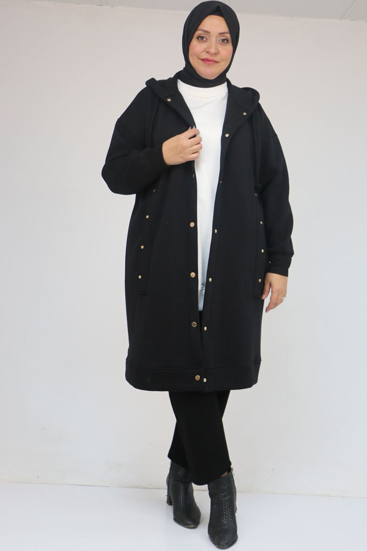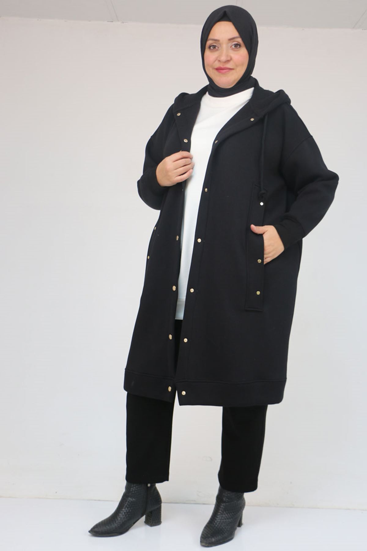 43077 Büyük Beden Kol Ve Etek Ucu Ribanalı Üç İplik Kap - Siyah