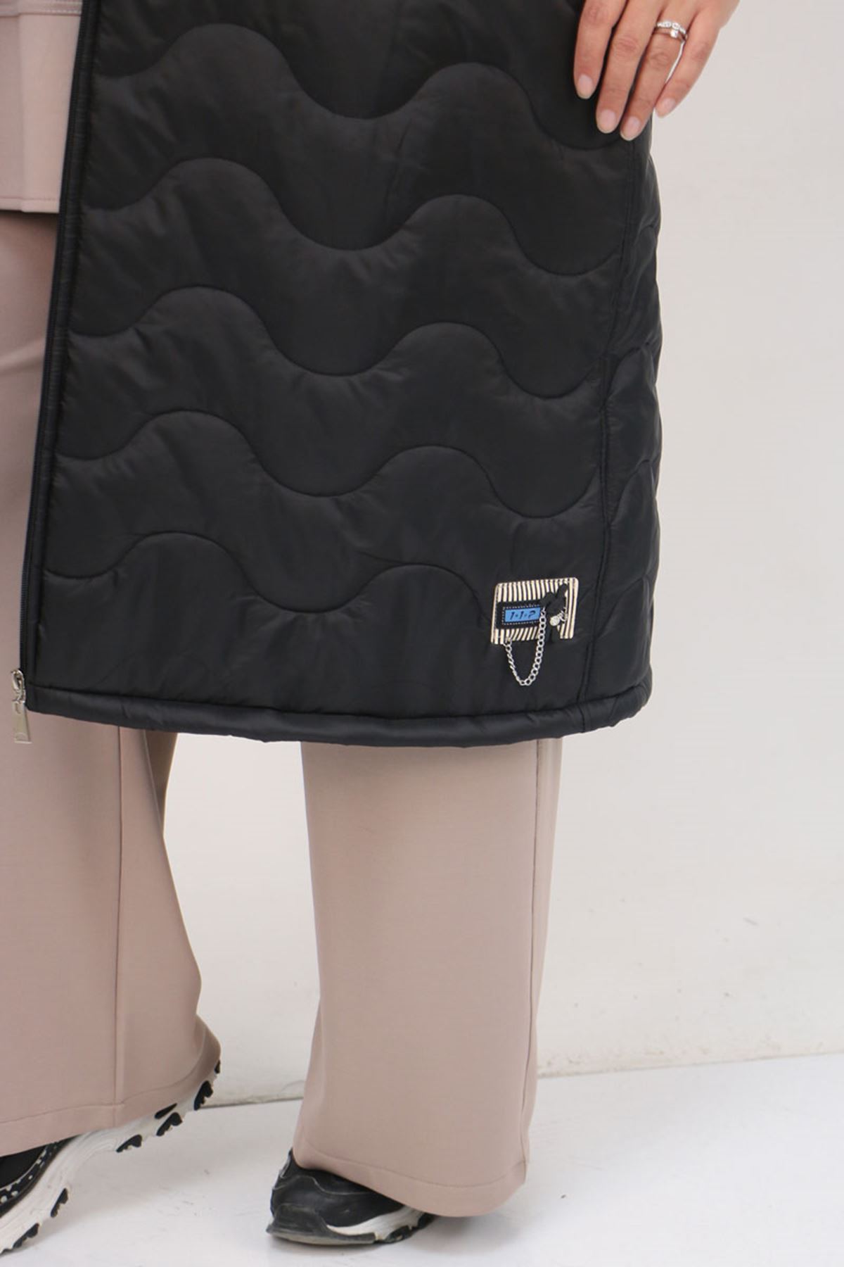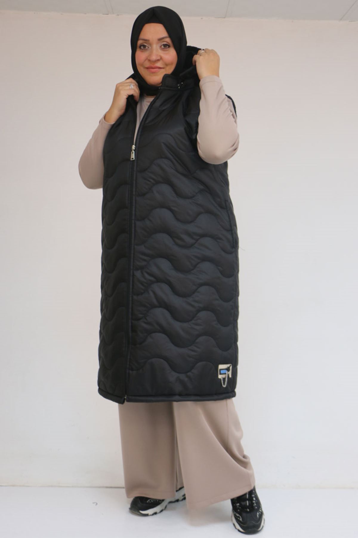 44004 Büyük Beden Cepli Fermuarlı Kapitone Yelek - Siyah