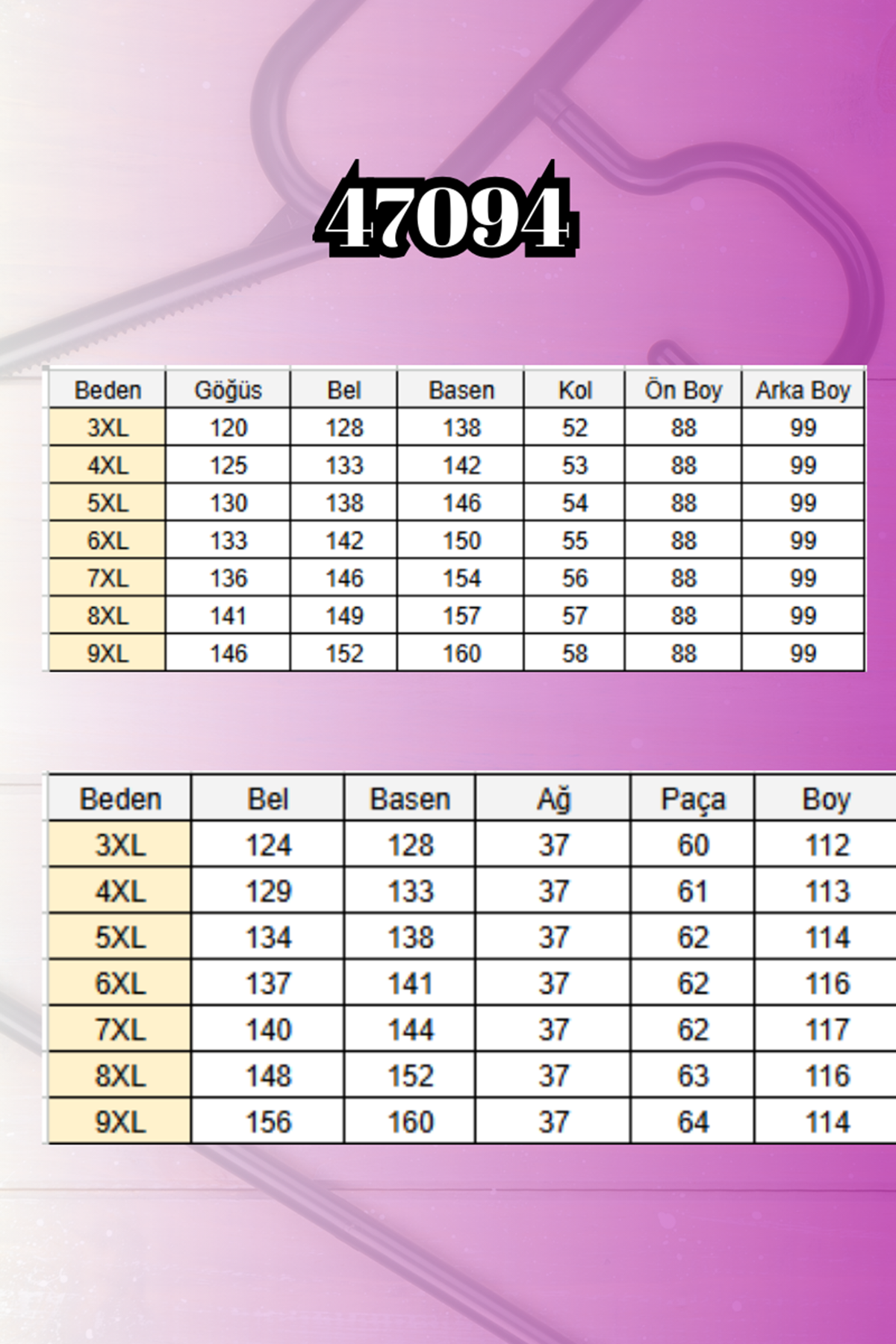 BEL GENİŞLİĞİ :88 cm GÖĞÜS GENİŞLİĞİ :103 cm BASEN :116 cm