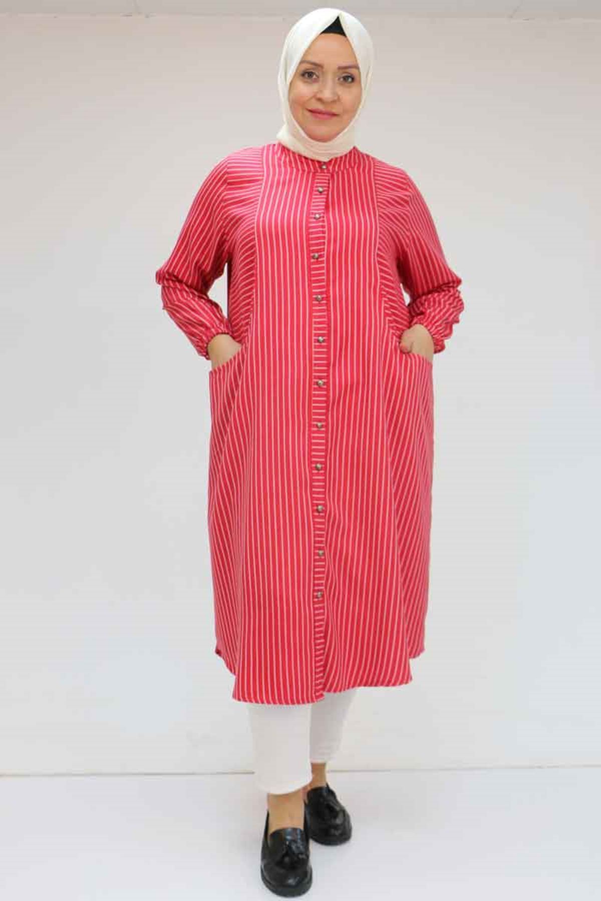 48072 Büyük Beden Kolları Lastikli Tunik - Kırmızı
