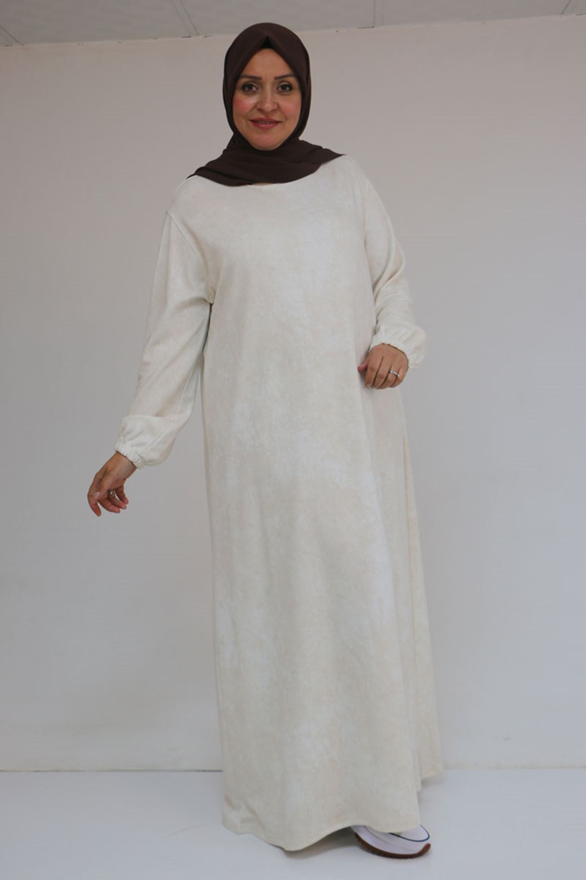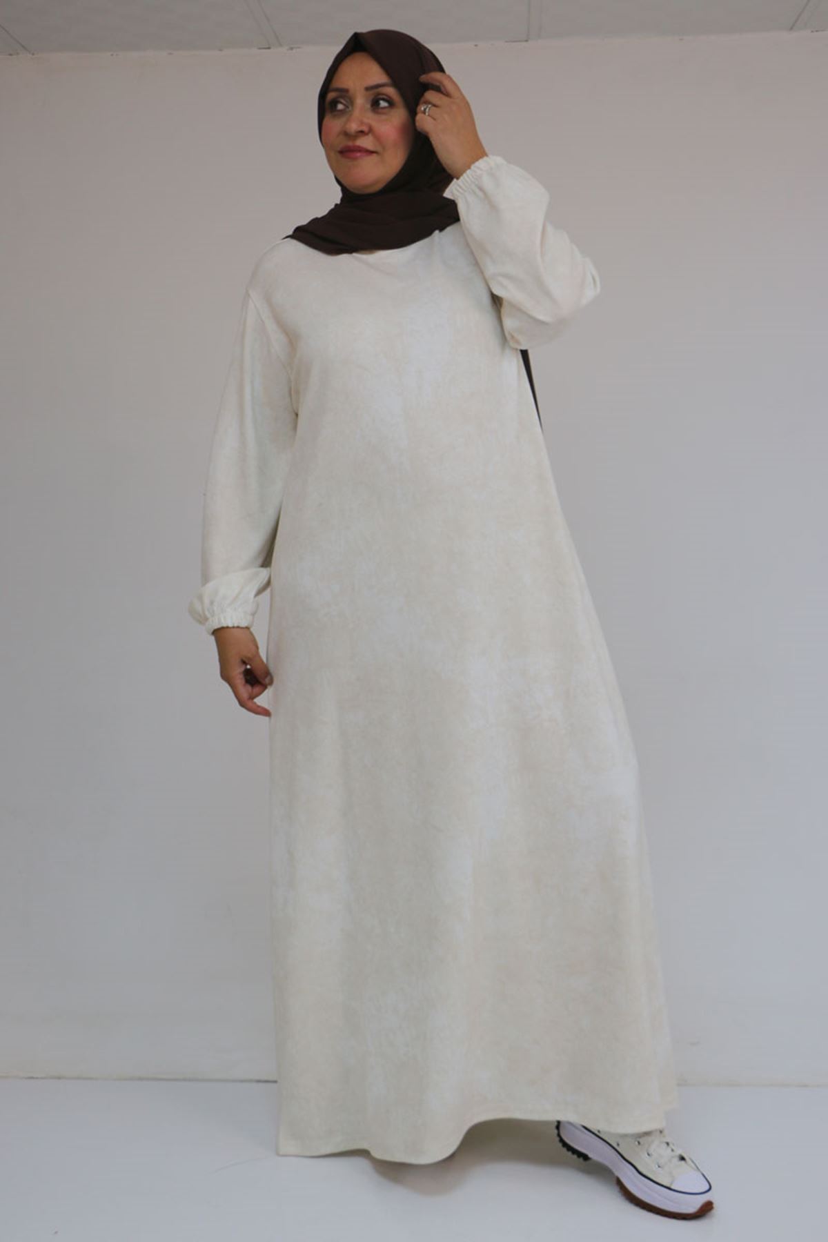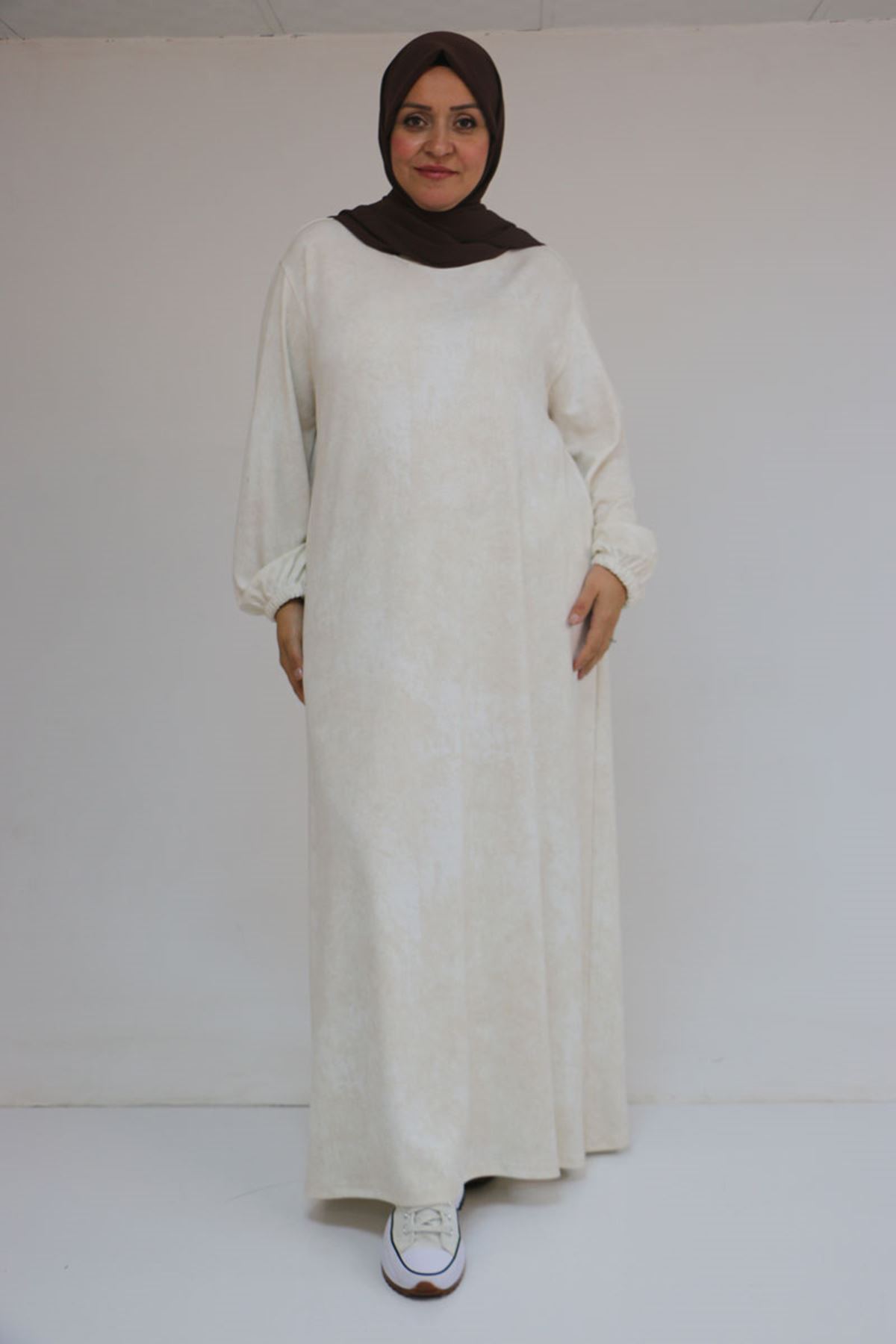 52030 Büyük Beden Kolu Lastikli Modal Elbise - Batik Ekru