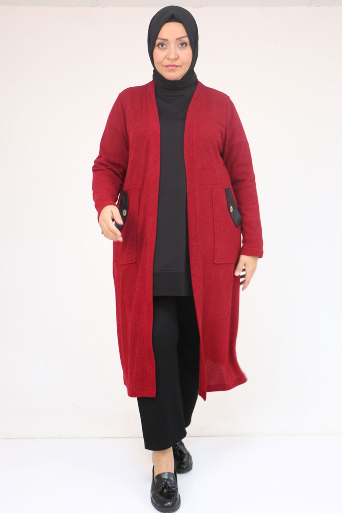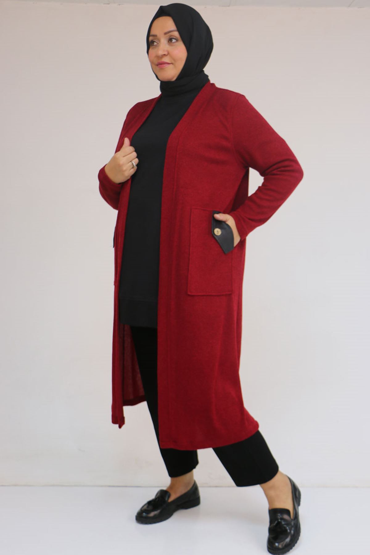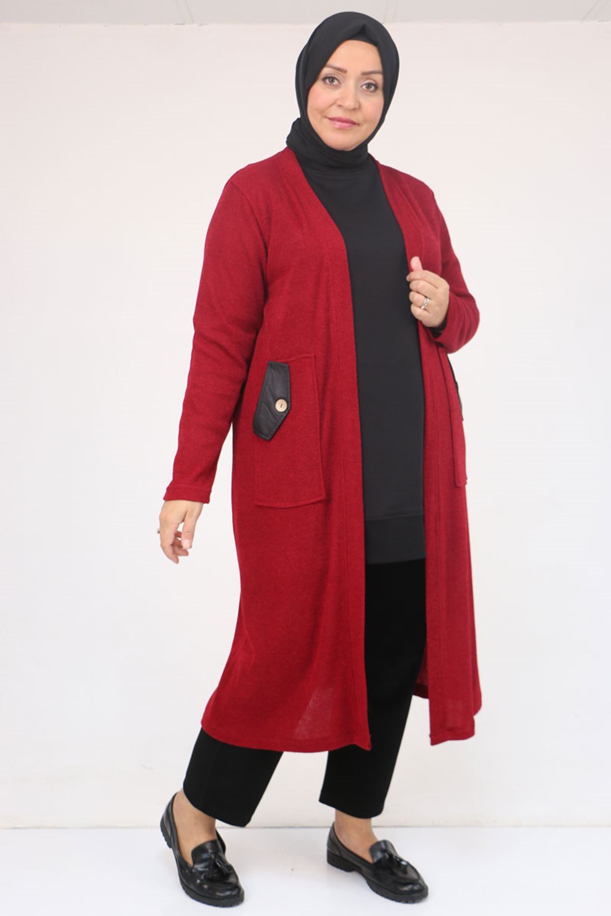 53035 Büyük Beden Cep Detaylı Mir Ceket - Bordo