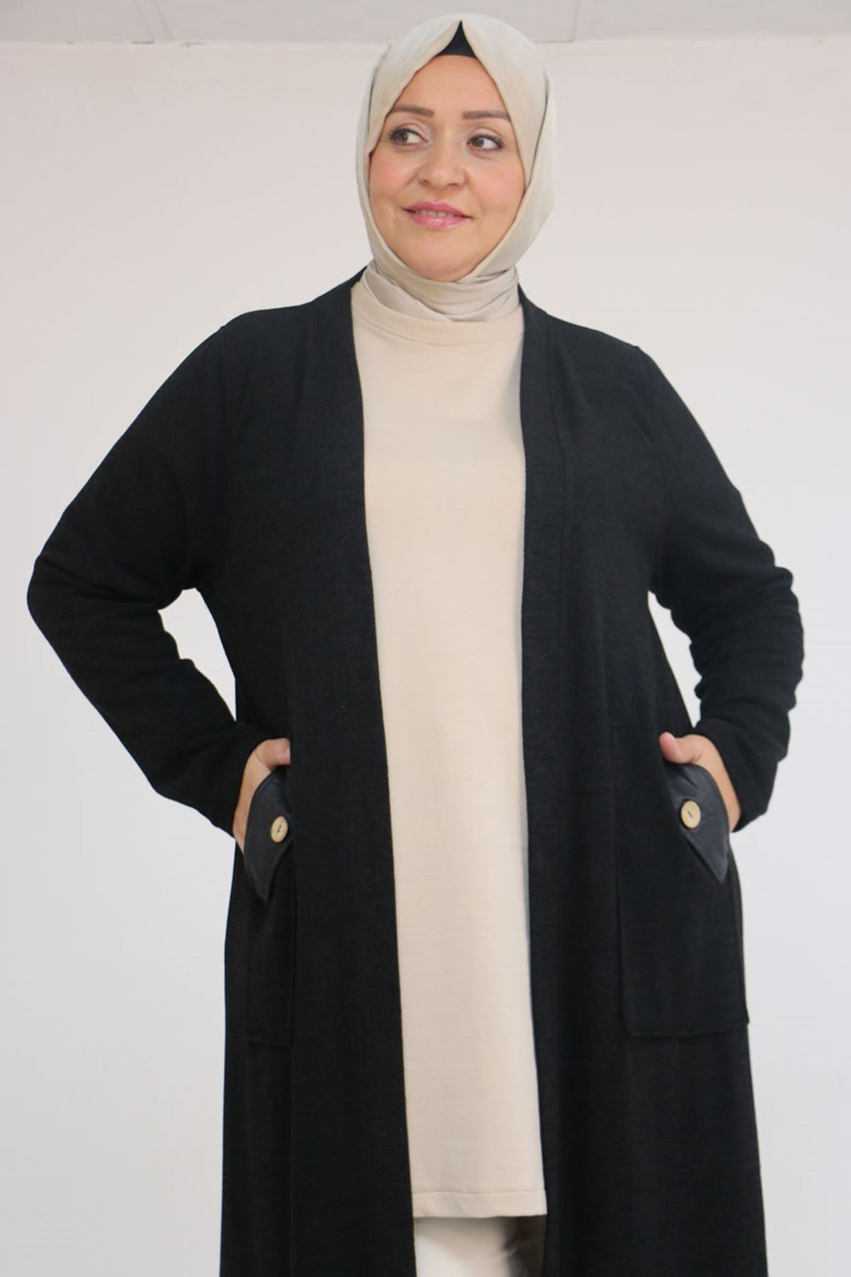 53035 Büyük Beden Cep Detaylı Mir Ceket - Siyah