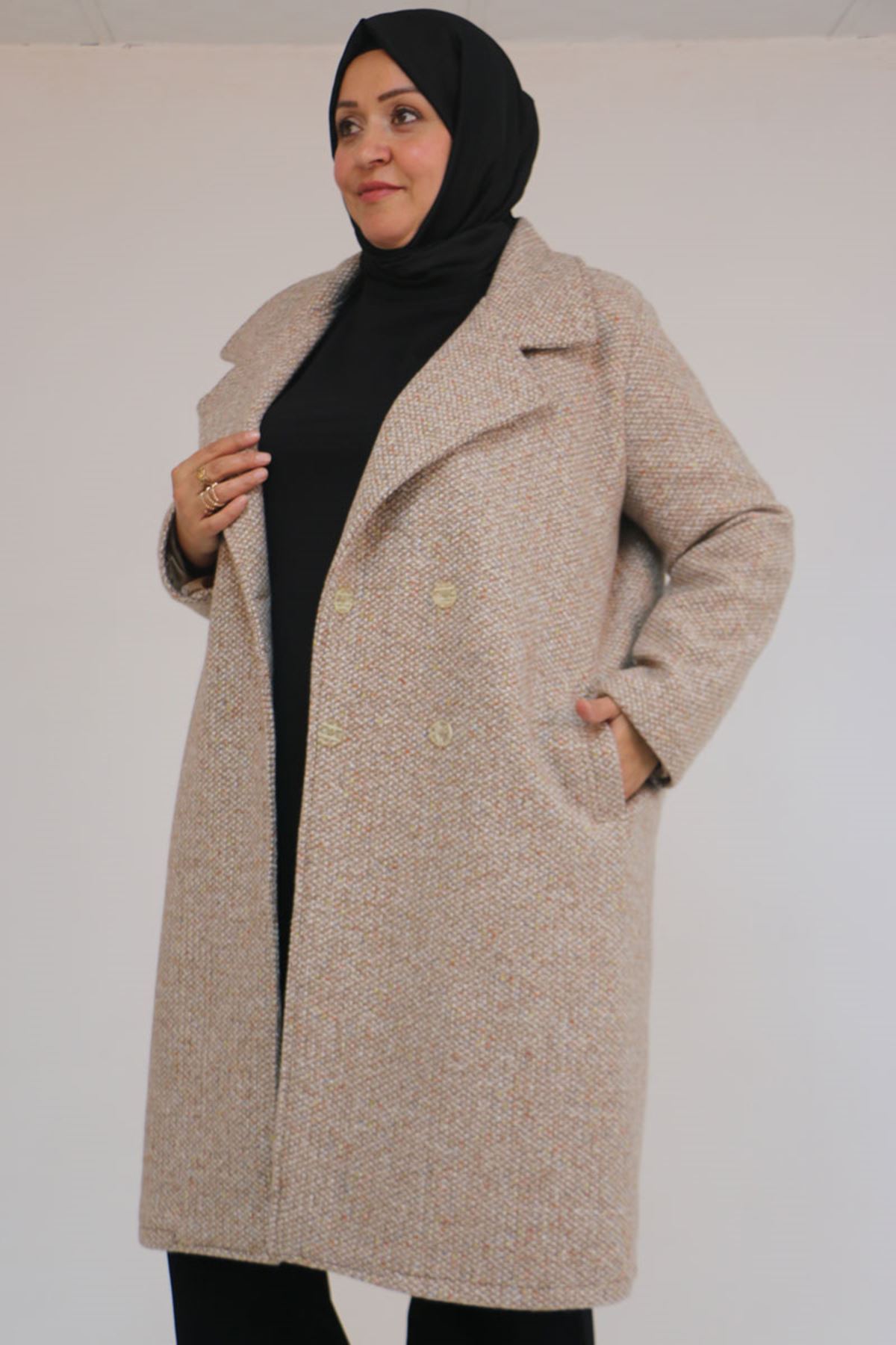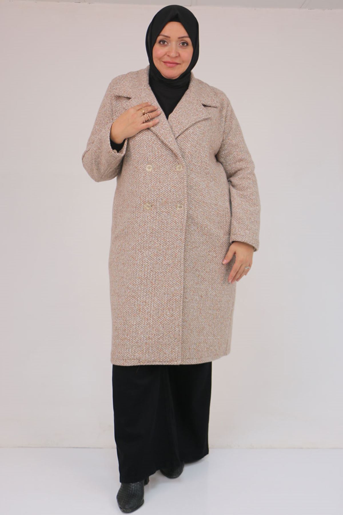 53037 Büyük Beden Mostralı Erkek Yaka Şanel Kaban - Vizon