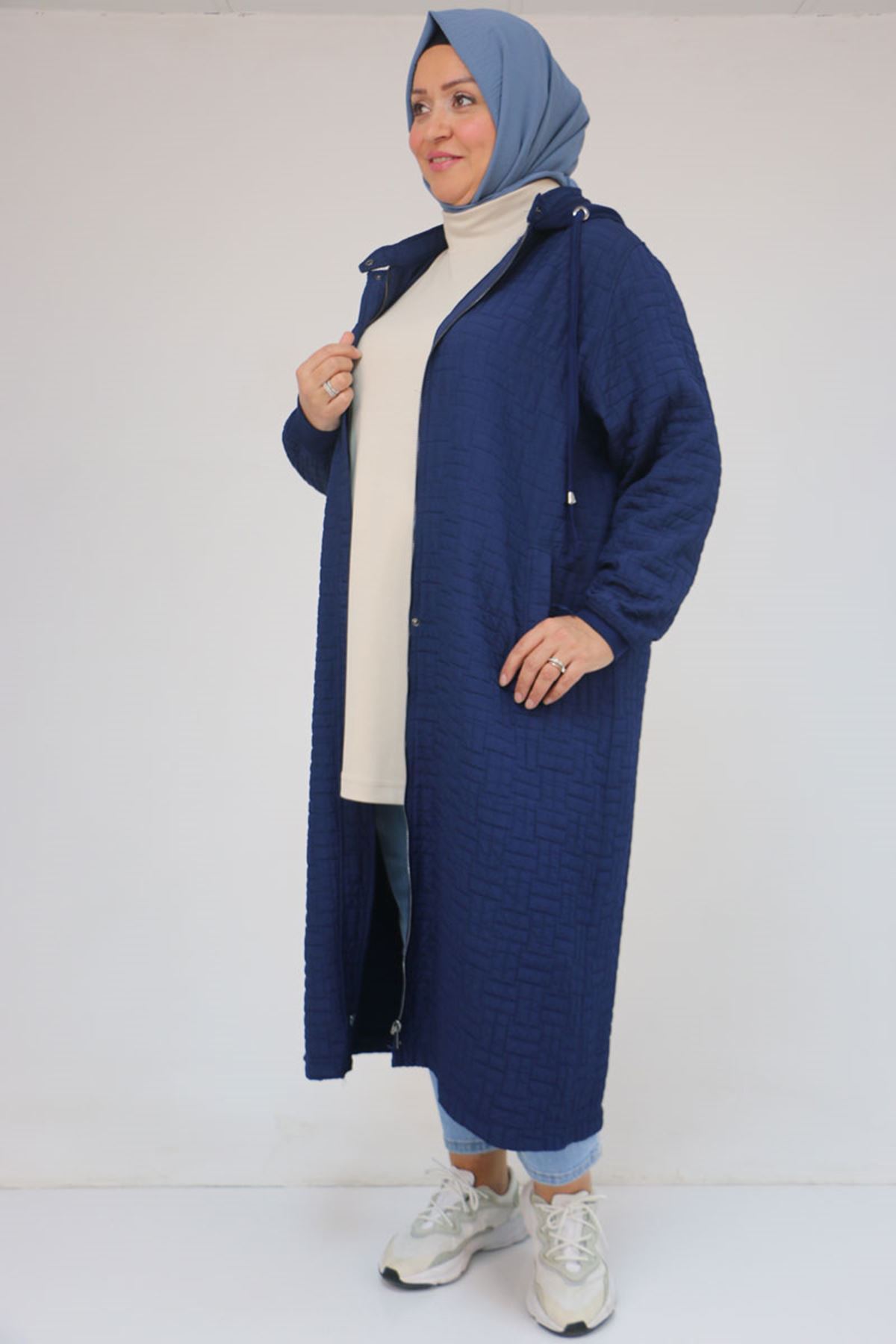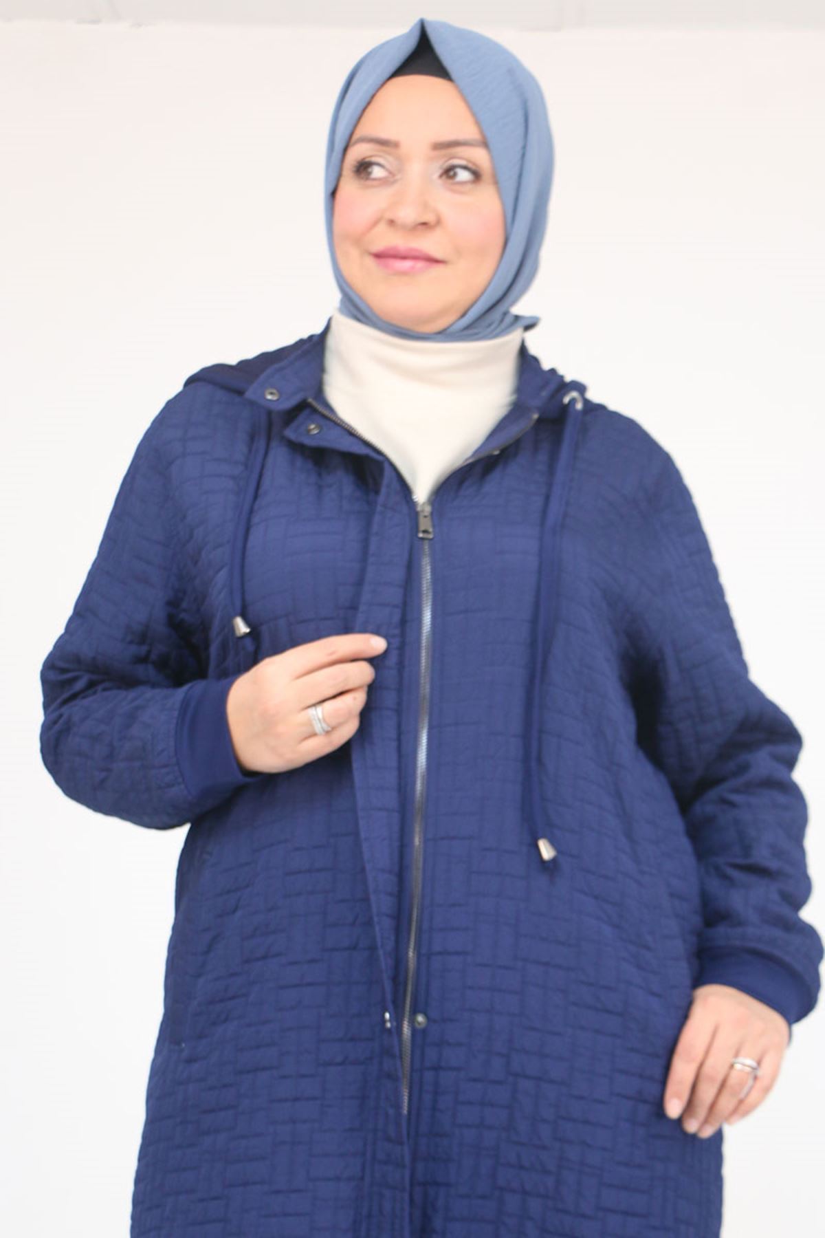 33056 Büyük Beden Petek Triko Waterport Detaylı Ceket -Taba