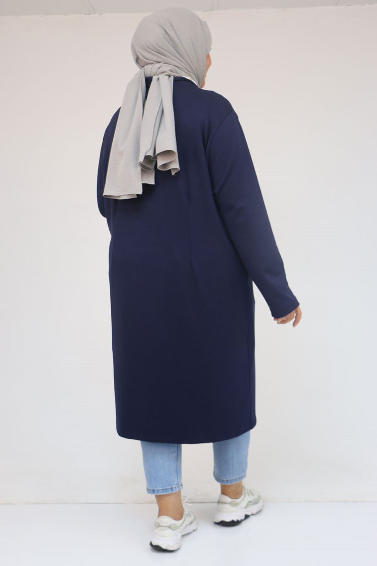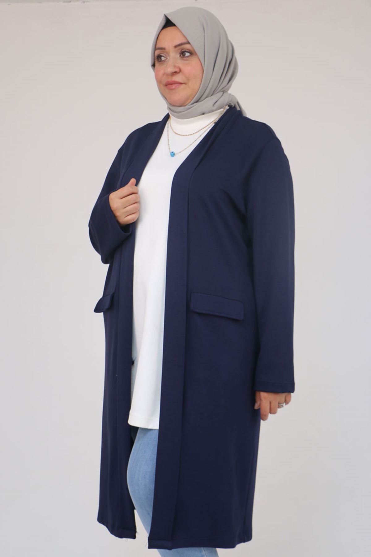 53048 Büyük Beden Cepli Uzun Modal Ceket - Lacivert