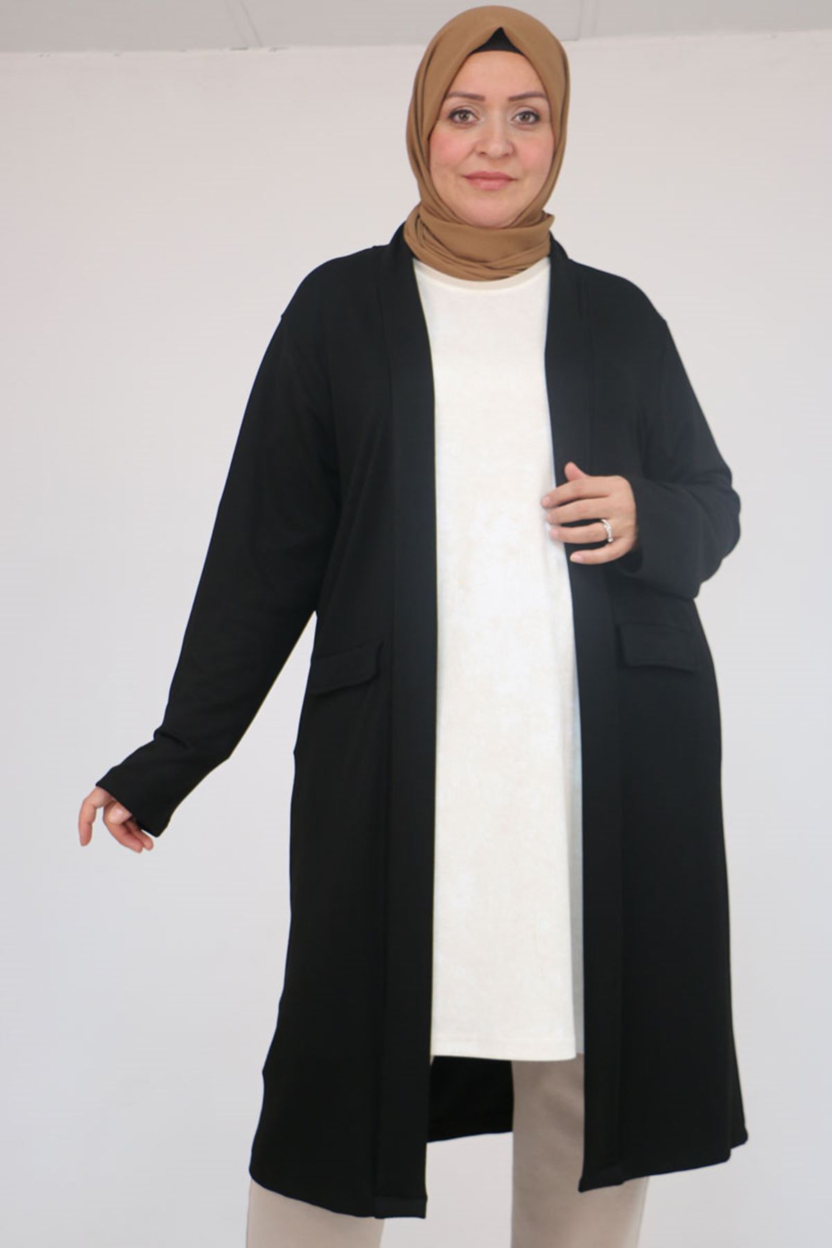 53048 Büyük Beden Cepli Uzun Modal Ceket - Siyah