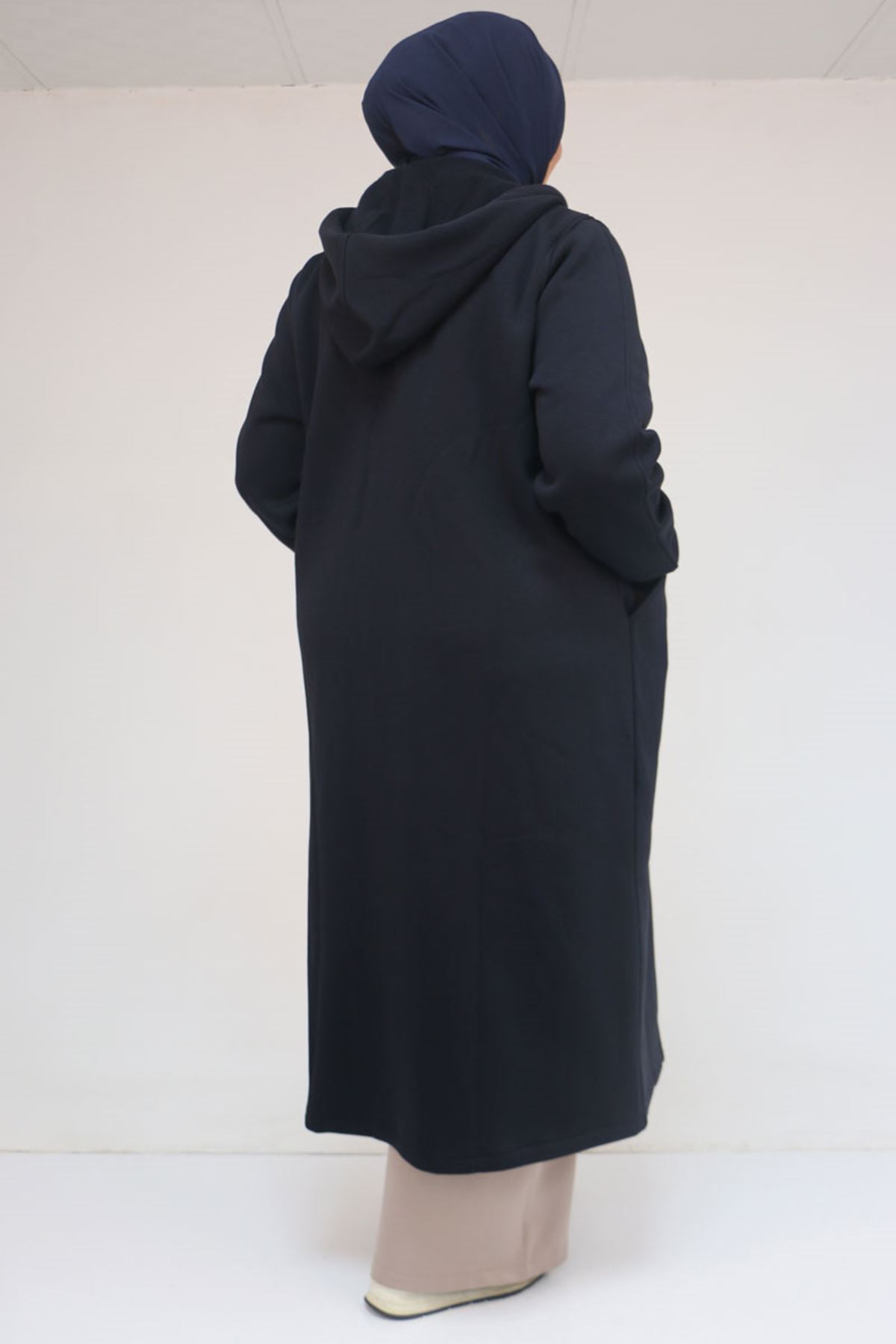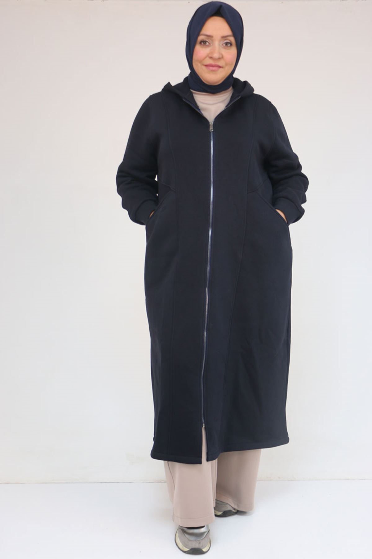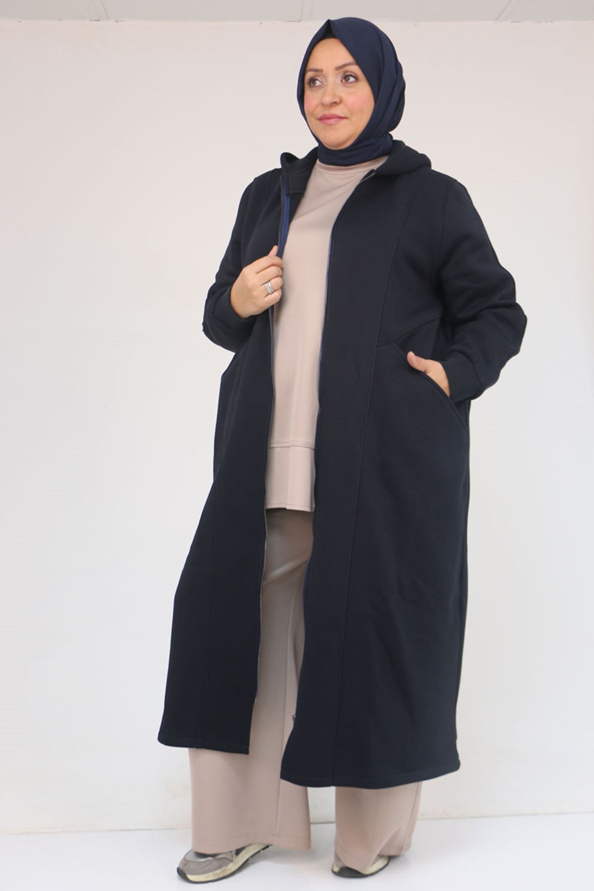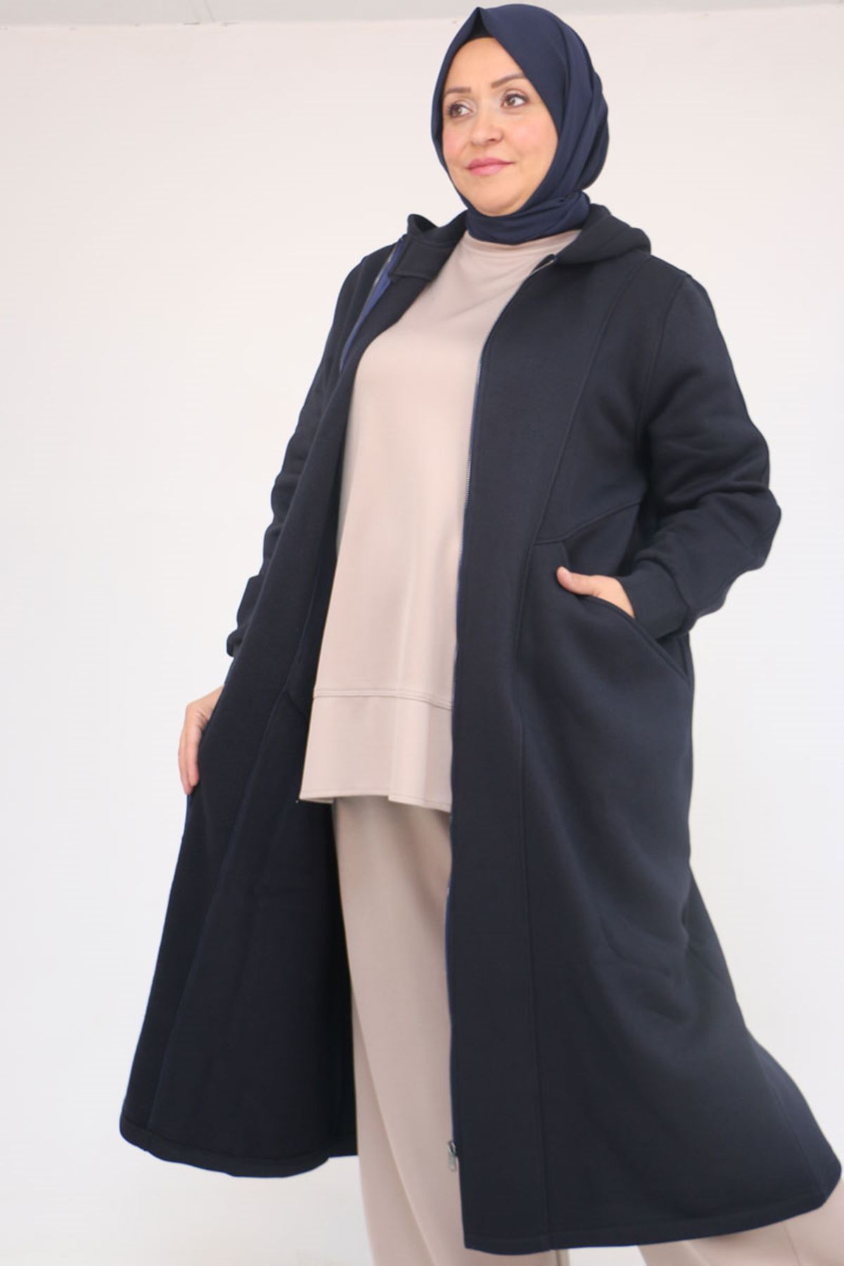 53059 Büyük Beden Kolları Ribanalı Üç İplik Kap - Lacivert
