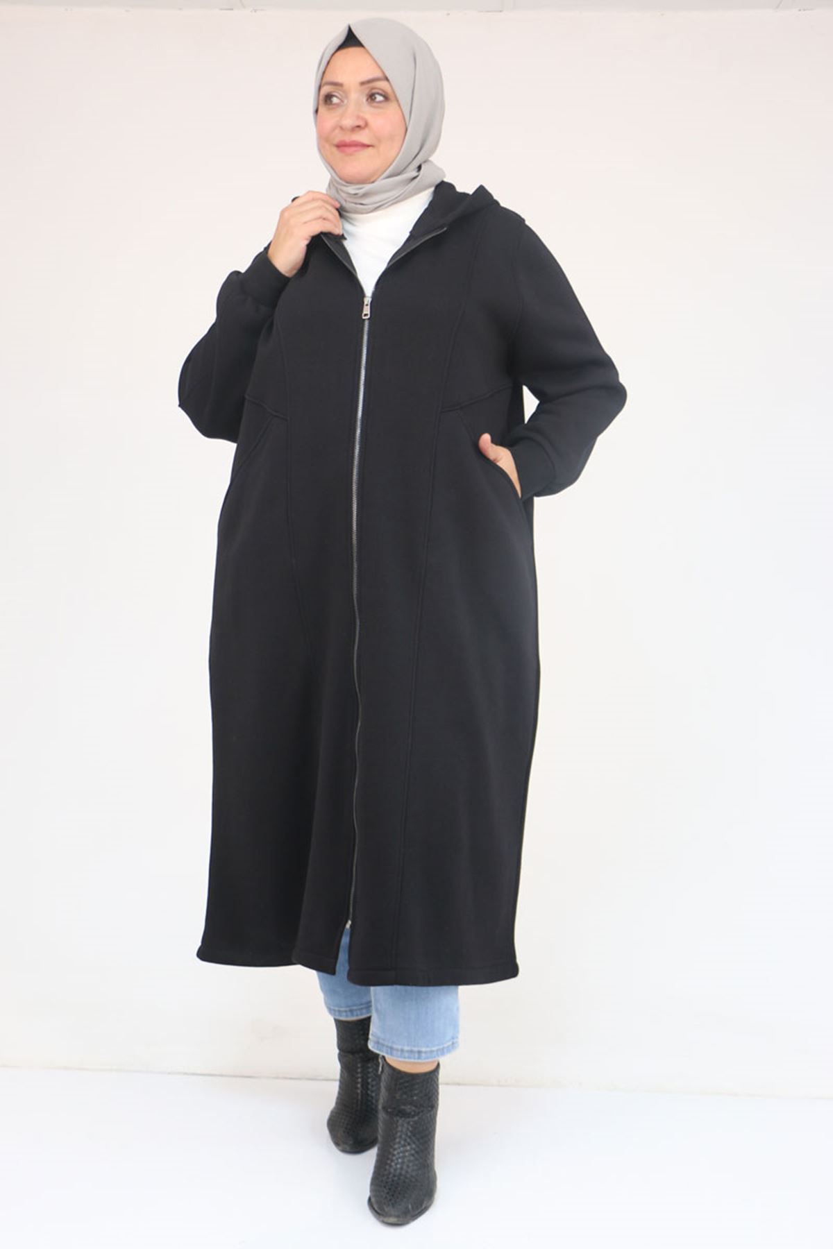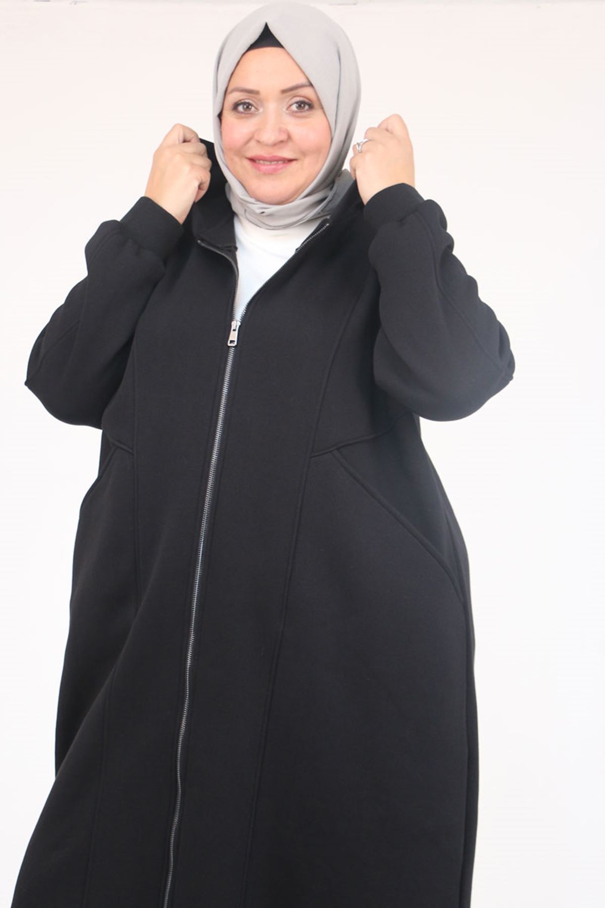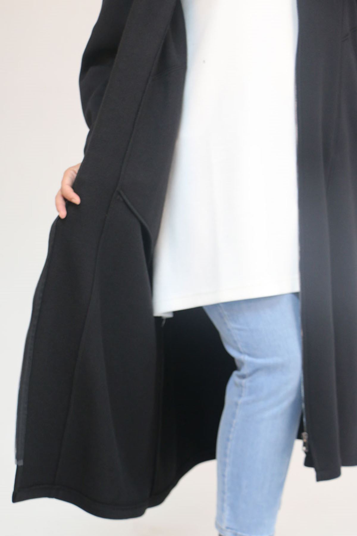 53059 Büyük Beden Kolları Ribanalı Üç İplik Kap - Siyah
