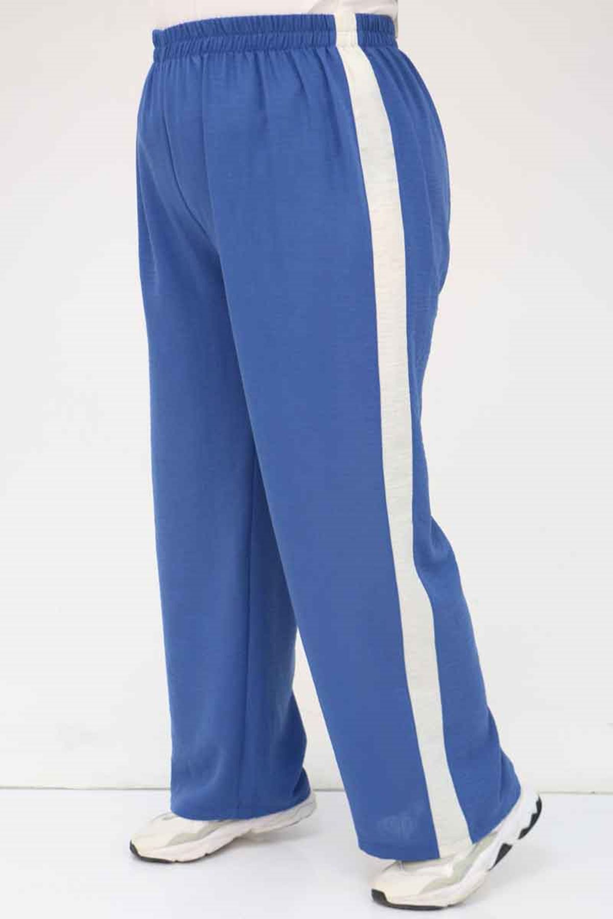 57008 Büyük Beden Kapşonlu Düşükkol Pantolonlu Takım - İndigo