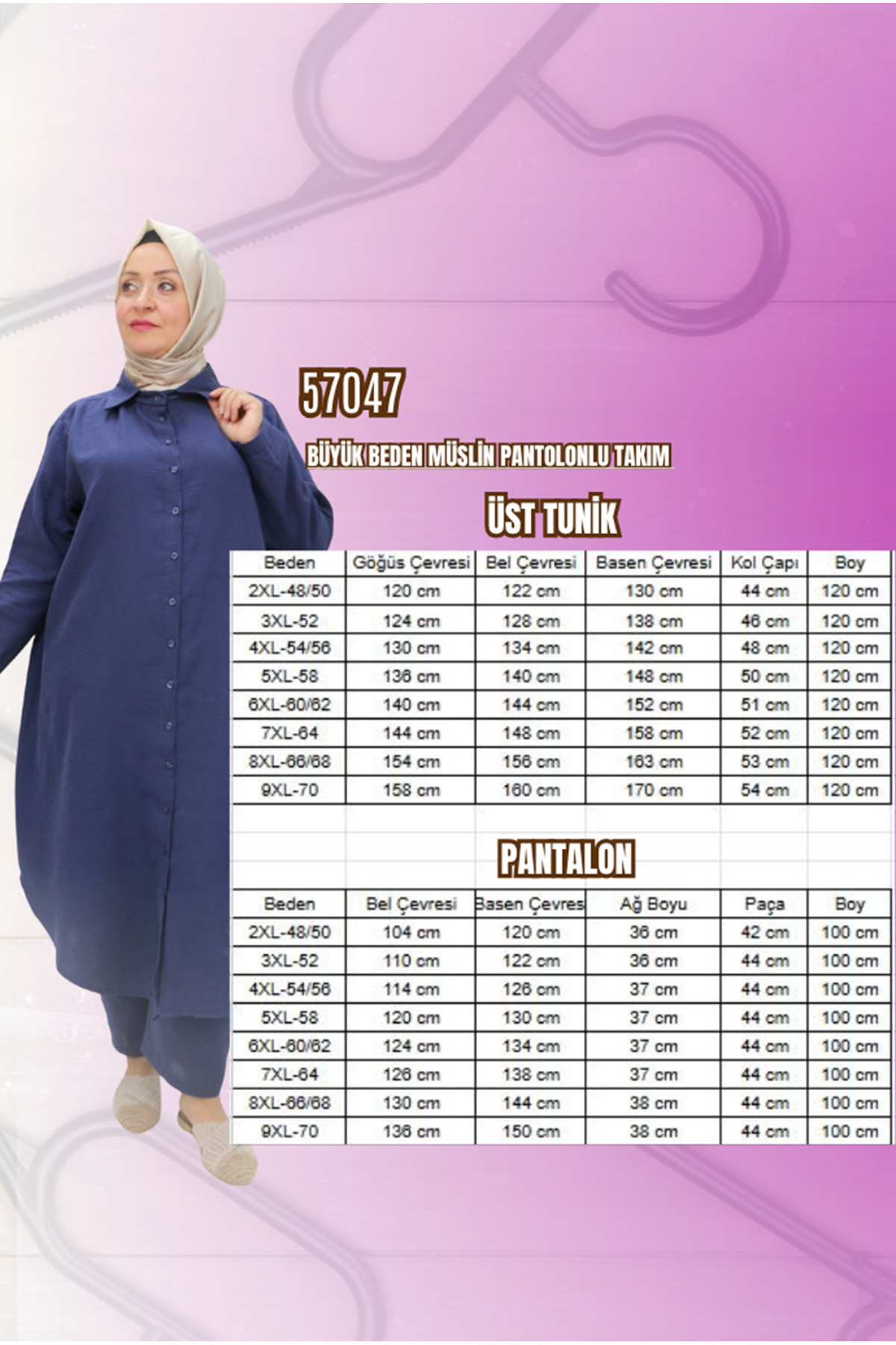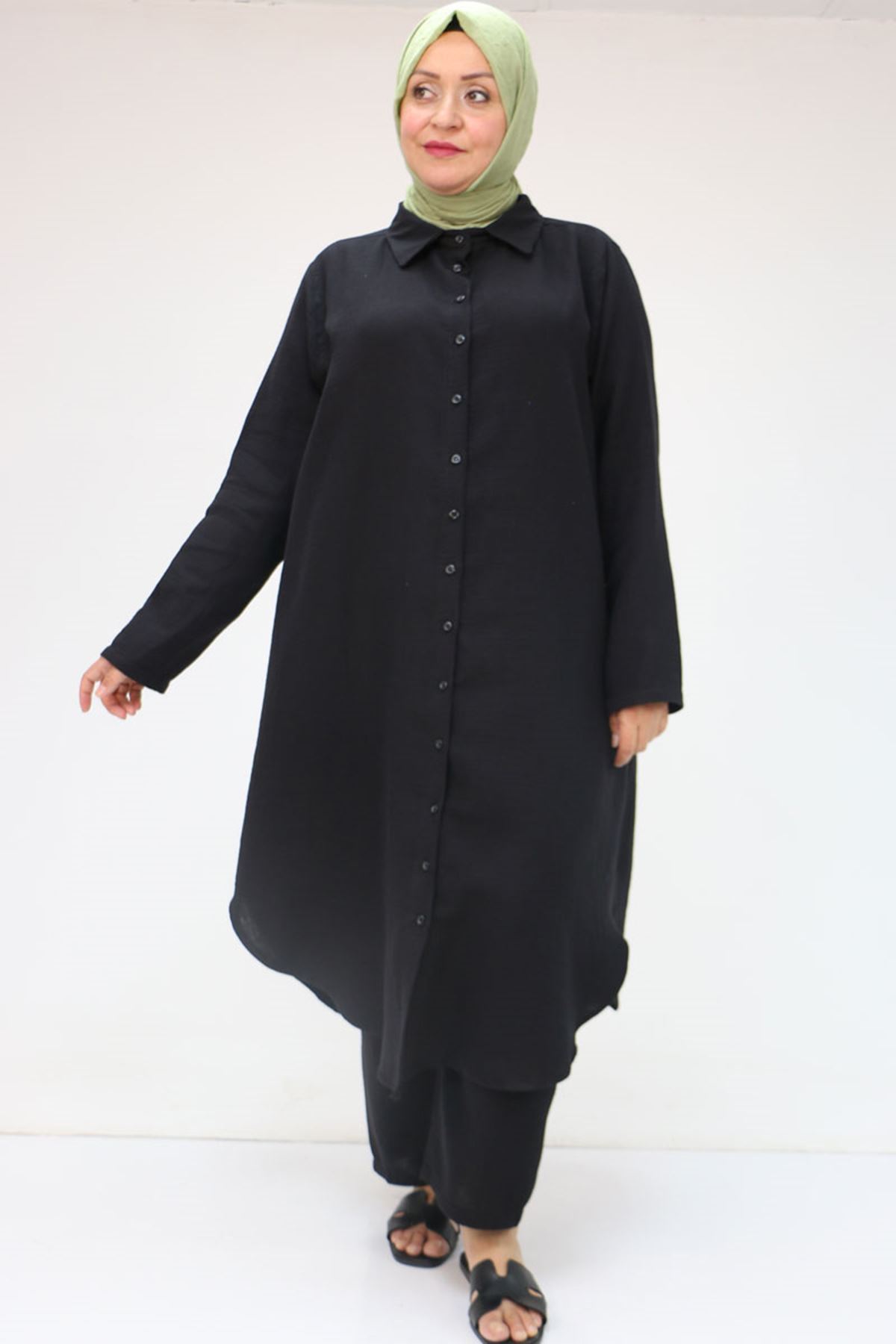 57047 Büyük Beden Müslin Pantolonlu Takım - Siyah