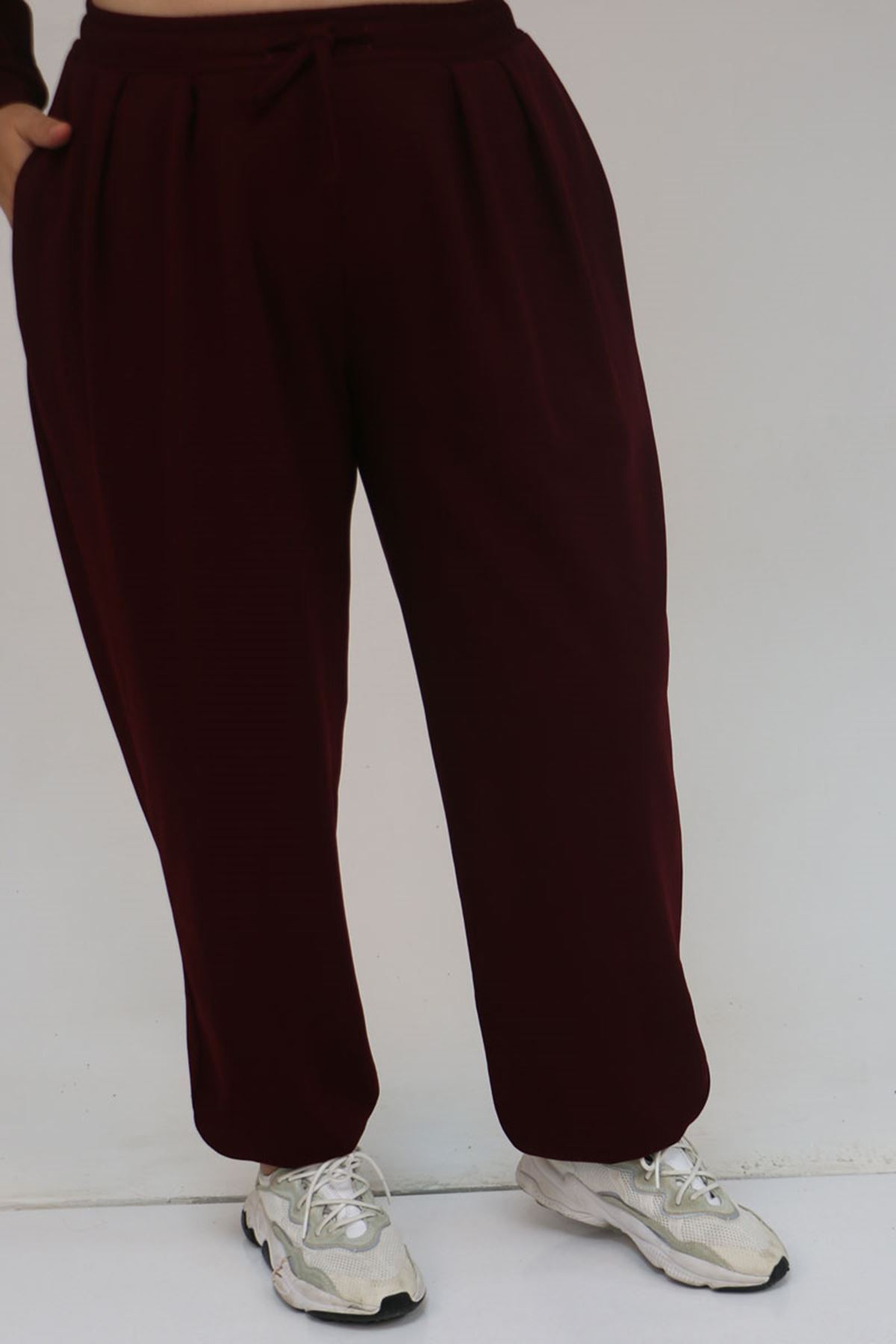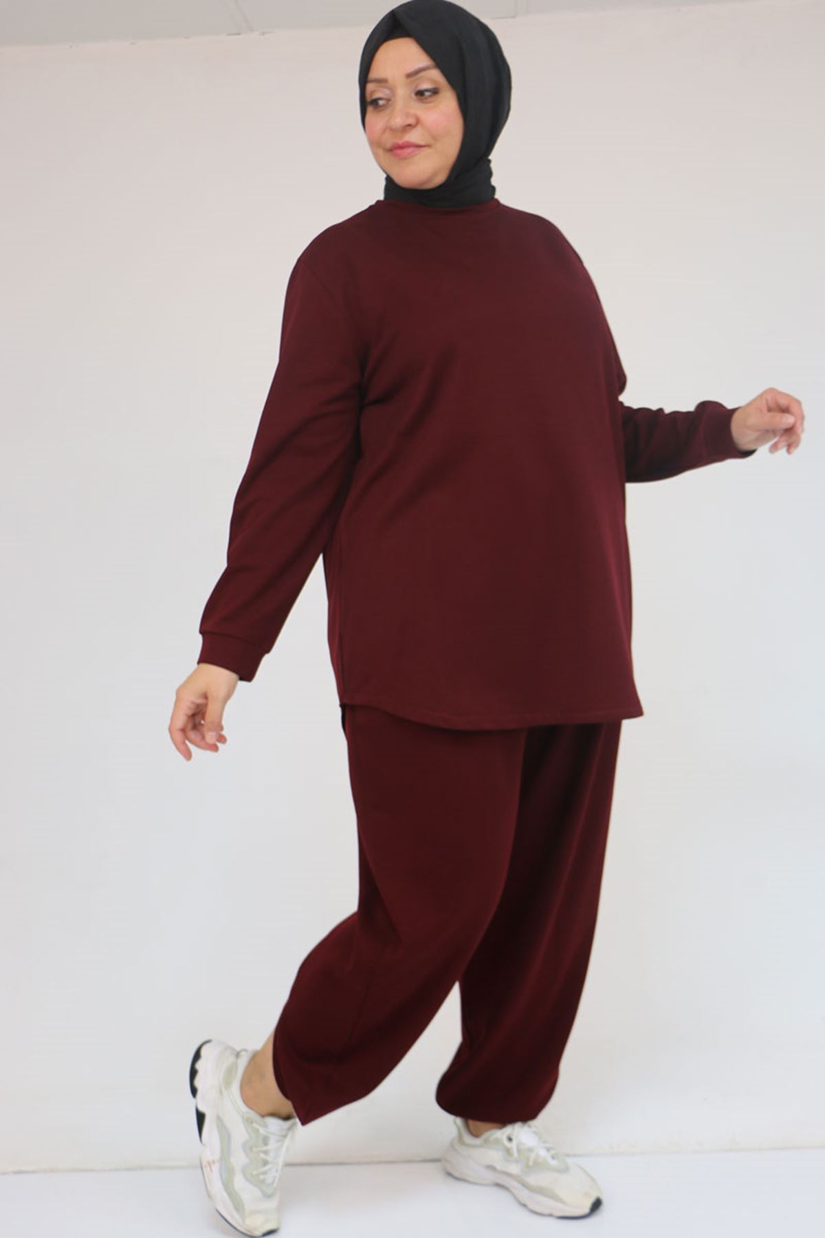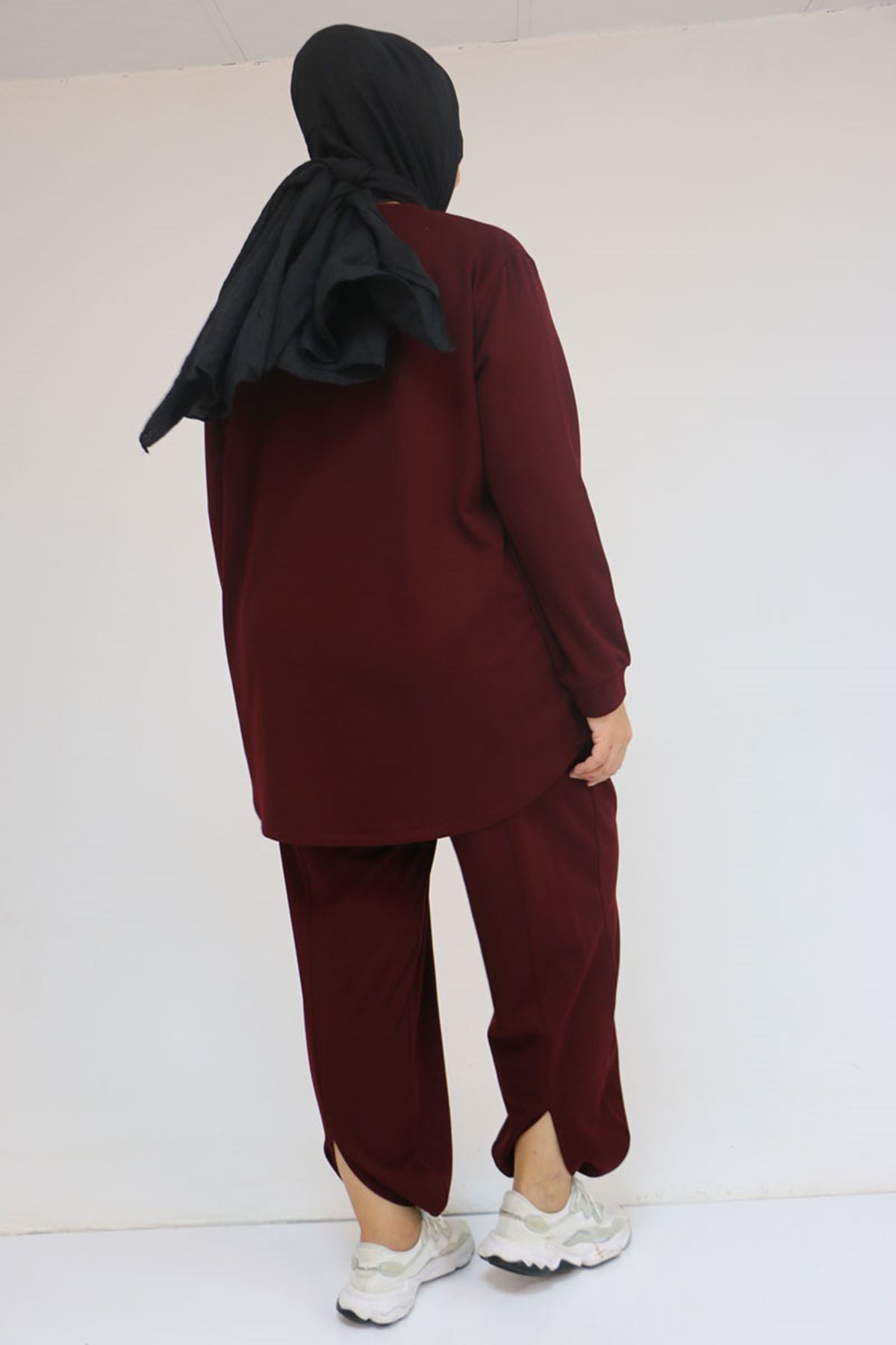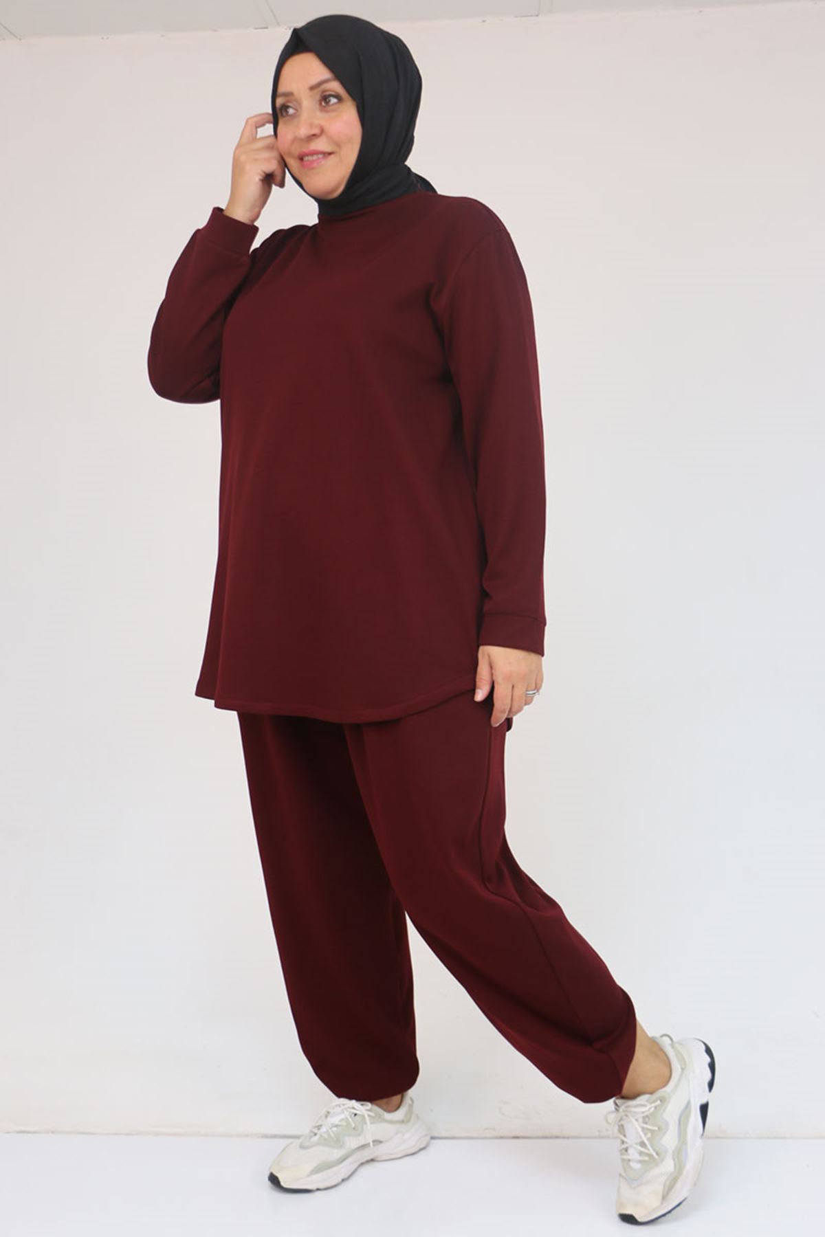 57058 Büyük Beden Pantolonlu Modal İkili Takım - Bordo