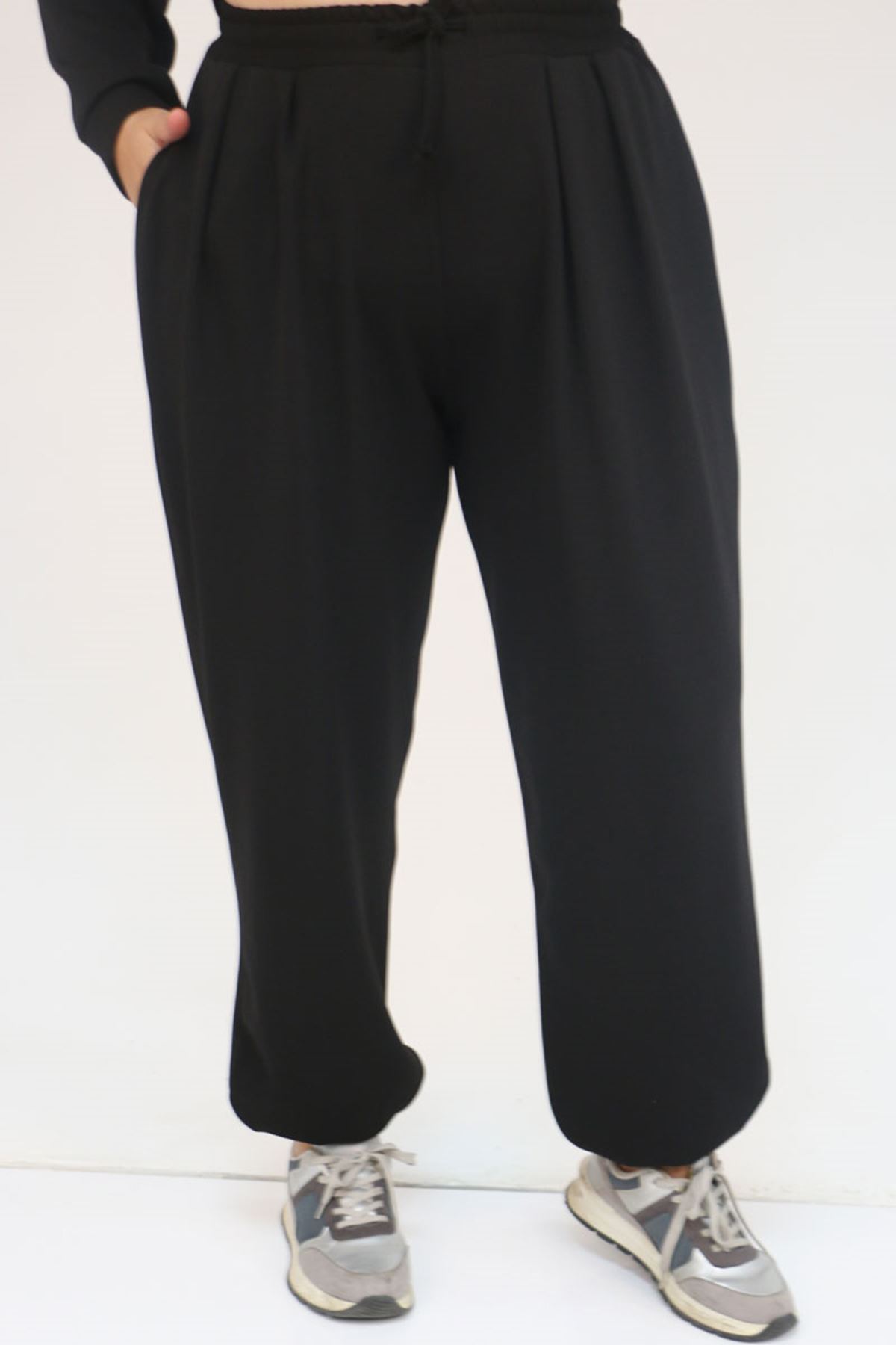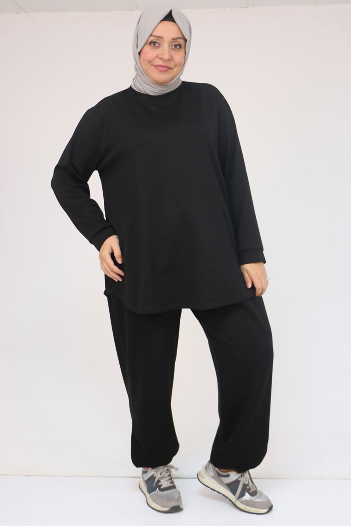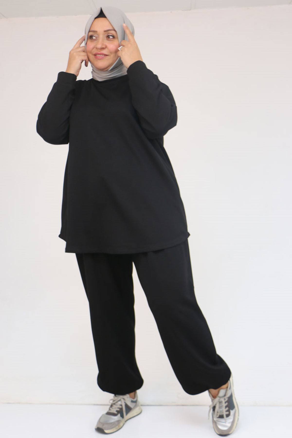 57058 Büyük Beden Pantolonlu Modal İkili Takım - Siyah