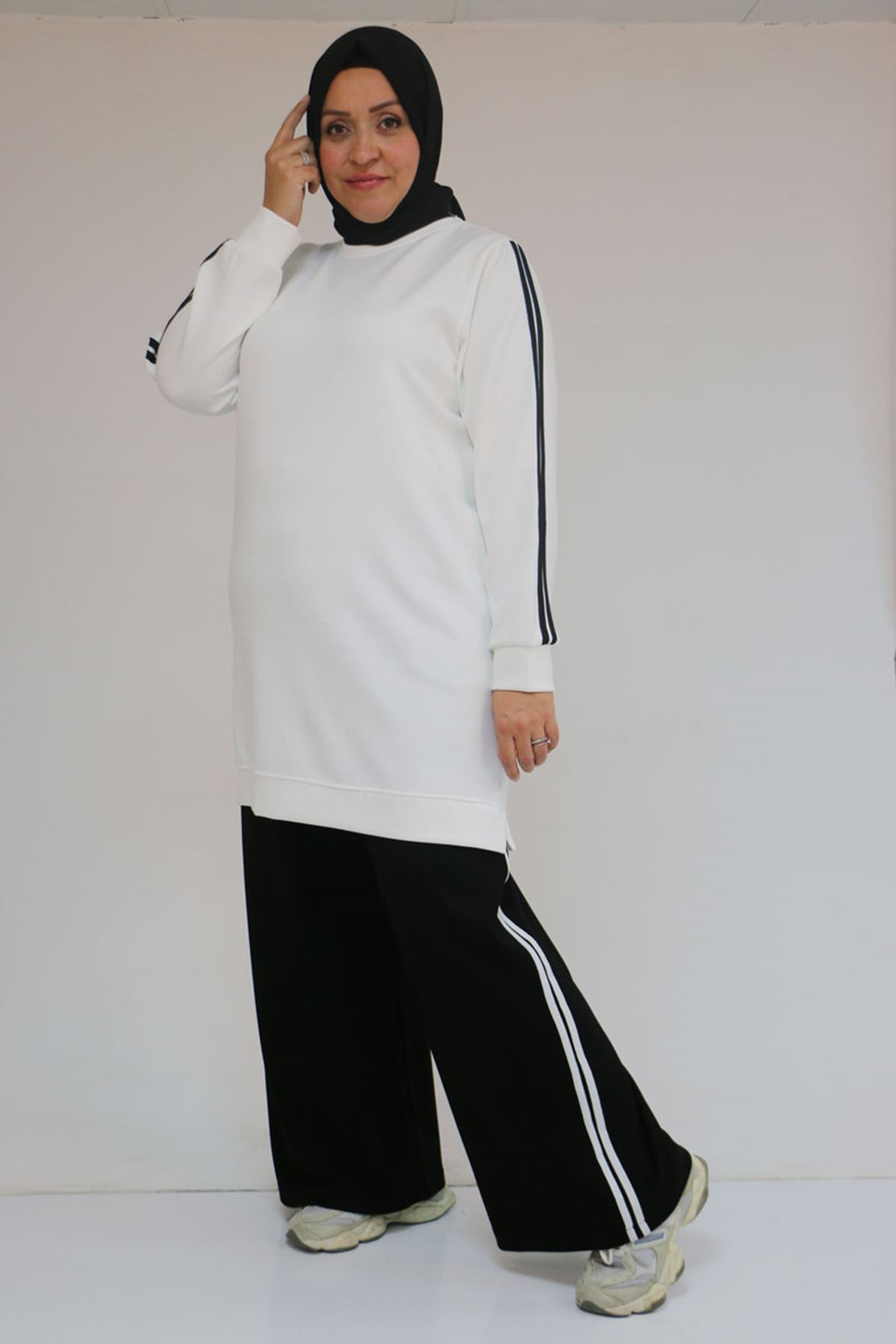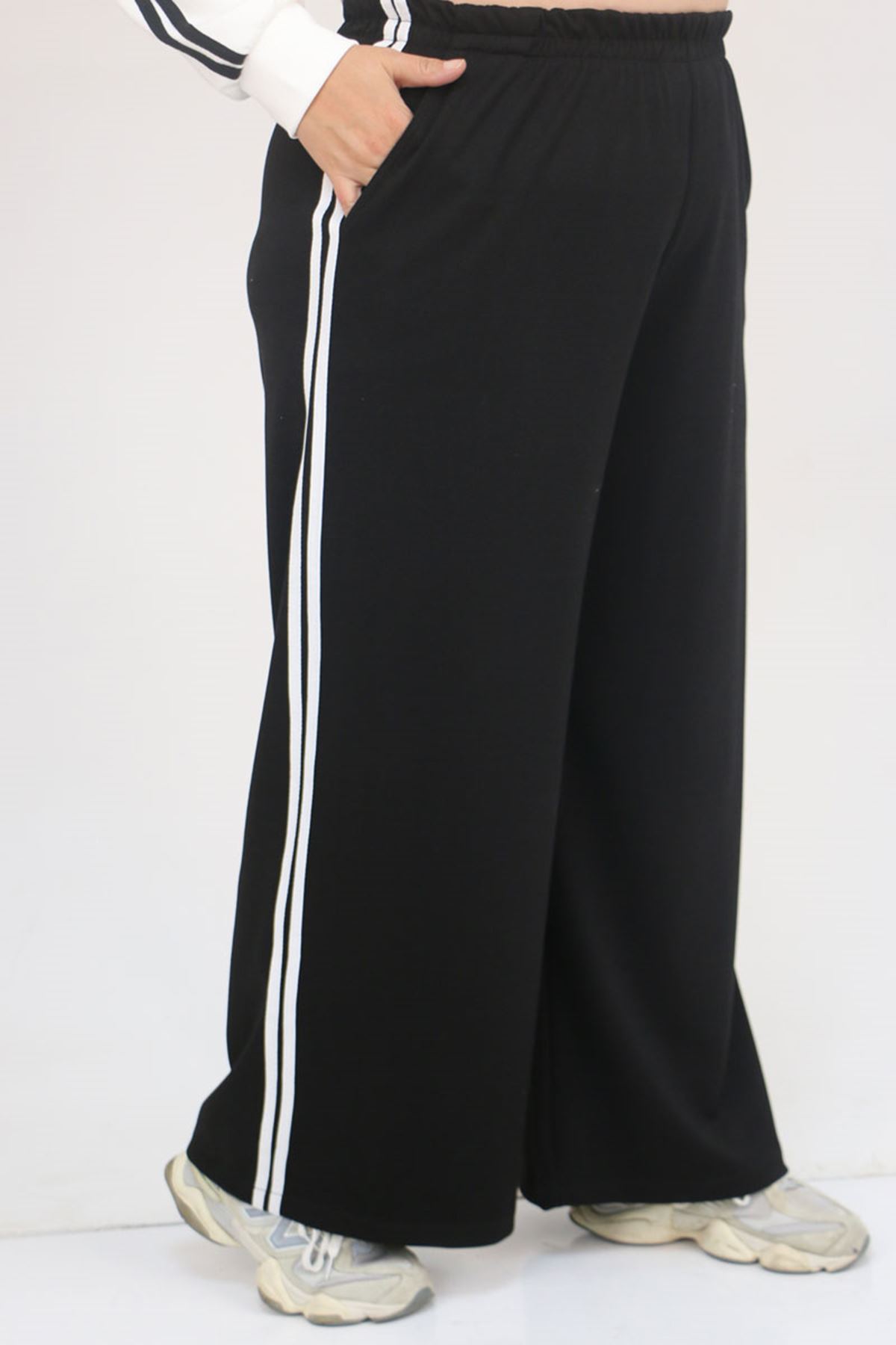 57059 Büyük Beden Alt-Üst Renk Kombinli Modal Pantolonlu Takım - Siyah