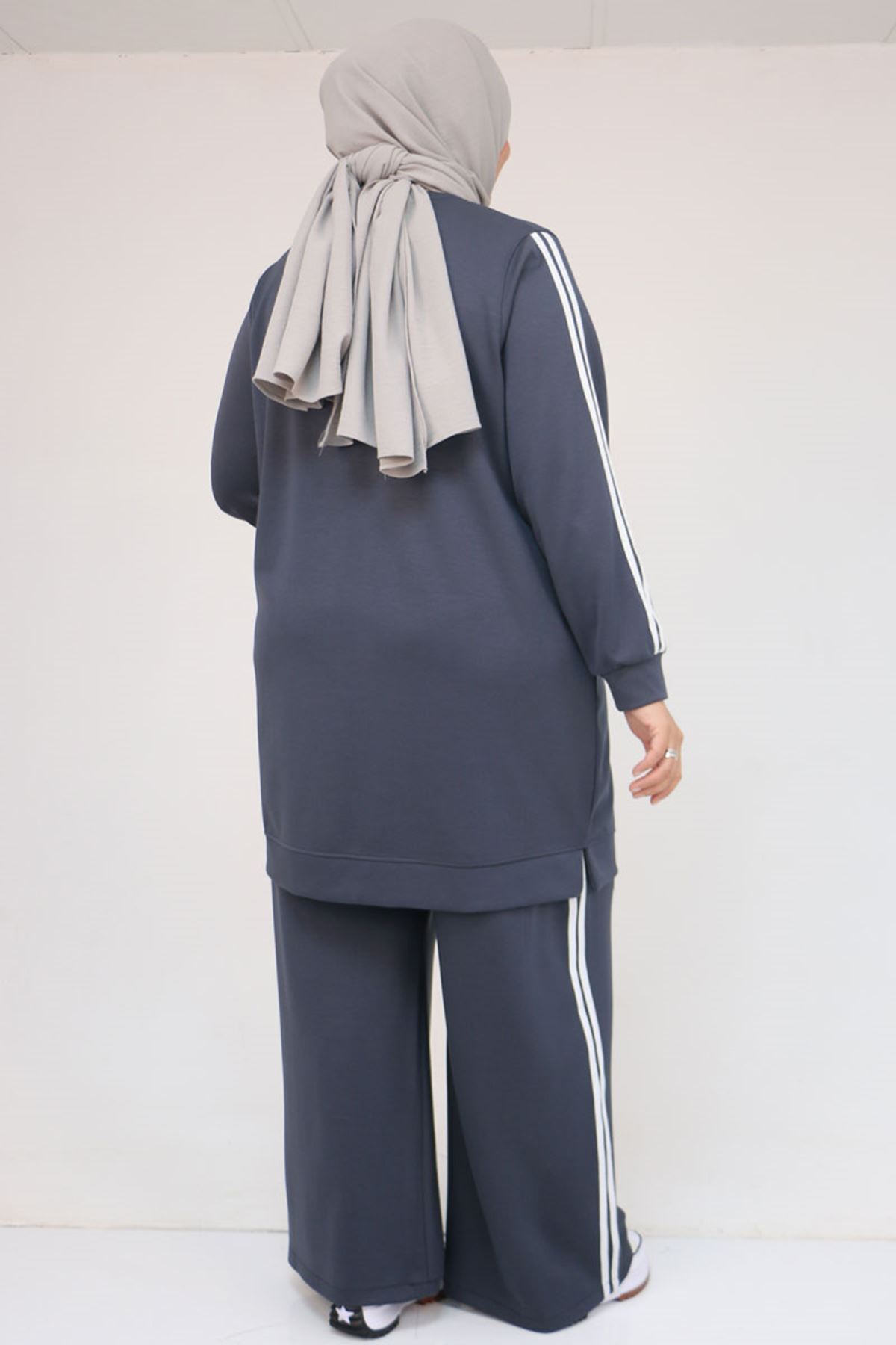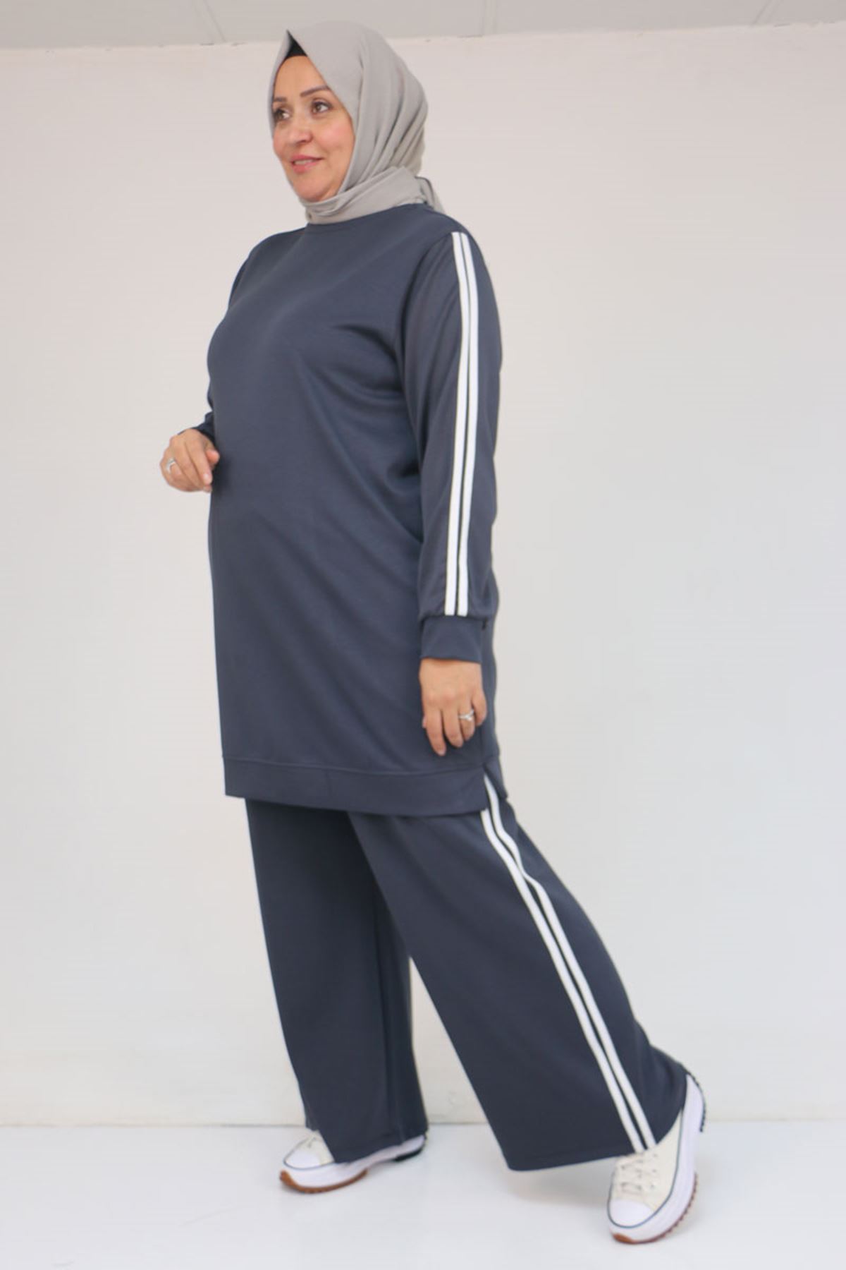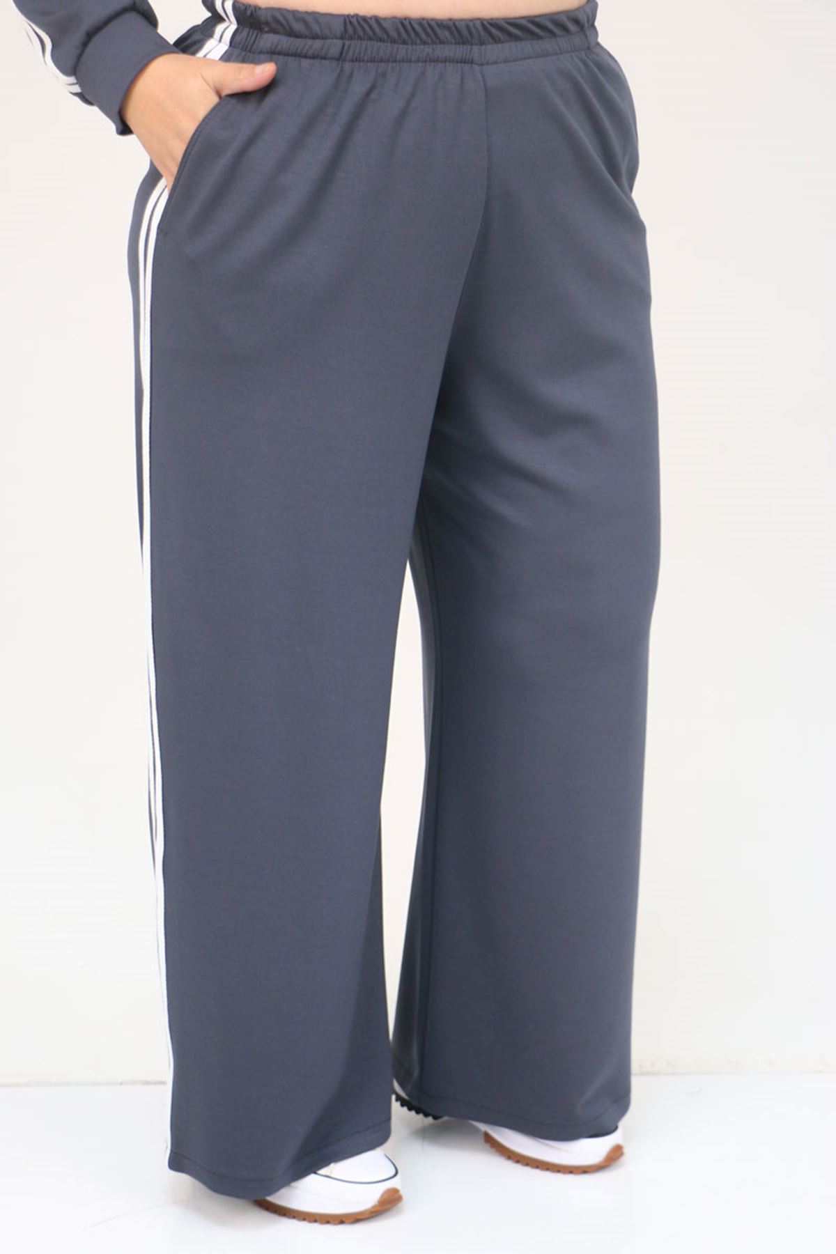 57060 Büyük Beden Omzu Şeritli Modal Pantolonlu Takım - Antrasit