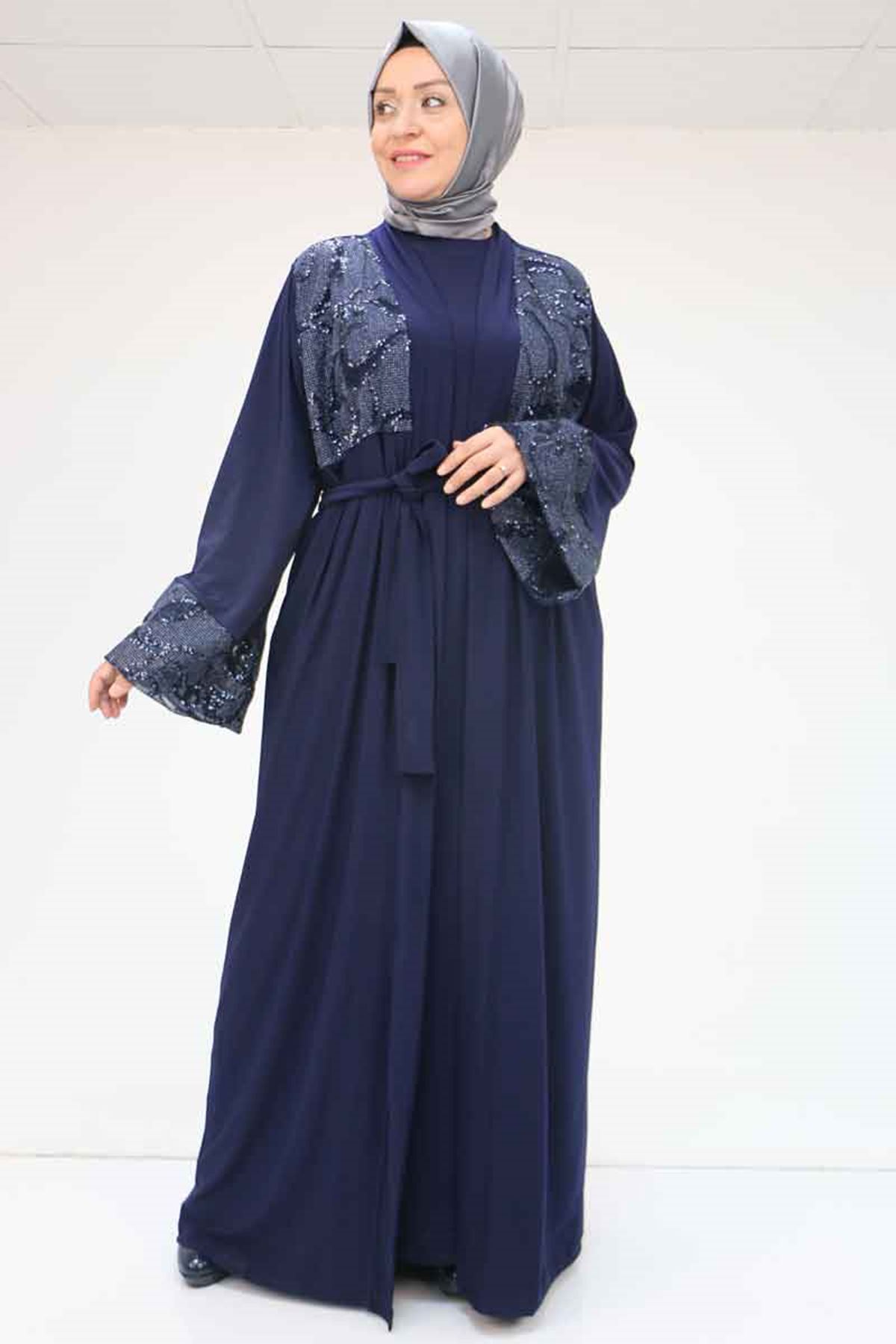 57203 Büyük Beden Sandy-Pul Payet Yelek-Elbise - Lacivert