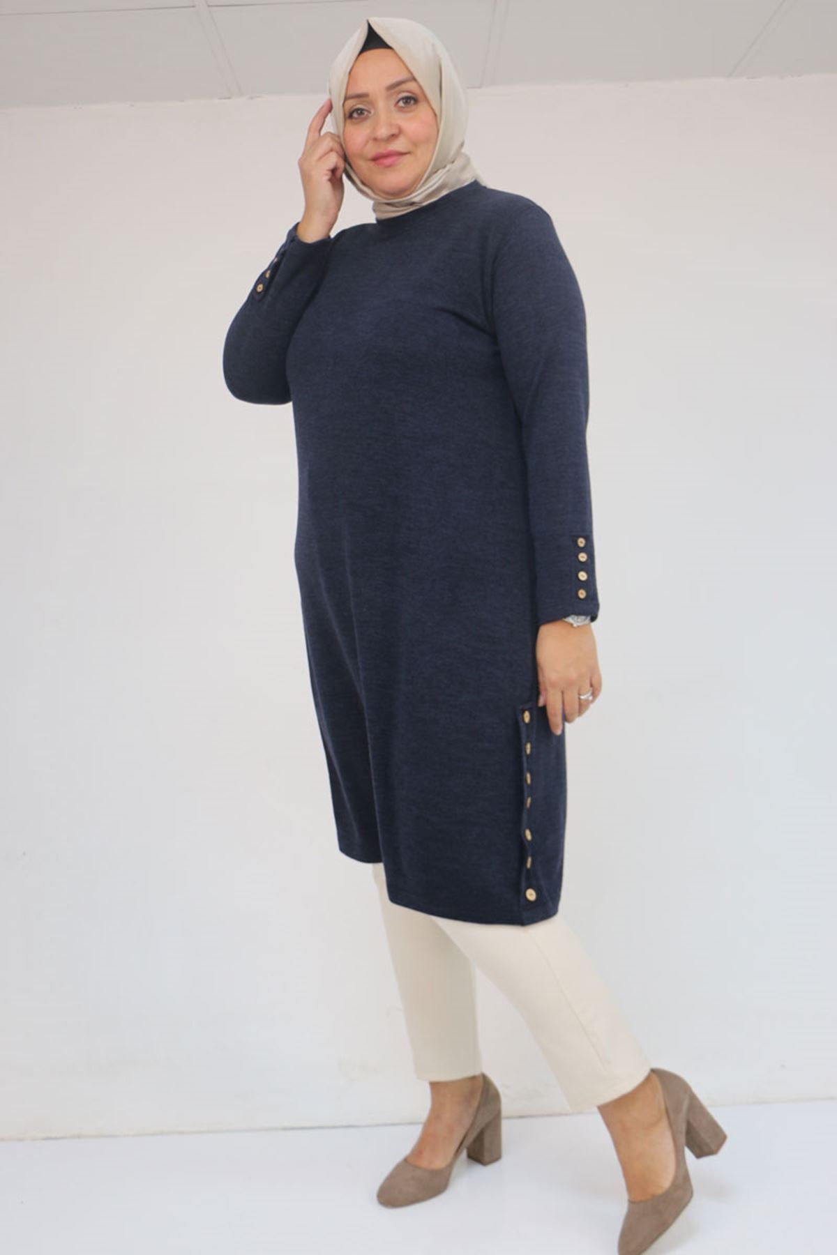 58147 Büyük Beden Mevlana Kesim Mir Tunik - Mürdüm