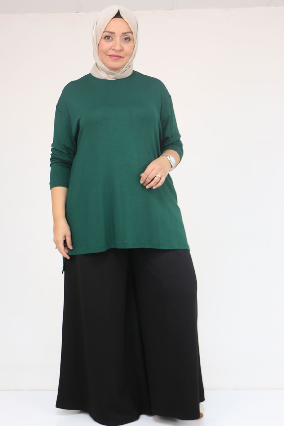 58119 Büyük Beden Yanı Yırtmaçlı Çilek Tunik - Zümrüt